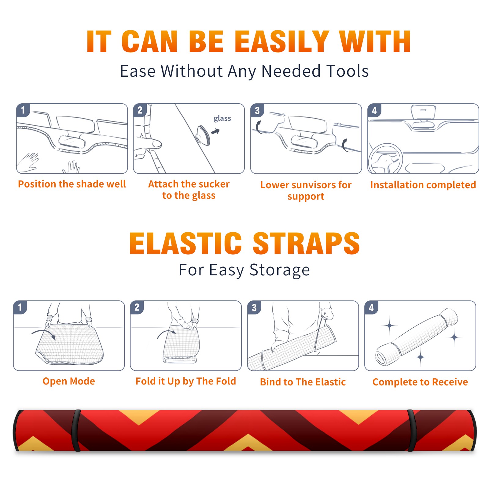 <p><b>Foldable Premium Car Windshield Sunshade is your great solution to reduce your car’s interior temperature dramatically! This is definitely a must-have item for your summer travel!</b></p><p><b>【Precision Fit, Stylish Protection】</b></p><p>55"x30" (140x76cm) universal size with 3cm flexible margins fits curved windshields of most sedans/SUVs.</p><p><b>【Blocking Uv Rays &amp; Heat Insulation】</b></p><p>Our vehicle sunshade provides effective UV, sun, and summer heat protection, preventing leather fading and plastic cracking to keep your car interior pristine.</p><p><b>【Zero-Mark Installation &amp; Space-Saving】</b></p><p>Equipped with dual scratch-free silicone suction cups + adjustable straps: Medical-grade silicone cups hold firmly yet remove cleanly. Folds to A3 size (42x30cm x &lt;2cm thick), tucks discreetly into glove compartments or door pockets.&nbsp;</p>