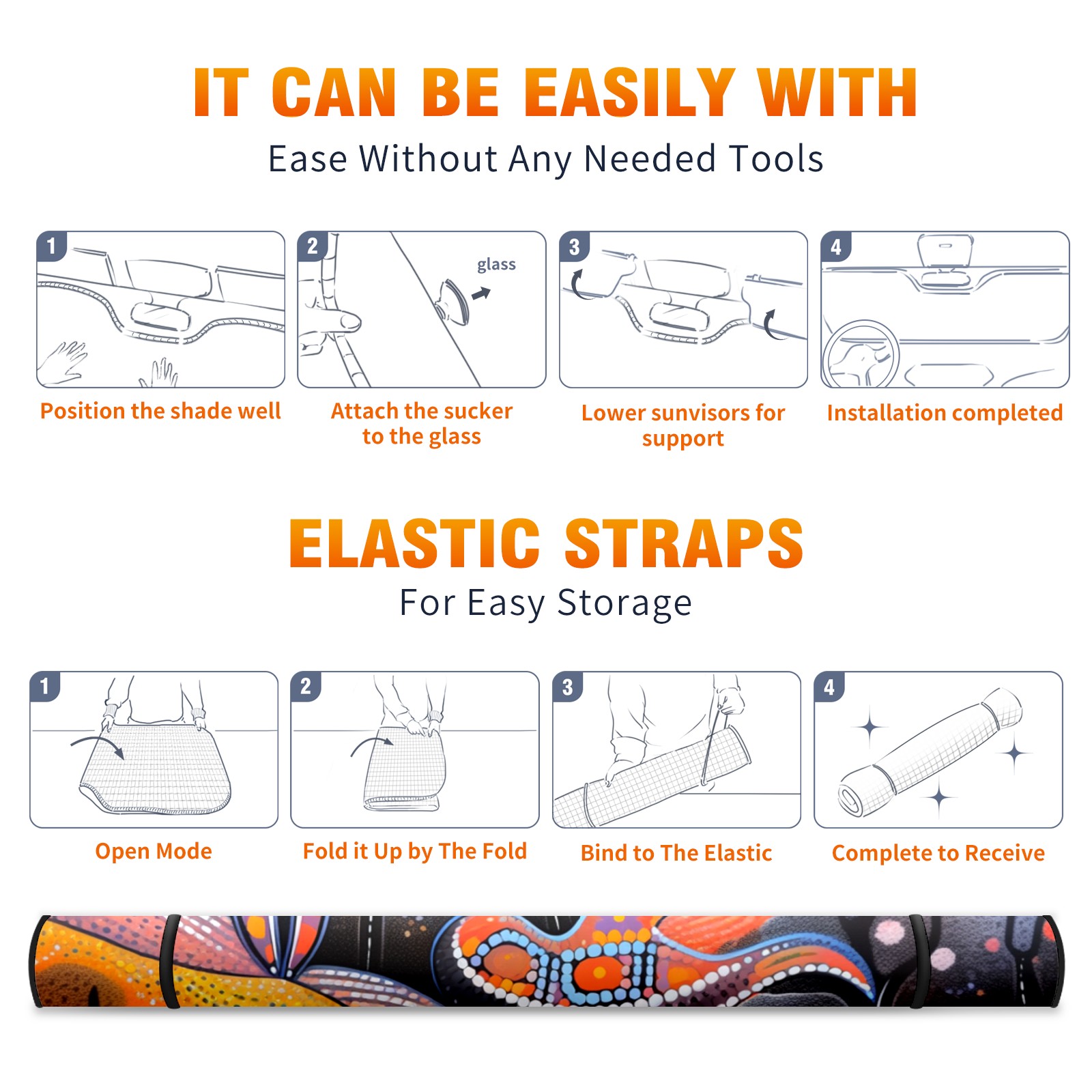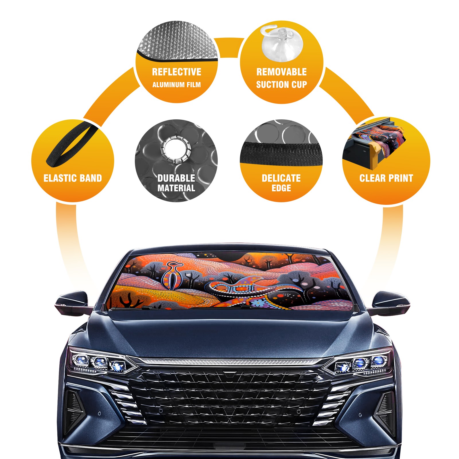 • <p><b>Foldable Premium Car Windshield Sunshade is your great solution to reduce your car’s interior temperature dramatically! This is definitely a must-have item for your summer travel!</b></p><p><b>【Precision Fit, Stylish Protection】</b></p><p>55"x30" (140x76cm) universal size with 3cm flexible margins fits curved windshields of most sedans/SUVs.</p><p><b>【Blocking Uv Rays &amp; Heat Insulation】</b></p><p>Our vehicle sunshade provides effective UV, sun, and summer heat protection, preventing leather fading and plastic cracking to keep your car interior pristine.</p><p><b>【Zero-Mark Installation &amp; Space-Saving】</b></p><p>Equipped with dual scratch-free silicone suction cups + adjustable straps: Medical-grade silicone cups hold firmly yet remove cleanly. Folds to A3 size (42x30cm x &lt;2cm thick), tucks discreetly into glove compartments or door pockets.&nbsp;</p>