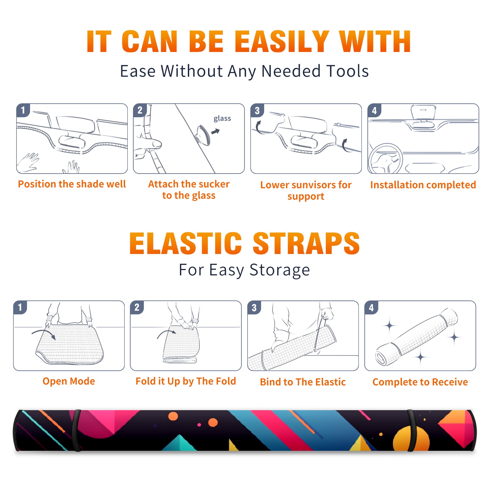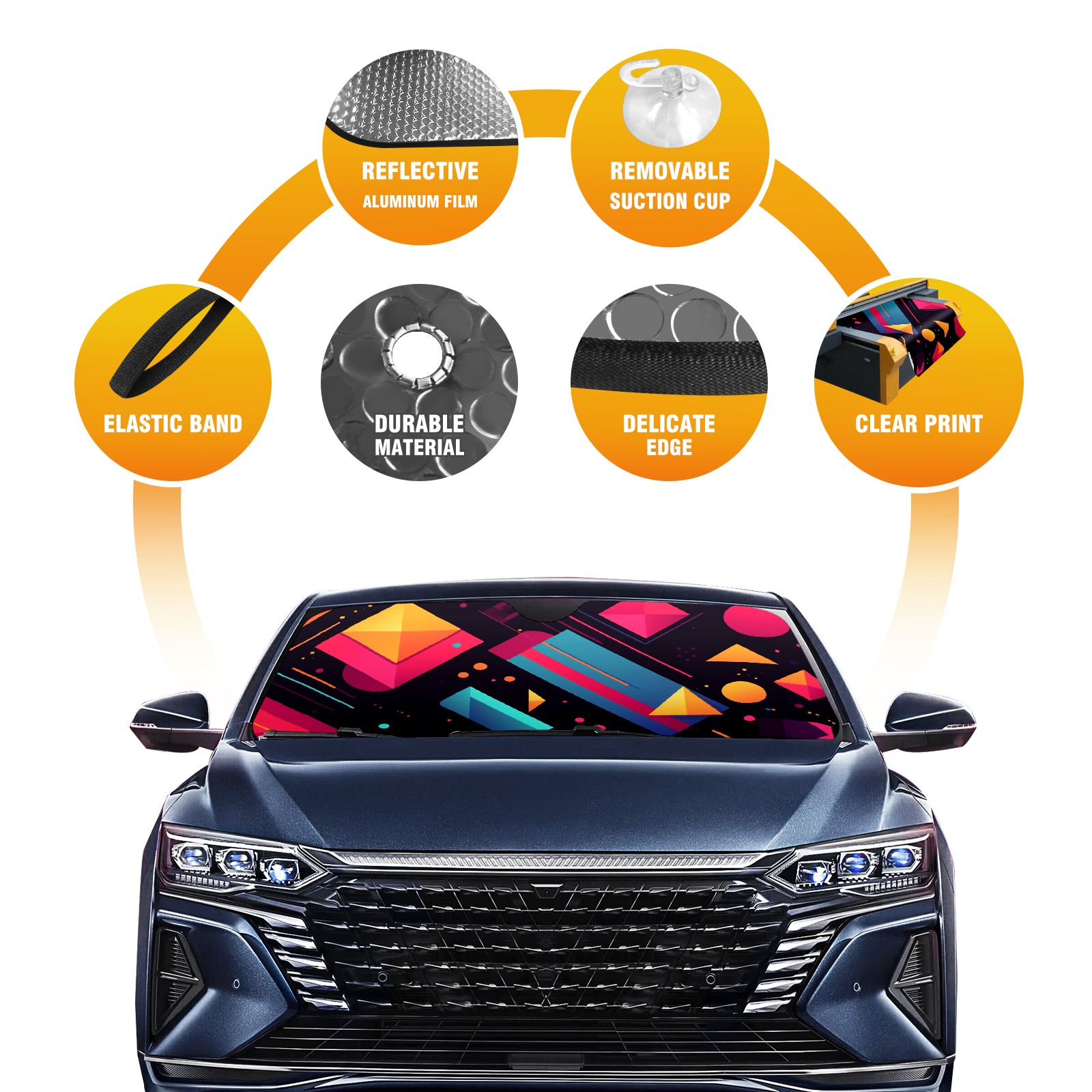 • <p><b>Foldable Premium Car Windshield Sunshade is your great solution to reduce your car’s interior temperature dramatically! This is definitely a must-have item for your summer travel!</b></p><p><b>【Precision Fit, Stylish Protection】</b></p><p>55"x30" (140x76cm) universal size with 3cm flexible margins fits curved windshields of most sedans/SUVs.</p><p><b>【Blocking Uv Rays &amp; Heat Insulation】</b></p><p>Our vehicle sunshade provides effective UV, sun, and summer heat protection, preventing leather fading and plastic cracking to keep your car interior pristine.</p><p><b>【Zero-Mark Installation &amp; Space-Saving】</b></p><p>Equipped with dual scratch-free silicone suction cups + adjustable straps: Medical-grade silicone cups hold firmly yet remove cleanly. Folds to A3 size (42x30cm x &lt;2cm thick), tucks discreetly into glove compartments or door pockets.&nbsp;</p>