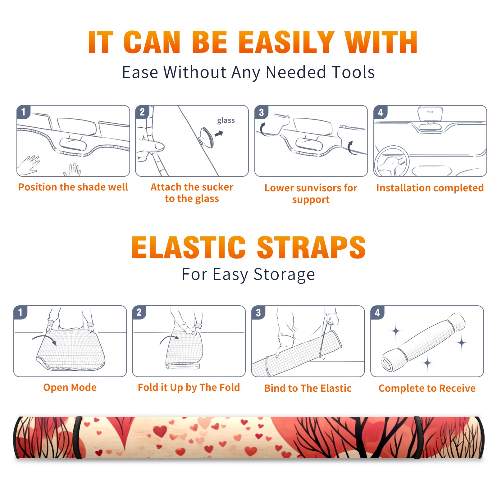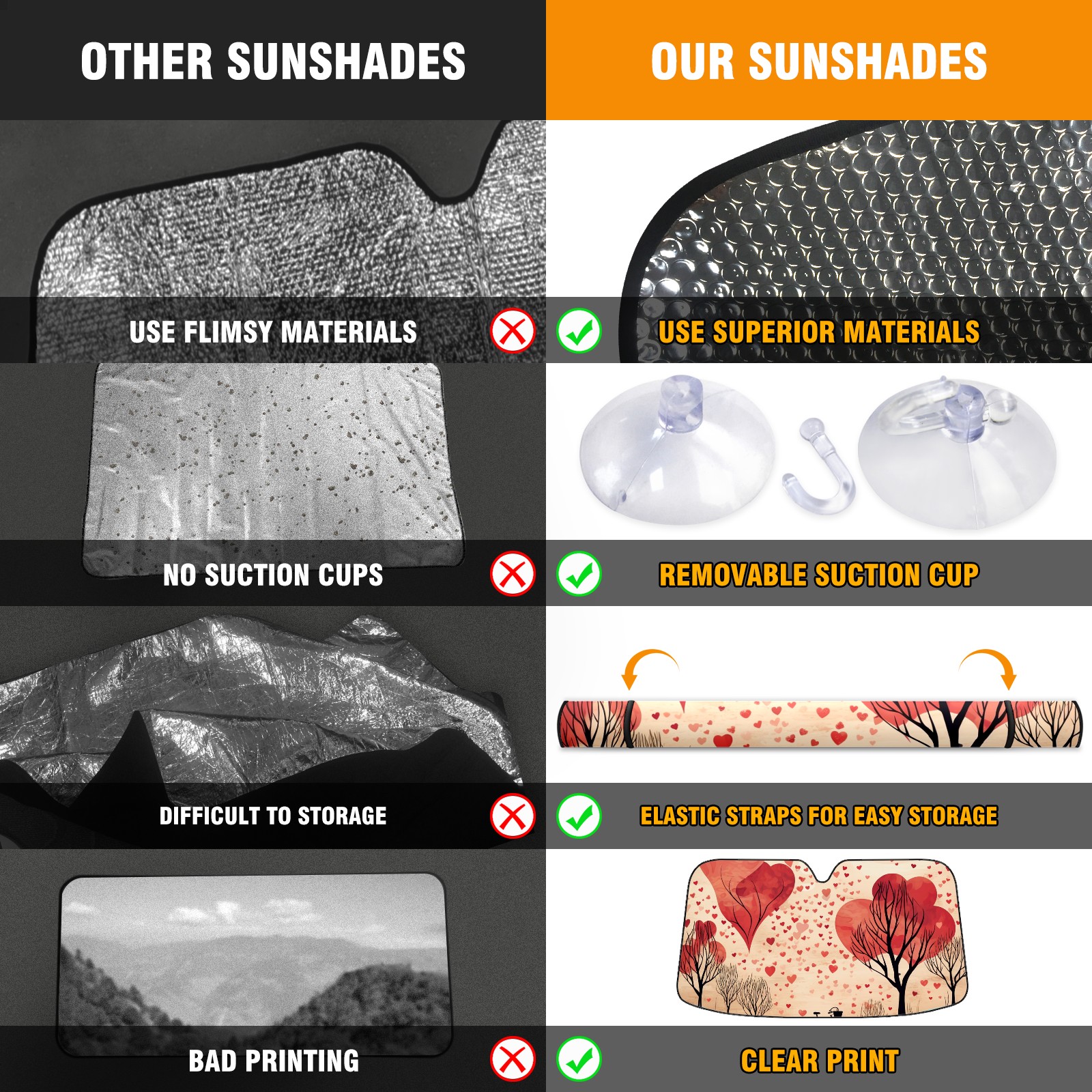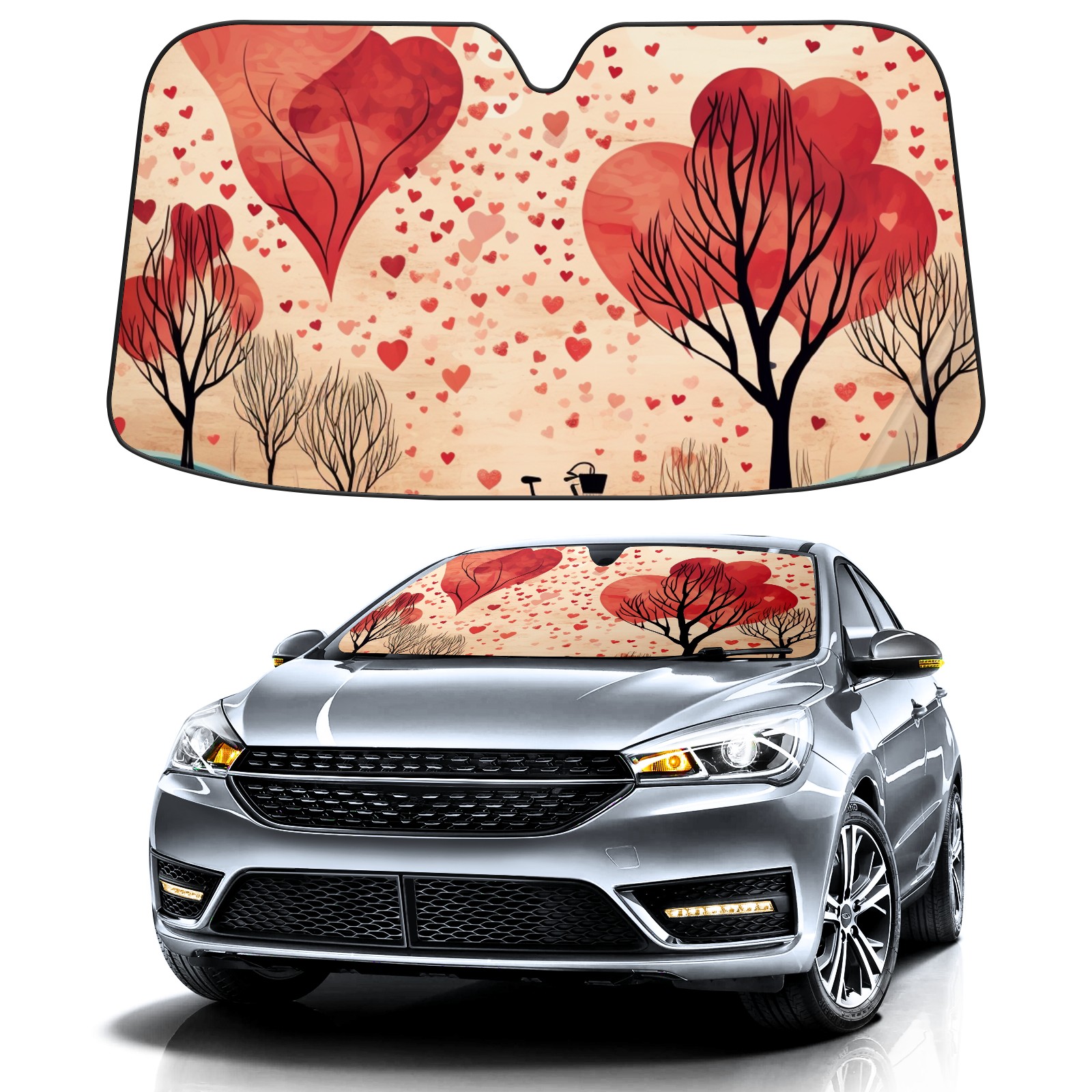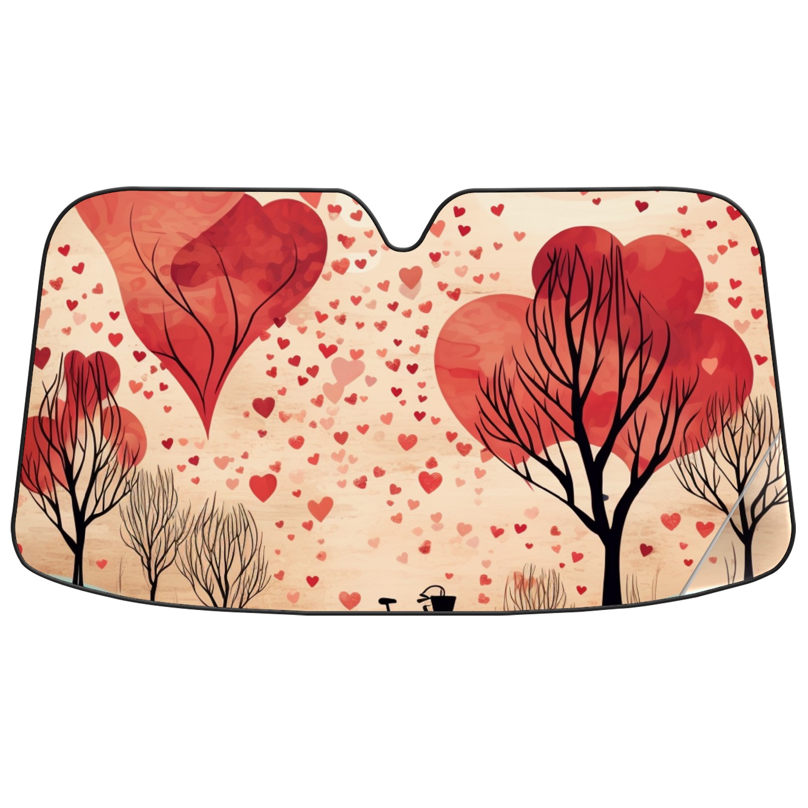 Happy Valentine Bicycle Car Sun Shade UV Protection Foldable Sunshade for Windshield Heat Insulation Portable Sun Shield for Car Interior Protection Automotive Window Protector