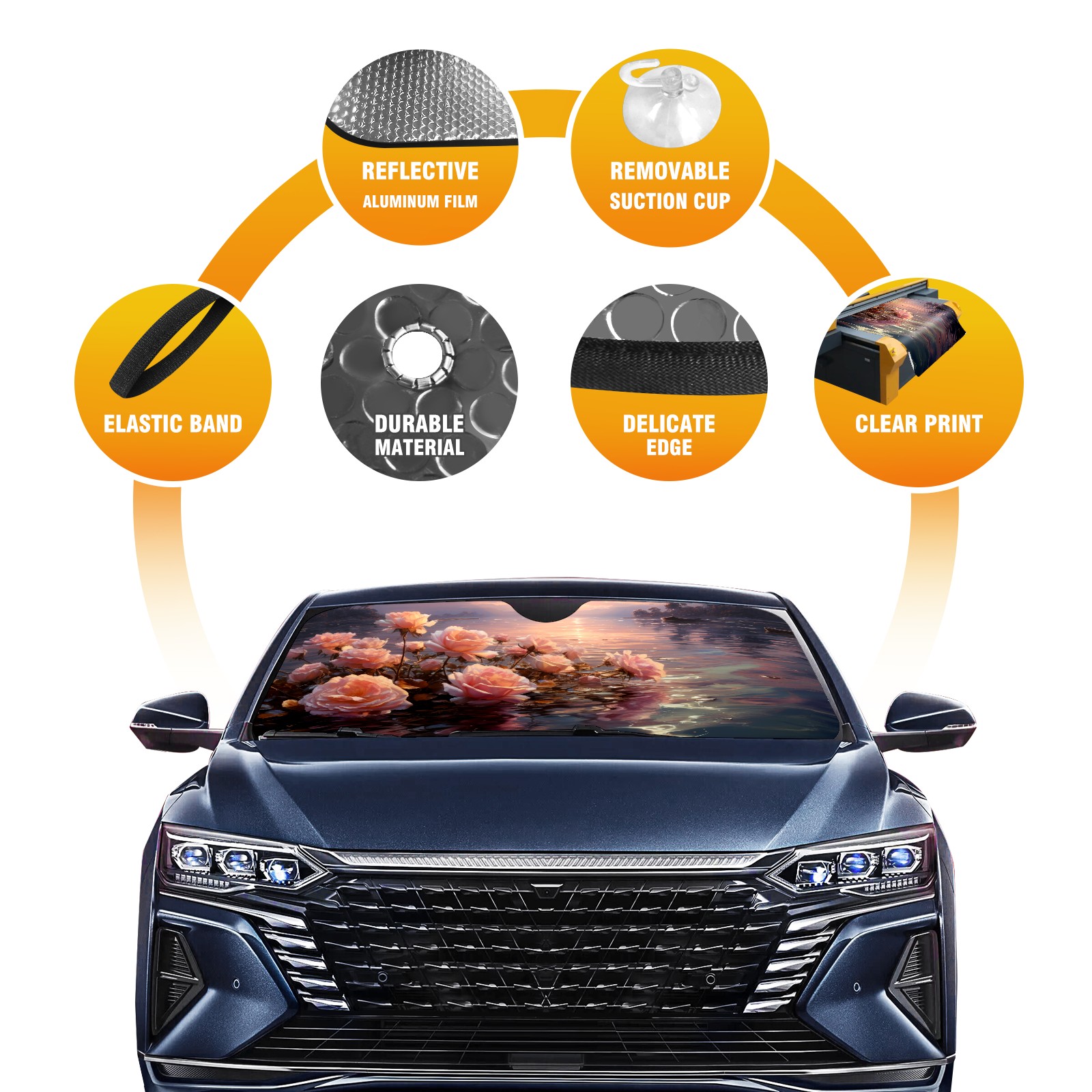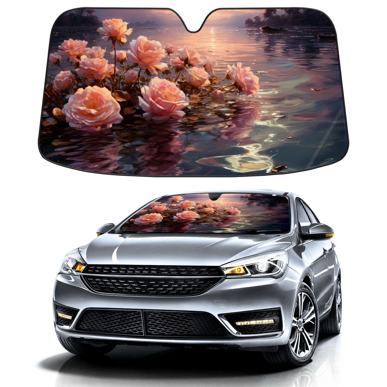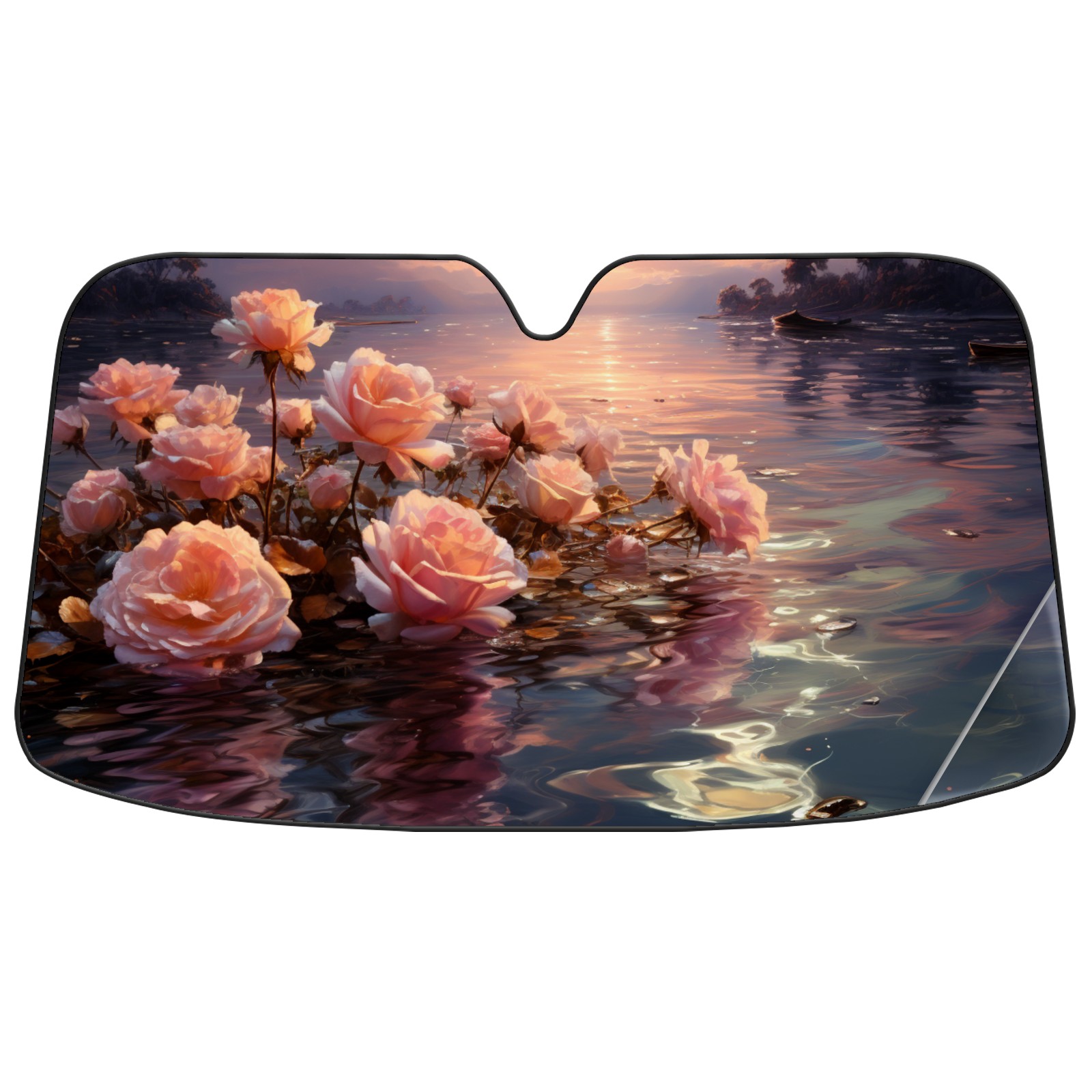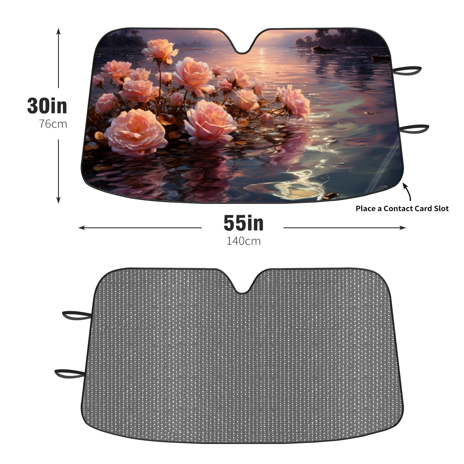 Valentine's Day Flowers Car Sun Shade UV Protection Foldable Sunshade for Windshield Heat Insulation Portable Sun Shield for Car Interior Protection Automotive Window Protector