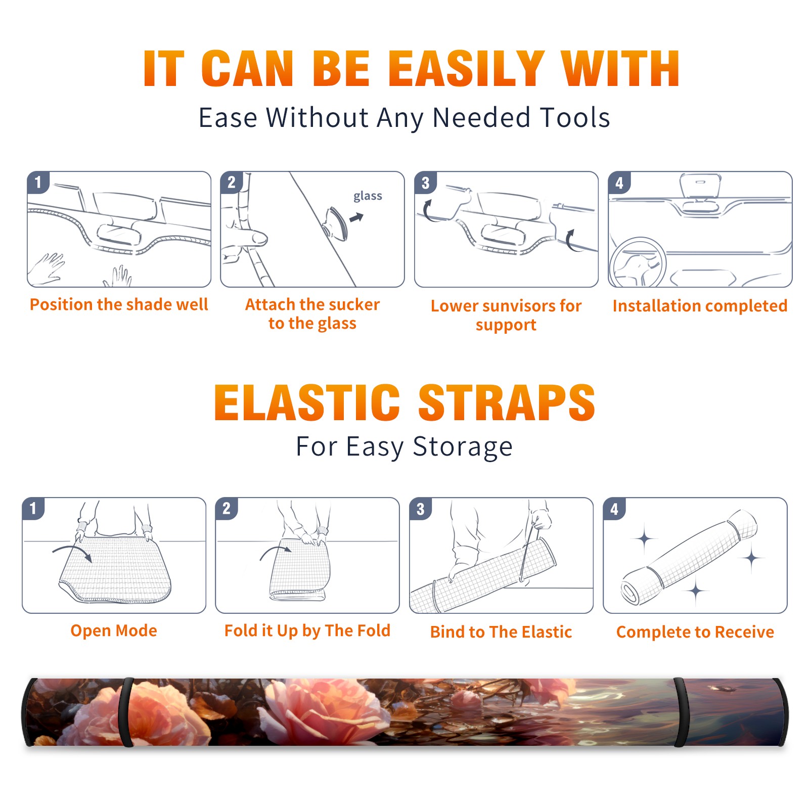 • <p><b>Foldable Premium Car Windshield Sunshade is your great solution to reduce your car’s interior temperature dramatically! This is definitely a must-have item for your summer travel!</b></p><p><b>【Precision Fit, Stylish Protection】</b></p><p>55"x30" (140x76cm) universal size with 3cm flexible margins fits curved windshields of most sedans/SUVs.</p><p><b>【Blocking Uv Rays &amp; Heat Insulation】</b></p><p>Our vehicle sunshade provides effective UV, sun, and summer heat protection, preventing leather fading and plastic cracking to keep your car interior pristine.</p><p><b>【Zero-Mark Installation &amp; Space-Saving】</b></p><p>Equipped with dual scratch-free silicone suction cups + adjustable straps: Medical-grade silicone cups hold firmly yet remove cleanly. Folds to A3 size (42x30cm x &lt;2cm thick), tucks discreetly into glove compartments or door pockets.&nbsp;</p>