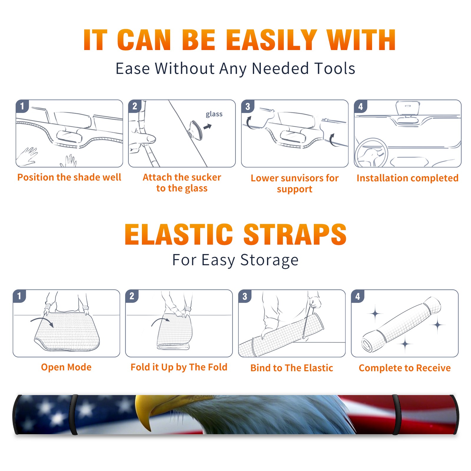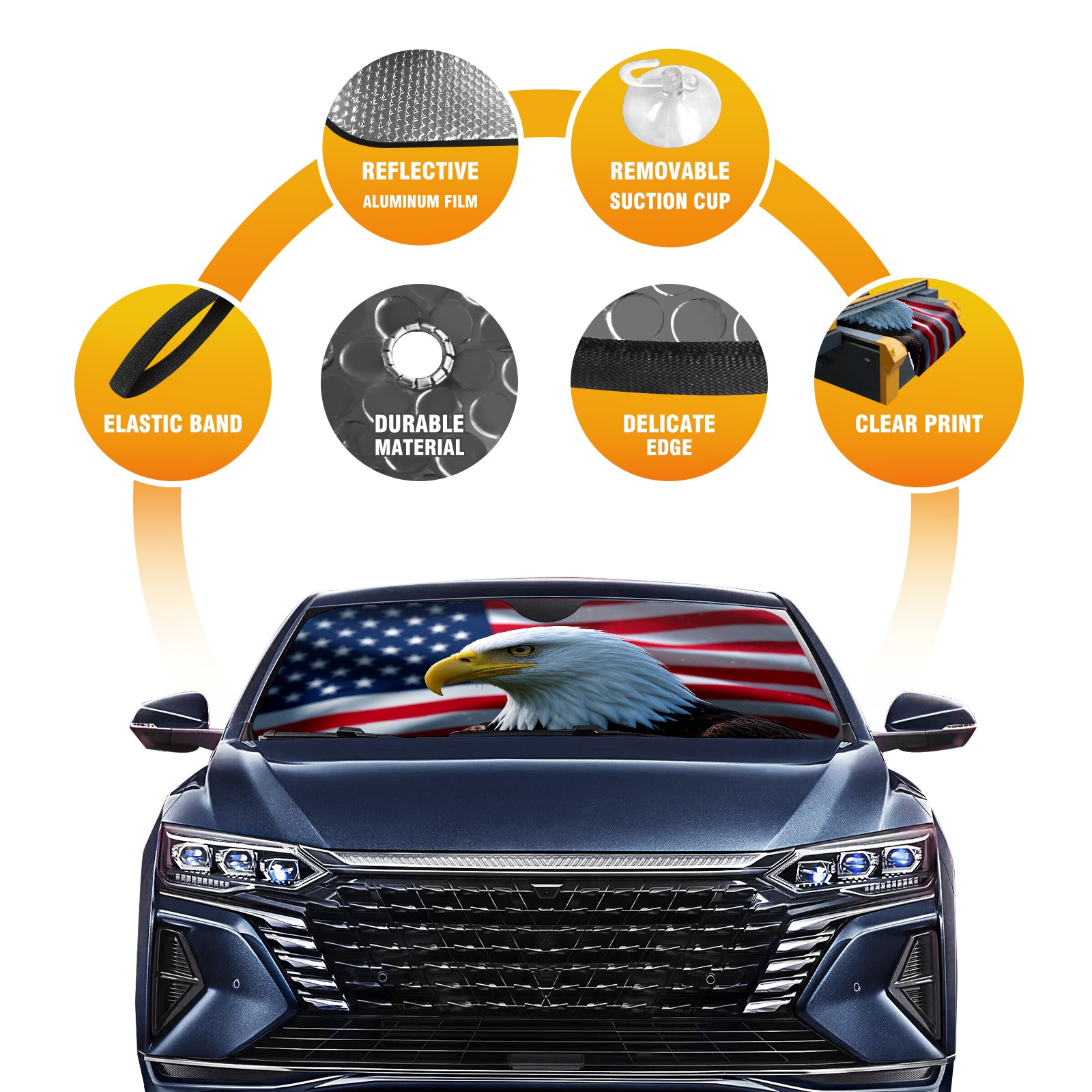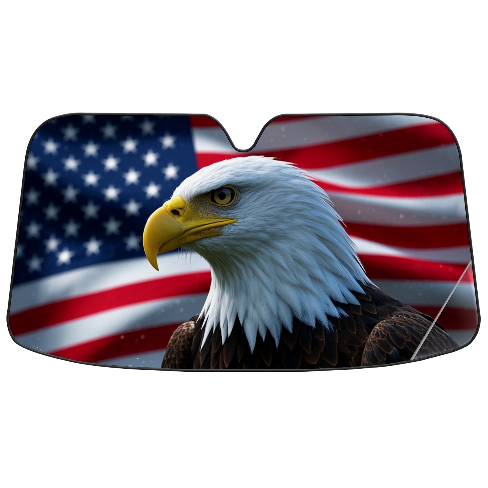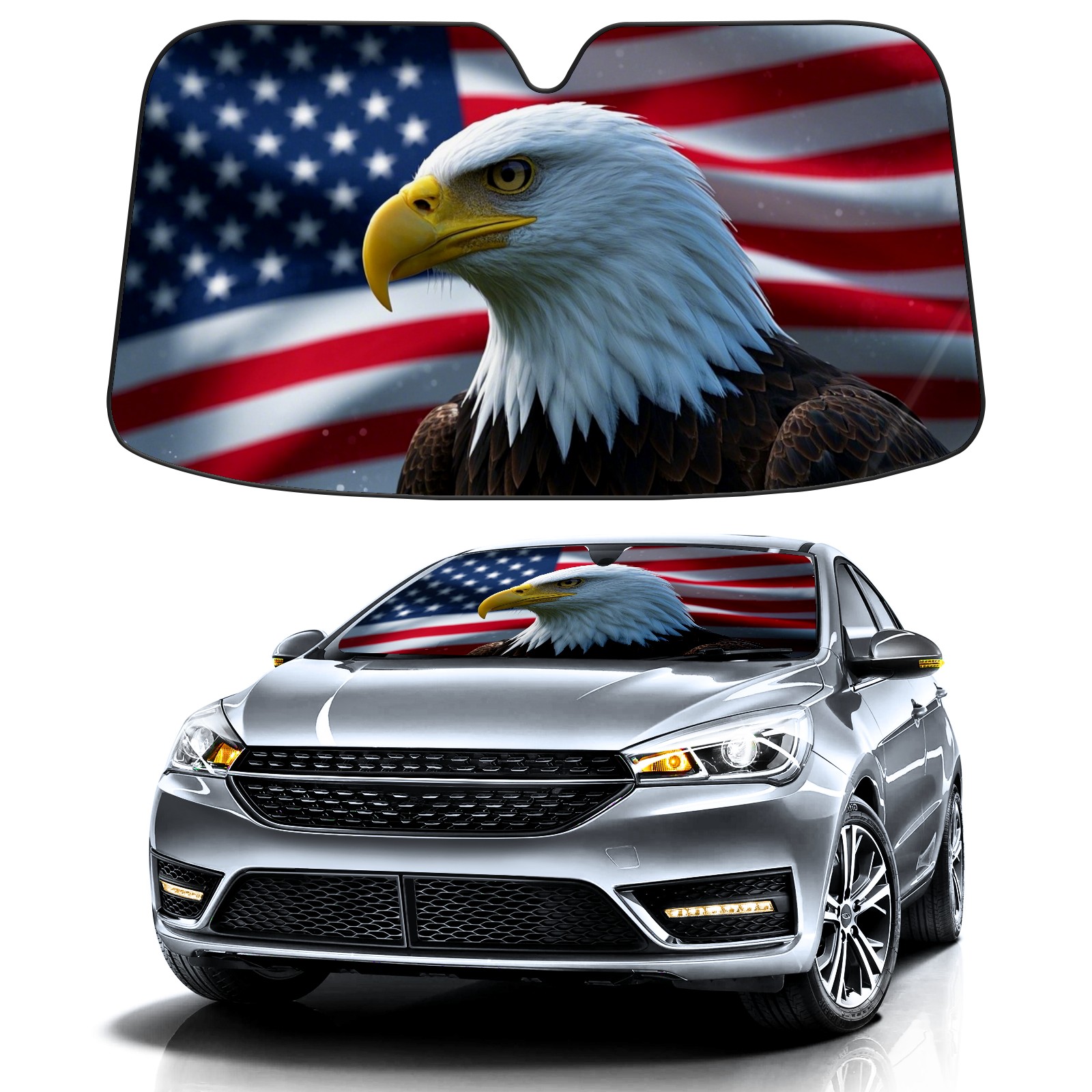 The American Flag Eagle Car Sun Shade UV Protection Foldable Sunshade for Windshield Heat Insulation Portable Sun Shield for Car Interior Protection Automotive Window Protector