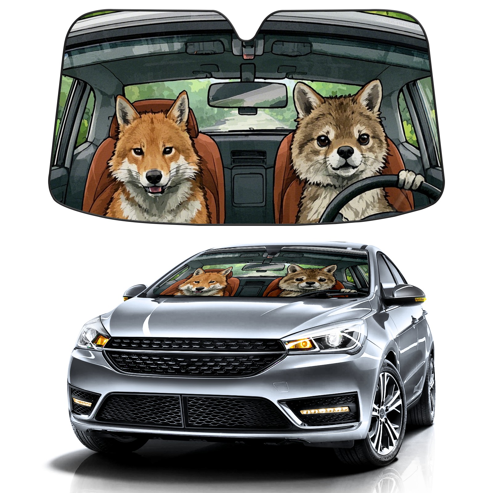 Cartoon Fox Driver Car Sun Shade UV Protection Foldable Sunshade for Windshield Heat Insulation Portable Sun Shield for Car Interior Protection Automotive Window Protector