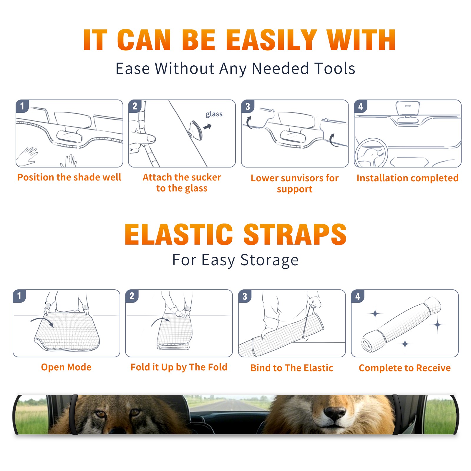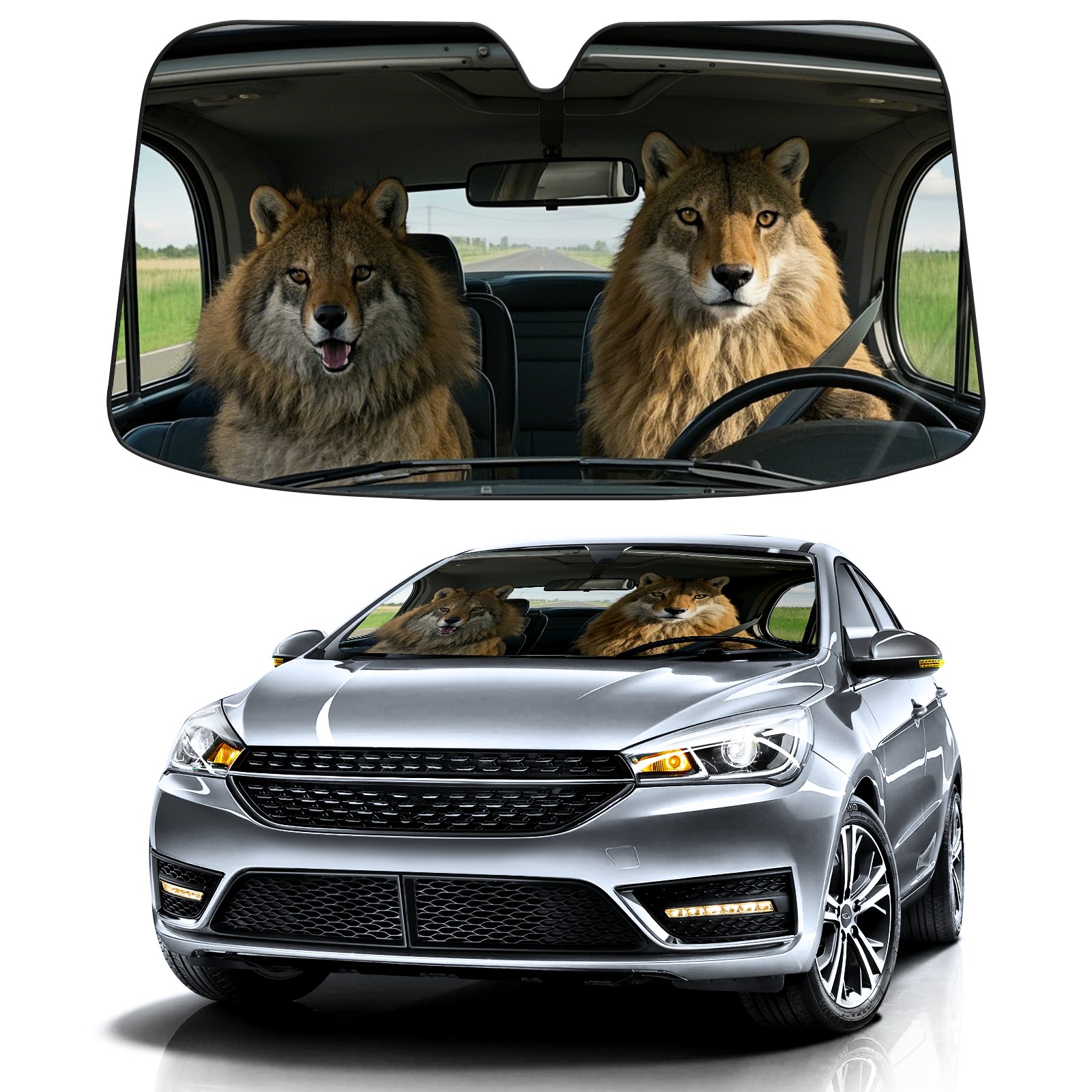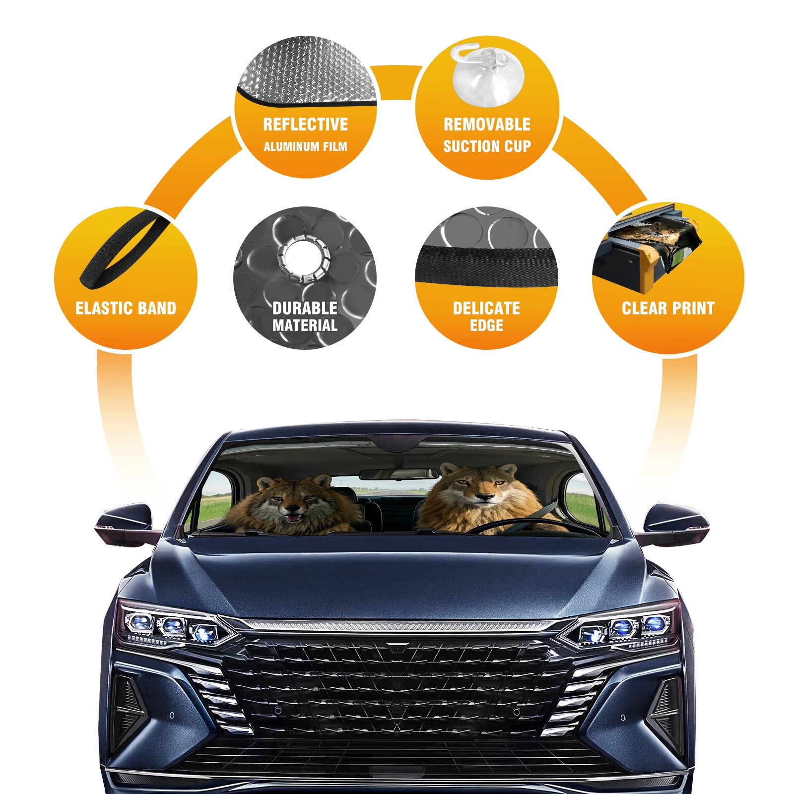 Lion Driver Car Sun Shade UV Protection Foldable Sunshade for Windshield Heat Insulation Portable Sun Shield for Car Interior Protection Automotive Window Protector
