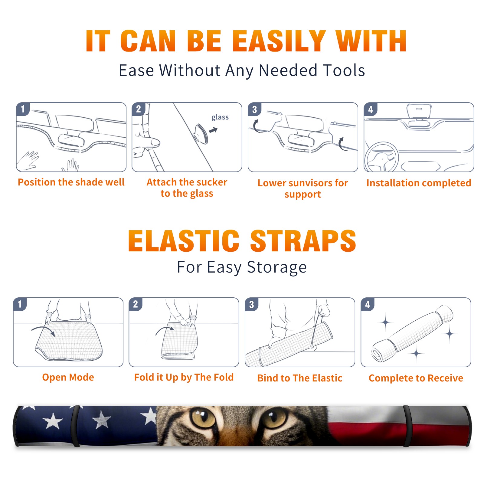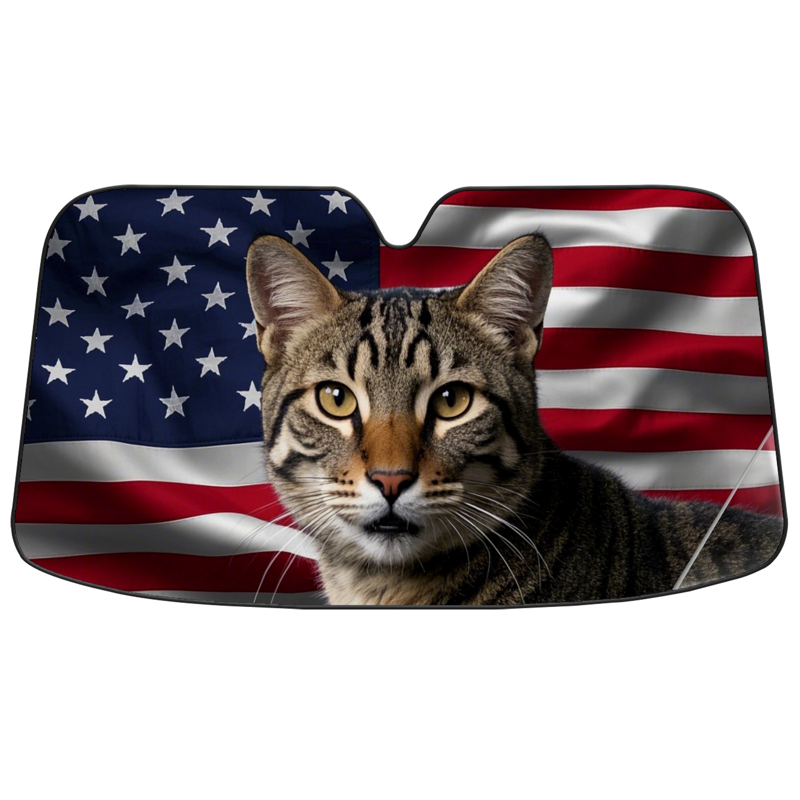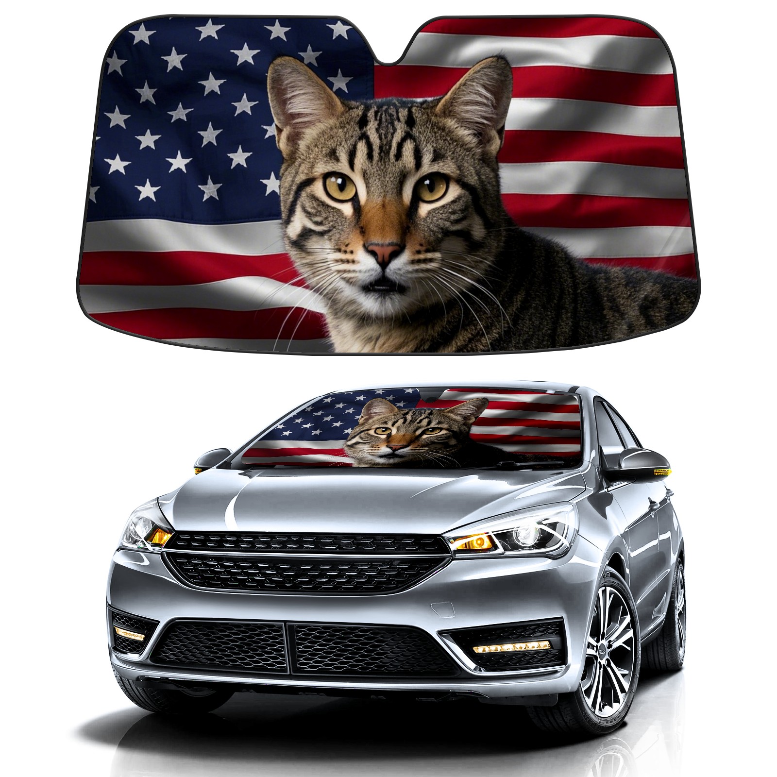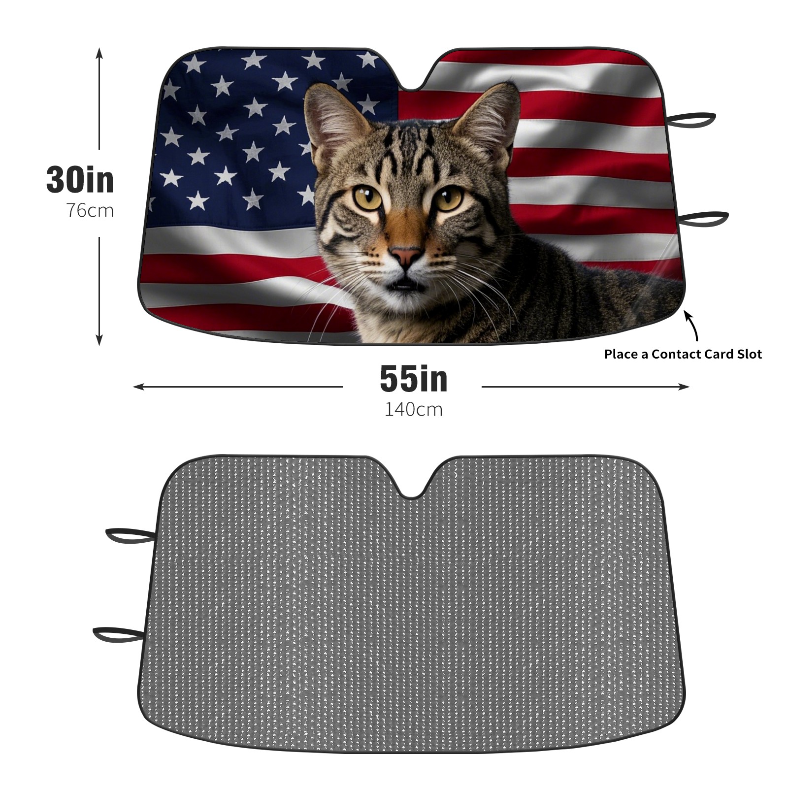 American Flag Cat Car Sun Shade UV Protection Foldable Sunshade for Windshield Heat Insulation Portable Sun Shield for Car Interior Protection Automotive Window Protector