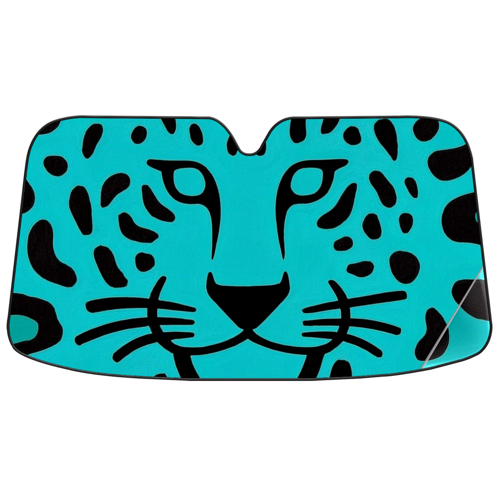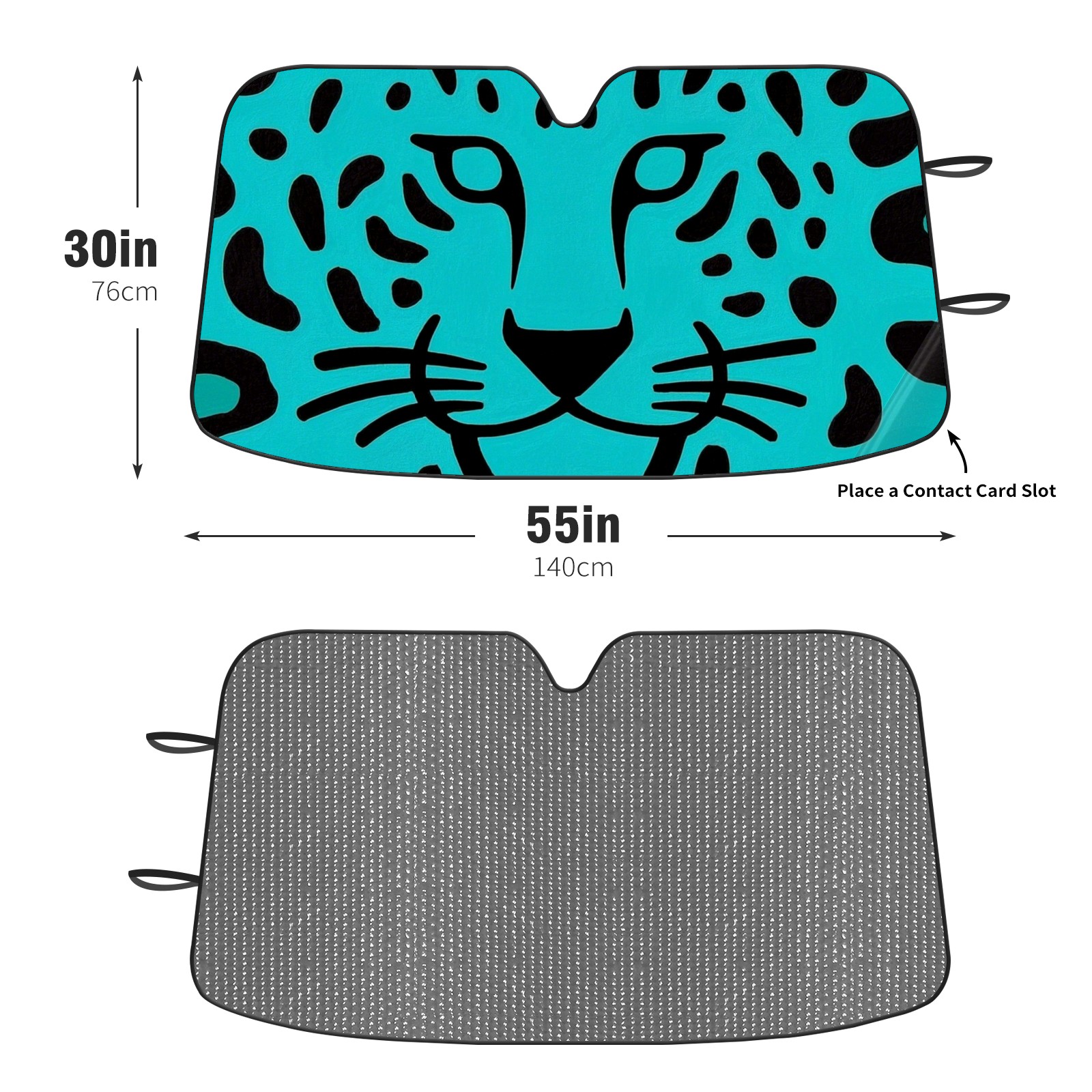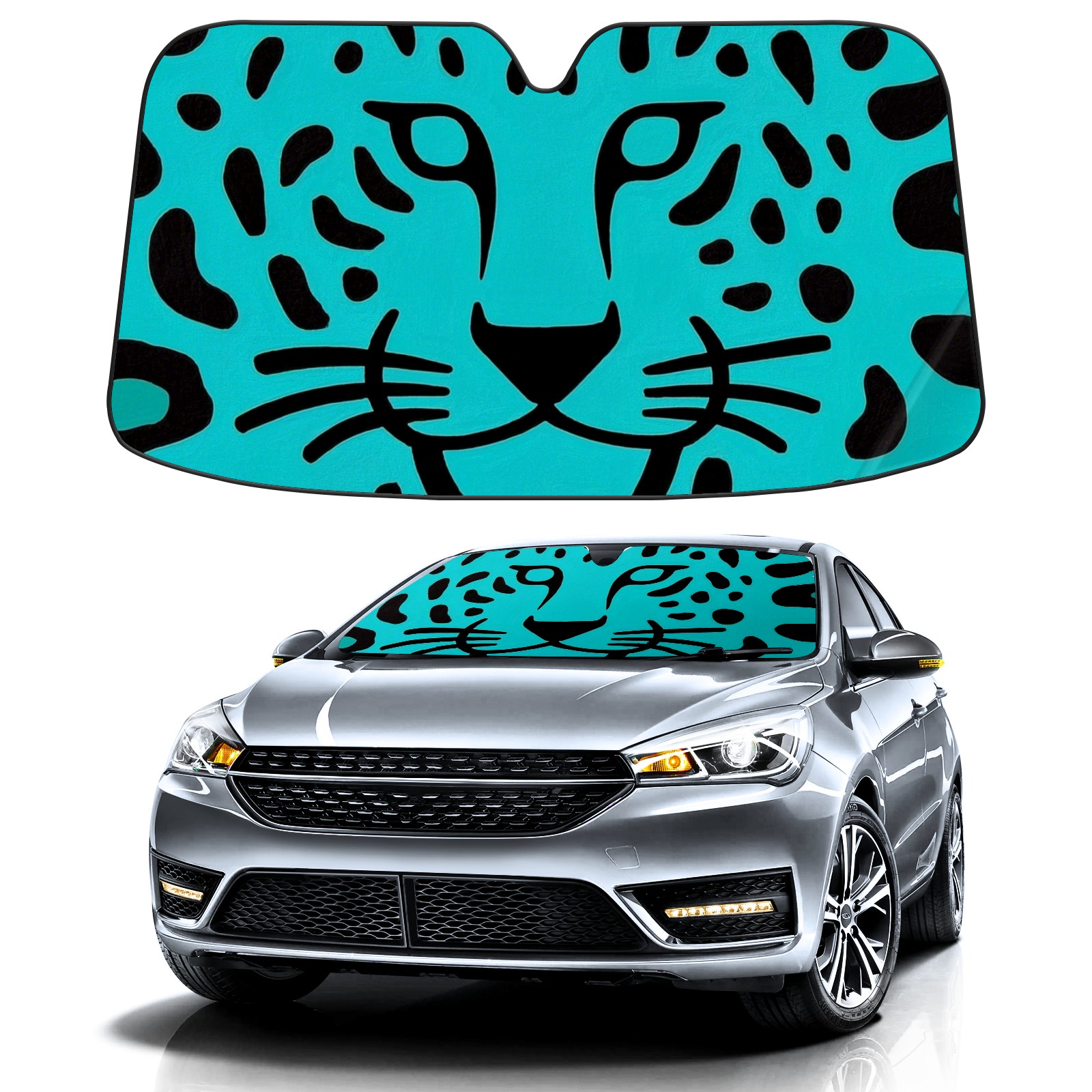 Fluorescent Green Leopard Car Sun Shade UV Protection Foldable Sunshade for Windshield Heat Insulation Portable Sun Shield for Car Interior Protection Automotive Window Protector