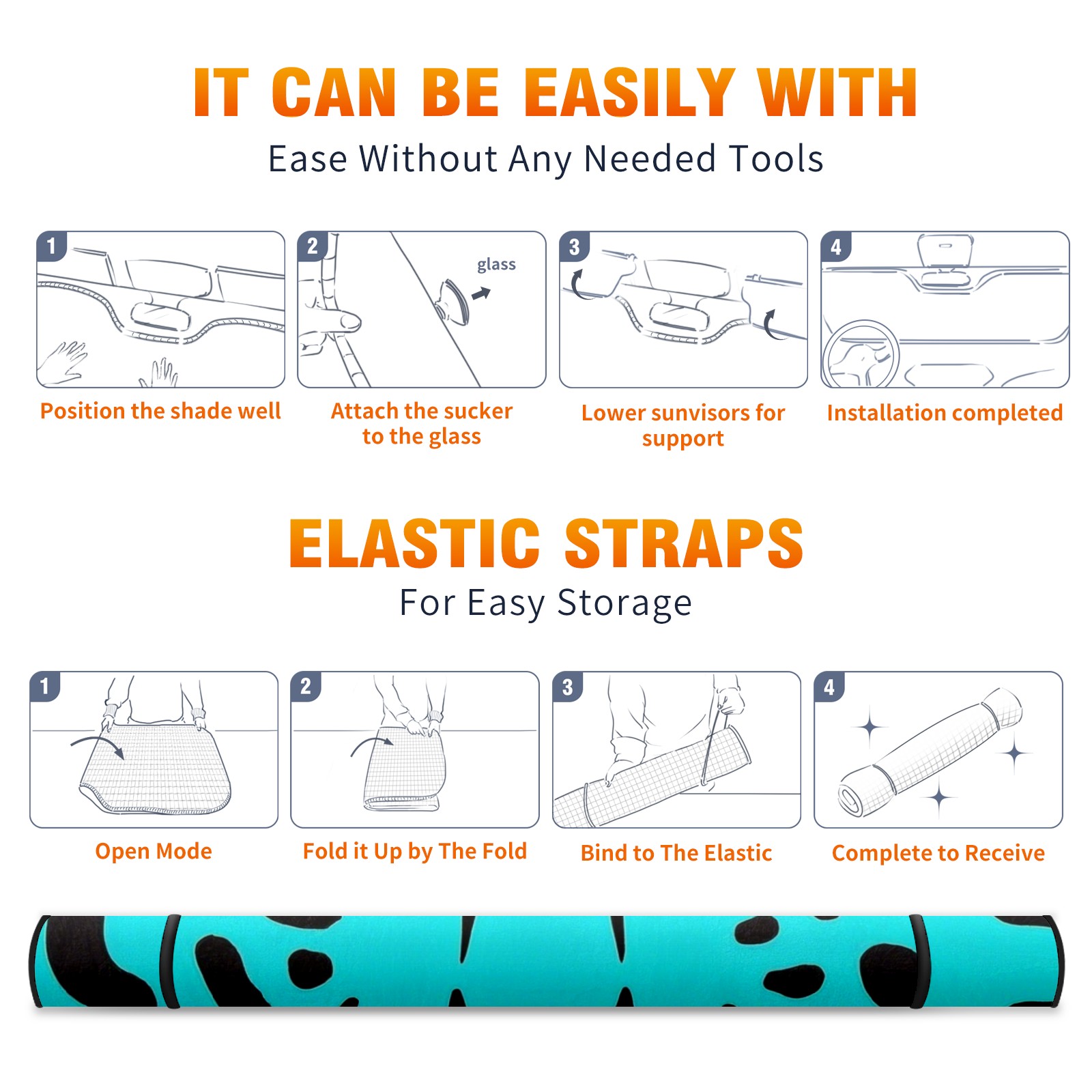 <p><b>Foldable Premium Car Windshield Sunshade is your great solution to reduce your car’s interior temperature dramatically! This is definitely a must-have item for your summer travel!</b></p><p><b>【Precision Fit, Stylish Protection】</b></p><p>55"x30" (140x76cm) universal size with 3cm flexible margins fits curved windshields of most sedans/SUVs.</p><p><b>【Blocking Uv Rays &amp; Heat Insulation】</b></p><p>Our vehicle sunshade provides effective UV, sun, and summer heat protection, preventing leather fading and plastic cracking to keep your car interior pristine.</p><p><b>【Zero-Mark Installation &amp; Space-Saving】</b></p><p>Equipped with dual scratch-free silicone suction cups + adjustable straps: Medical-grade silicone cups hold firmly yet remove cleanly. Folds to A3 size (42x30cm x &lt;2cm thick), tucks discreetly into glove compartments or door pockets.&nbsp;</p>