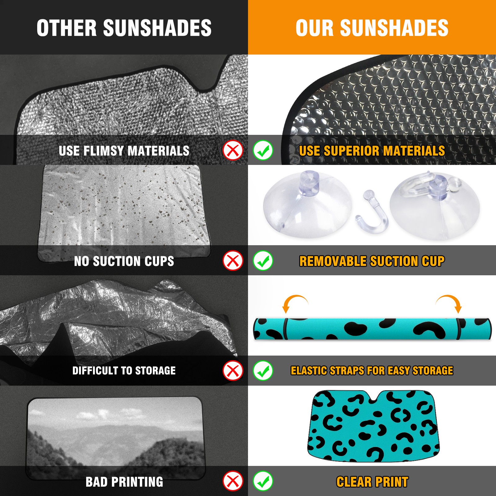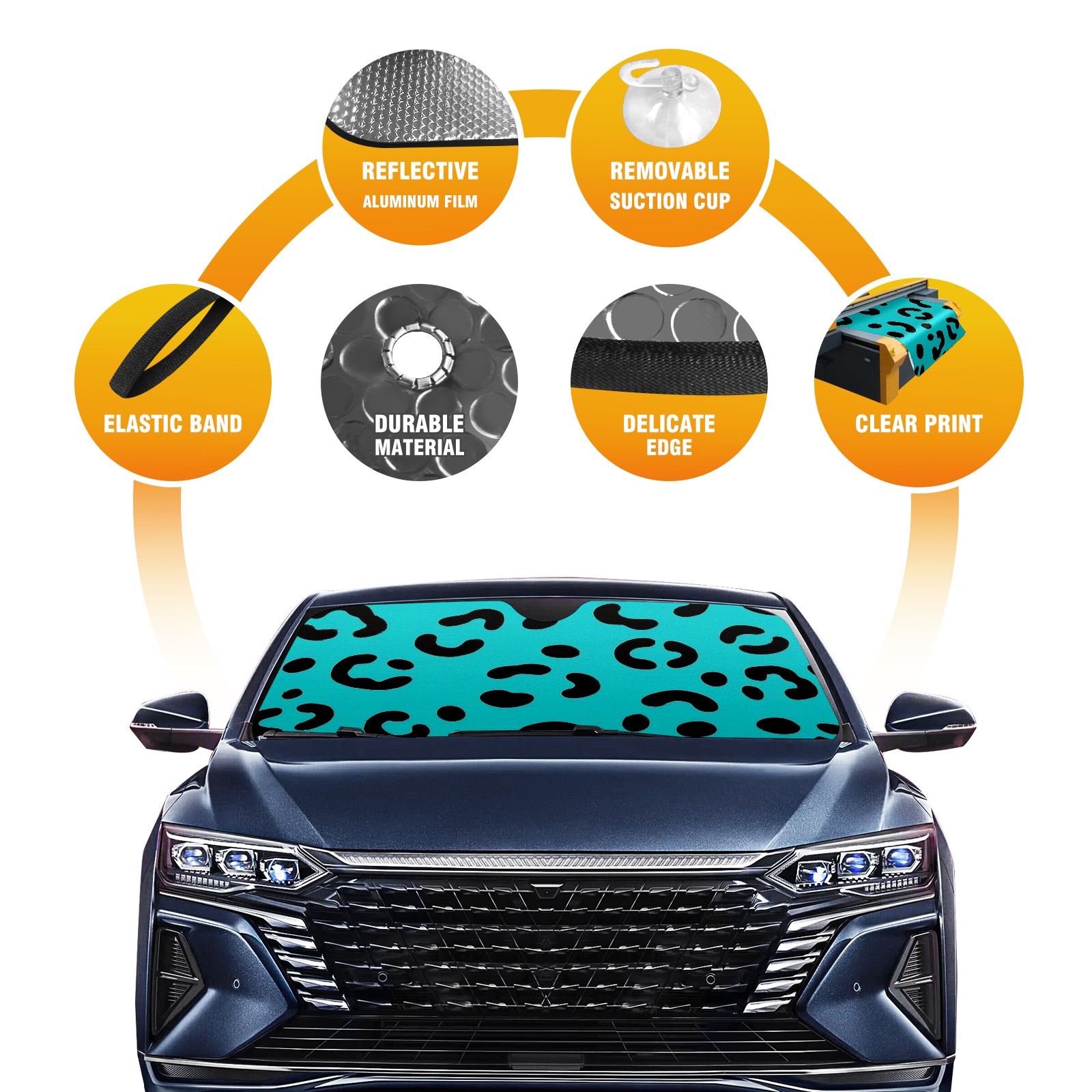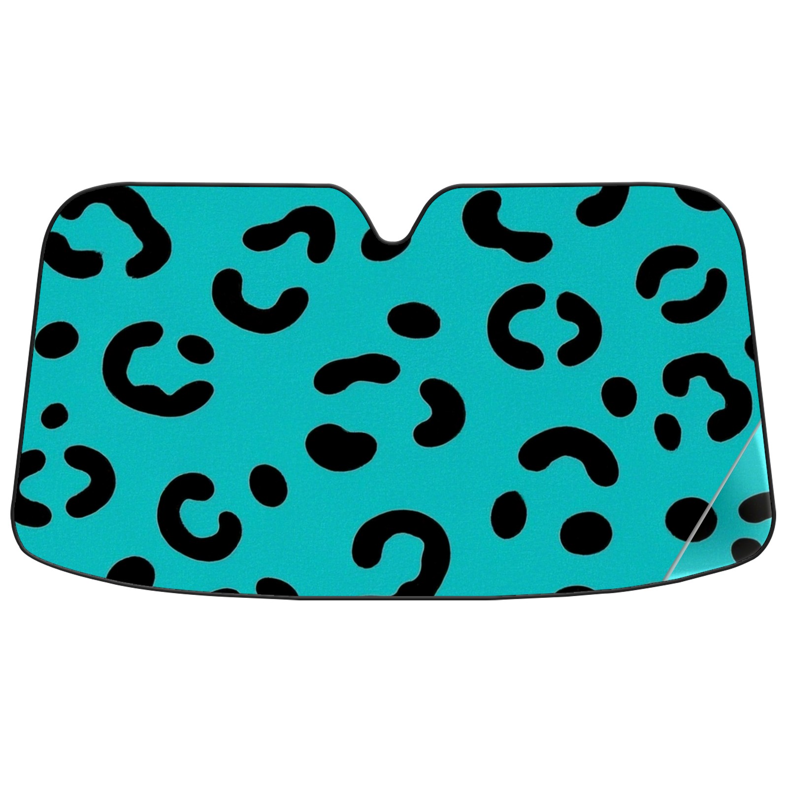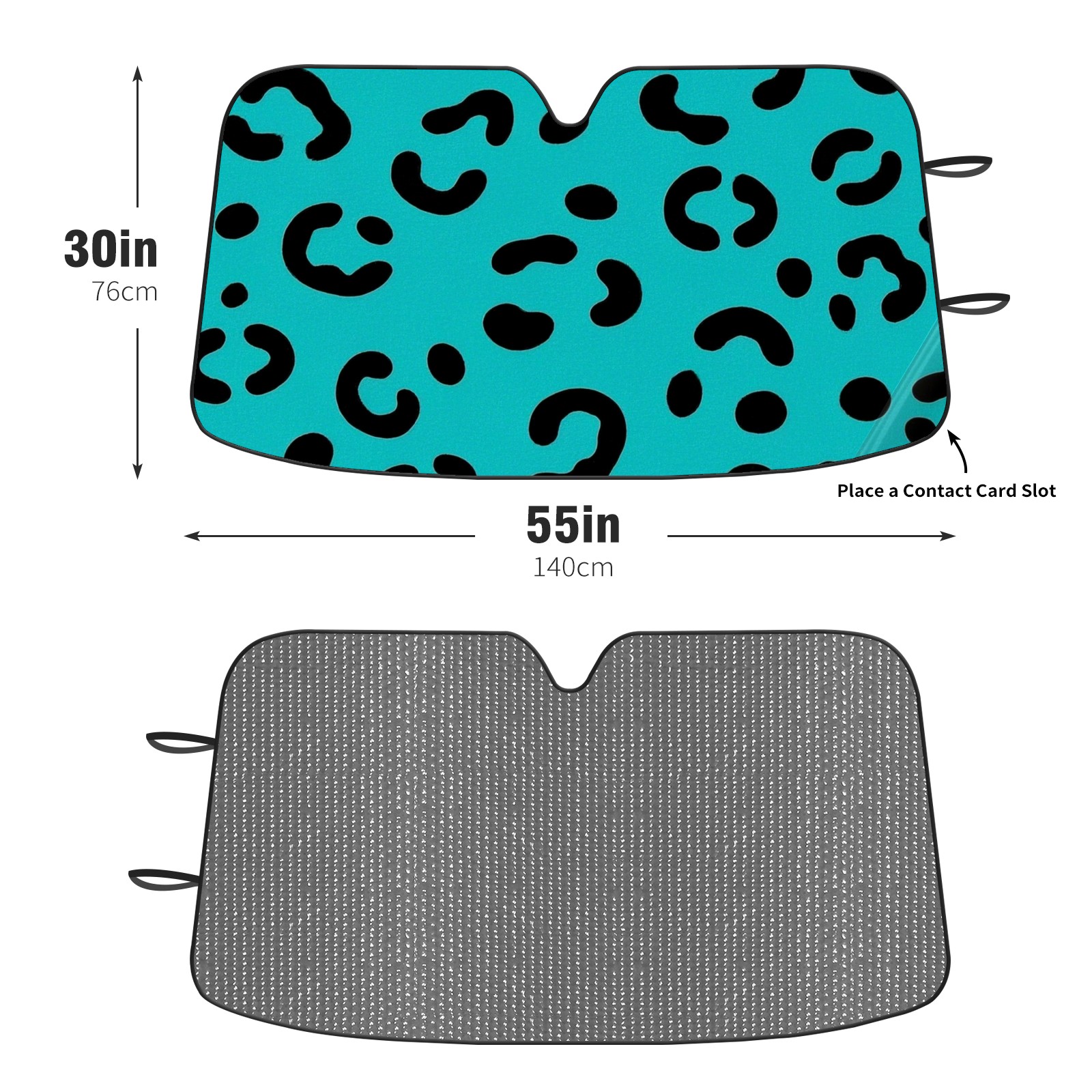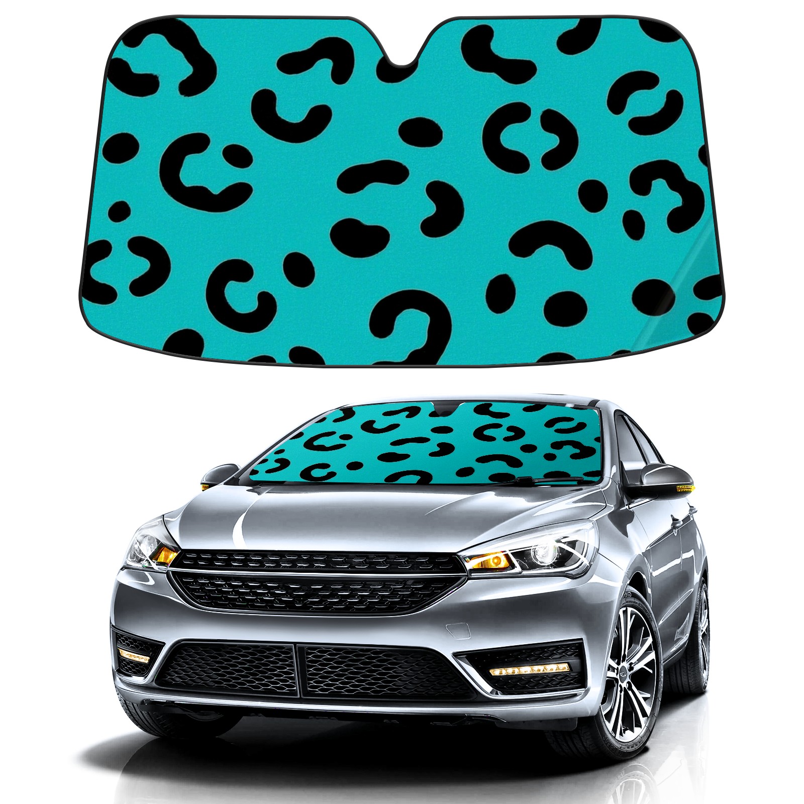 Fluorescent Green Leopard Print Car Sun Shade UV Protection Foldable Sunshade for Windshield Heat Insulation Portable Sun Shield for Car Interior Protection Automotive Window Protector