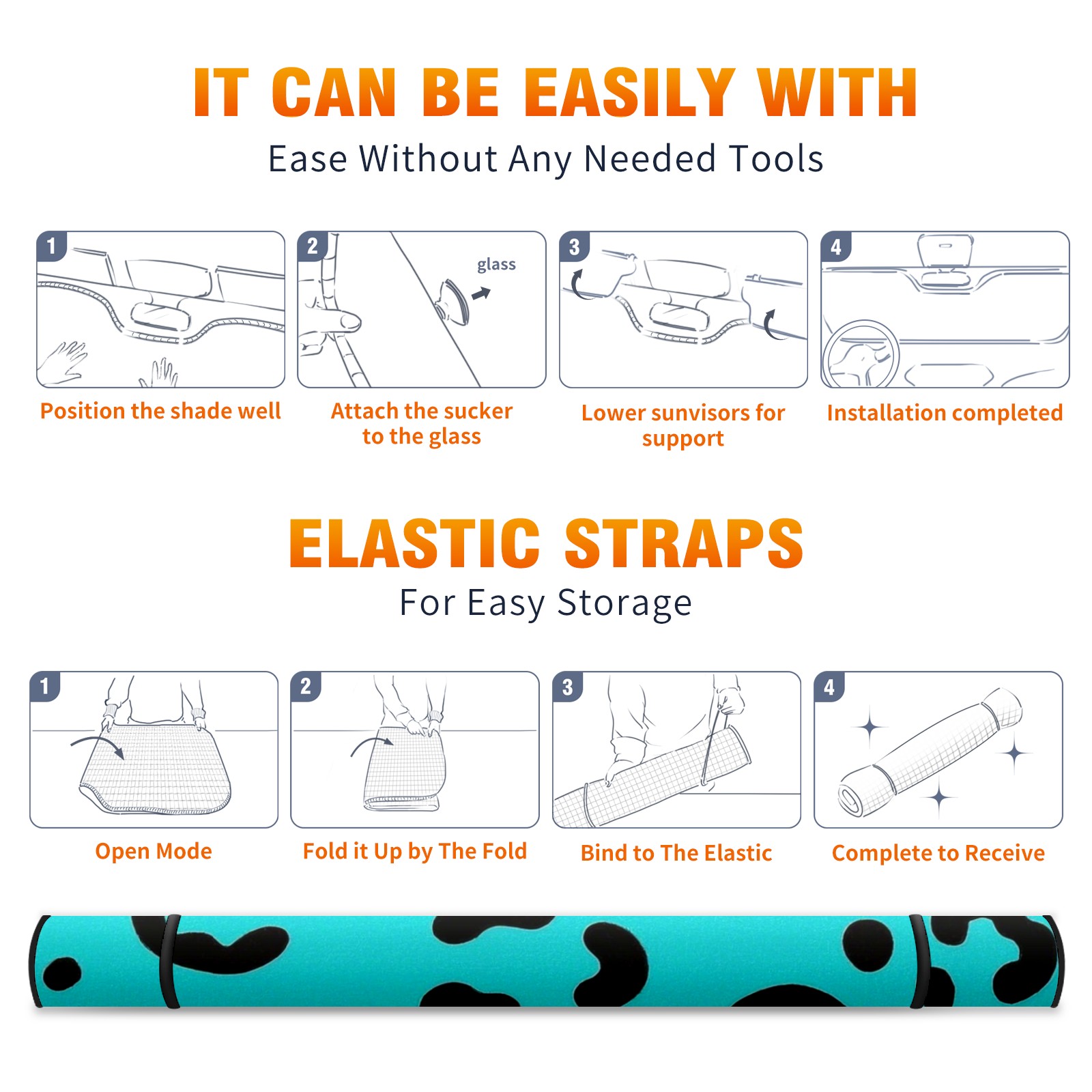 • <p><b>Foldable Premium Car Windshield Sunshade is your great solution to reduce your car’s interior temperature dramatically! This is definitely a must-have item for your summer travel!</b></p><p><b>【Precision Fit, Stylish Protection】</b></p><p>55"x30" (140x76cm) universal size with 3cm flexible margins fits curved windshields of most sedans/SUVs.</p><p><b>【Blocking Uv Rays &amp; Heat Insulation】</b></p><p>Our vehicle sunshade provides effective UV, sun, and summer heat protection, preventing leather fading and plastic cracking to keep your car interior pristine.</p><p><b>【Zero-Mark Installation &amp; Space-Saving】</b></p><p>Equipped with dual scratch-free silicone suction cups + adjustable straps: Medical-grade silicone cups hold firmly yet remove cleanly. Folds to A3 size (42x30cm x &lt;2cm thick), tucks discreetly into glove compartments or door pockets.&nbsp;</p>