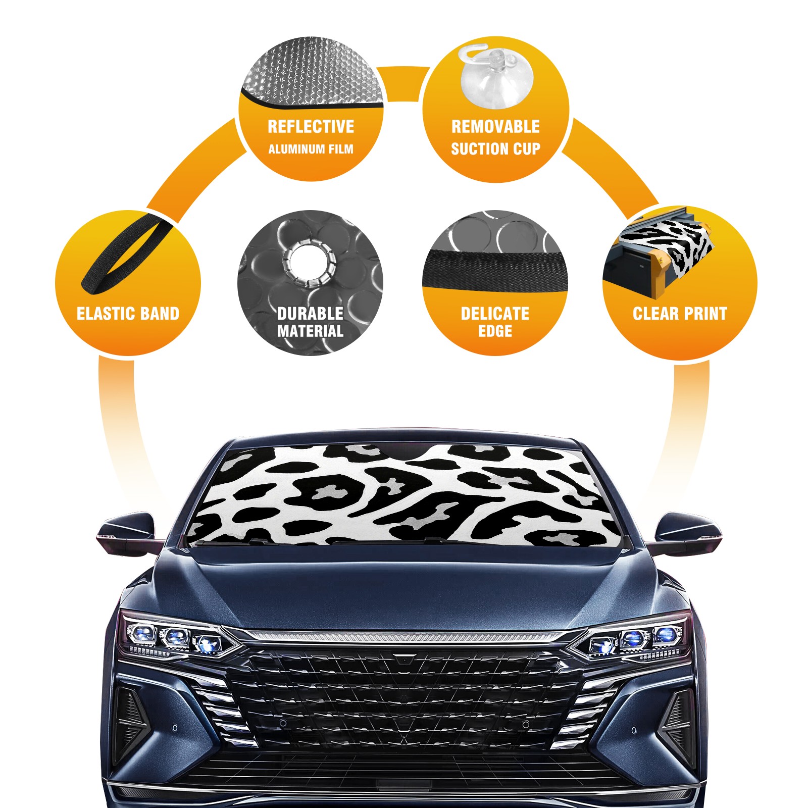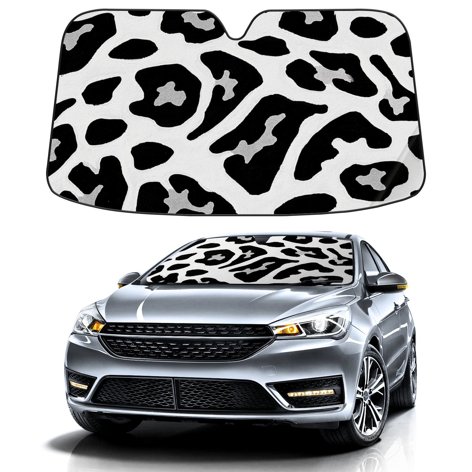 Black And White Leopard Print Car Sun Shade UV Protection Foldable Sunshade for Windshield Heat Insulation Portable Sun Shield for Car Interior Protection Automotive Window Protector