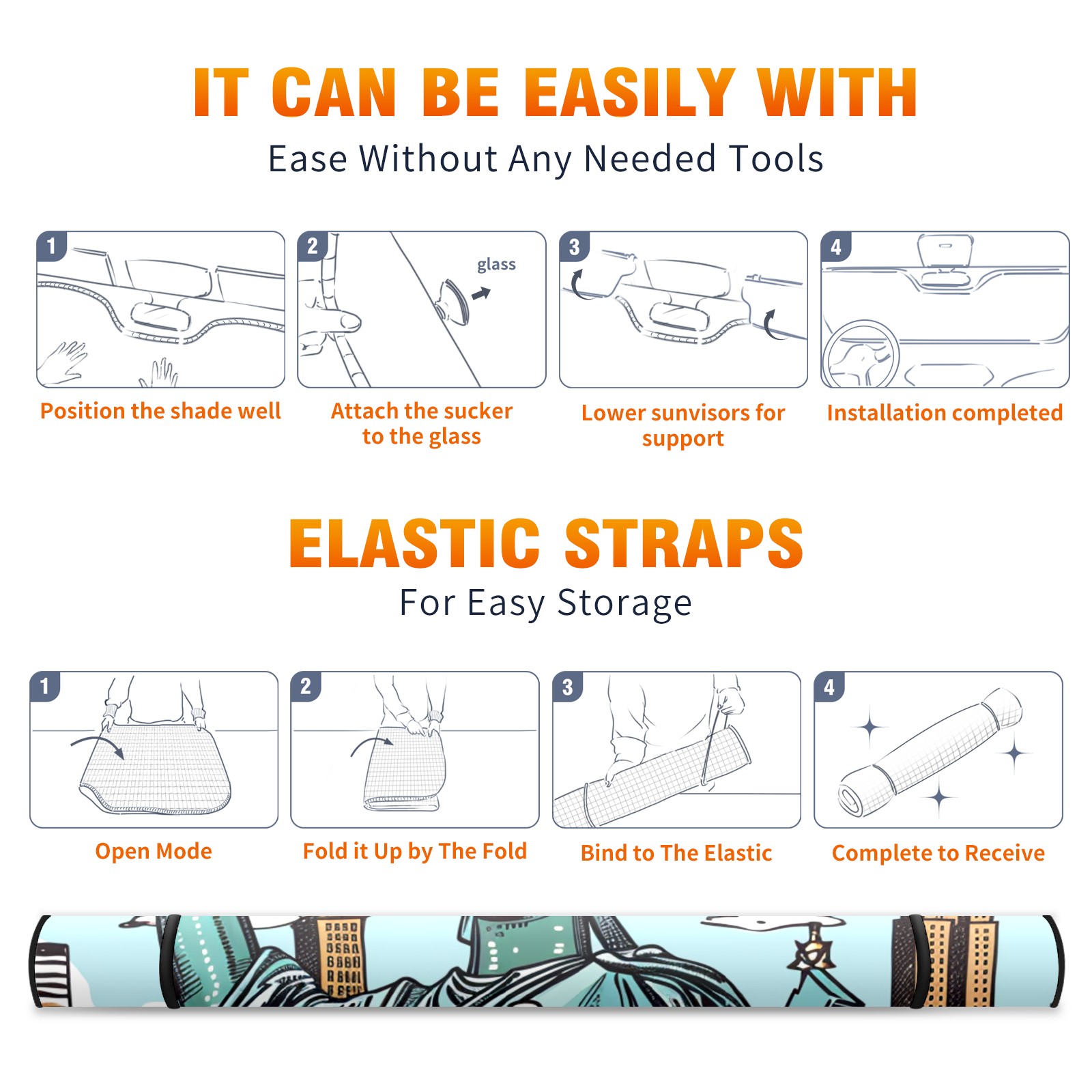 • <p><b>Foldable Premium Car Windshield Sunshade is your great solution to reduce your car’s interior temperature dramatically! This is definitely a must-have item for your summer travel!</b></p><p><b>【Precision Fit, Stylish Protection】</b></p><p>55"x30" (140x76cm) universal size with 3cm flexible margins fits curved windshields of most sedans/SUVs.</p><p><b>【Blocking Uv Rays &amp; Heat Insulation】</b></p><p>Our vehicle sunshade provides effective UV, sun, and summer heat protection, preventing leather fading and plastic cracking to keep your car interior pristine.</p><p><b>【Zero-Mark Installation &amp; Space-Saving】</b></p><p>Equipped with dual scratch-free silicone suction cups + adjustable straps: Medical-grade silicone cups hold firmly yet remove cleanly. Folds to A3 size (42x30cm x &lt;2cm thick), tucks discreetly into glove compartments or door pockets.&nbsp;</p>