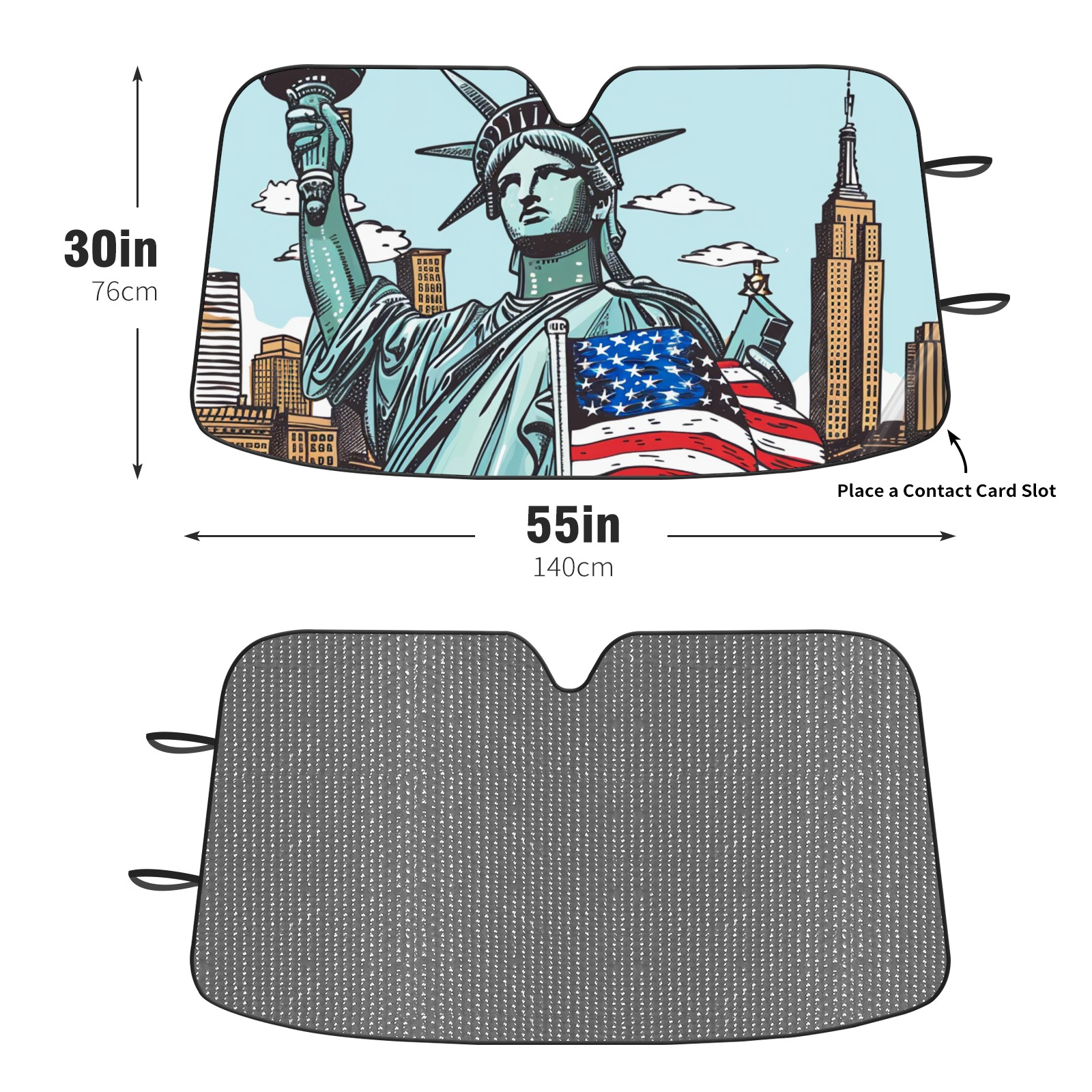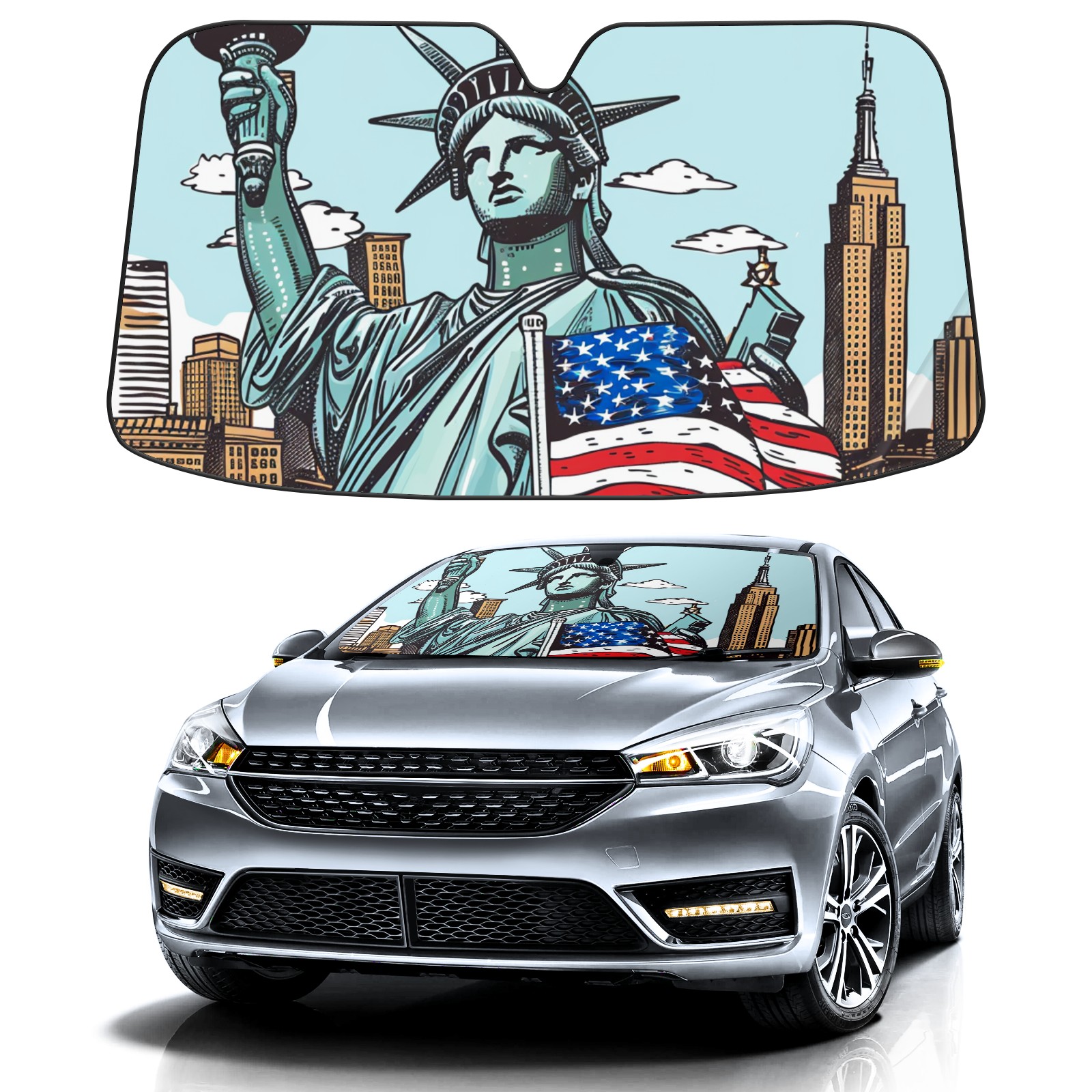Americ New York Car Sun Shade UV Protection Foldable Sunshade for Windshield Heat Insulation Portable Sun Shield for Car Interior Protection Automotive Window Protector