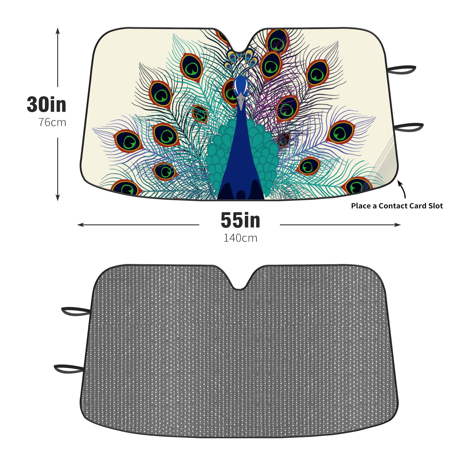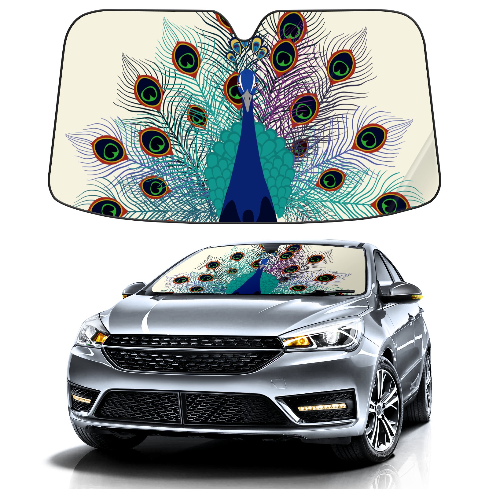 Retro Peacock Floral Car Sun Shade UV Protection Foldable Sunshade for Windshield Heat Insulation Portable Sun Shield for Car Interior Protection Automotive Window Protector