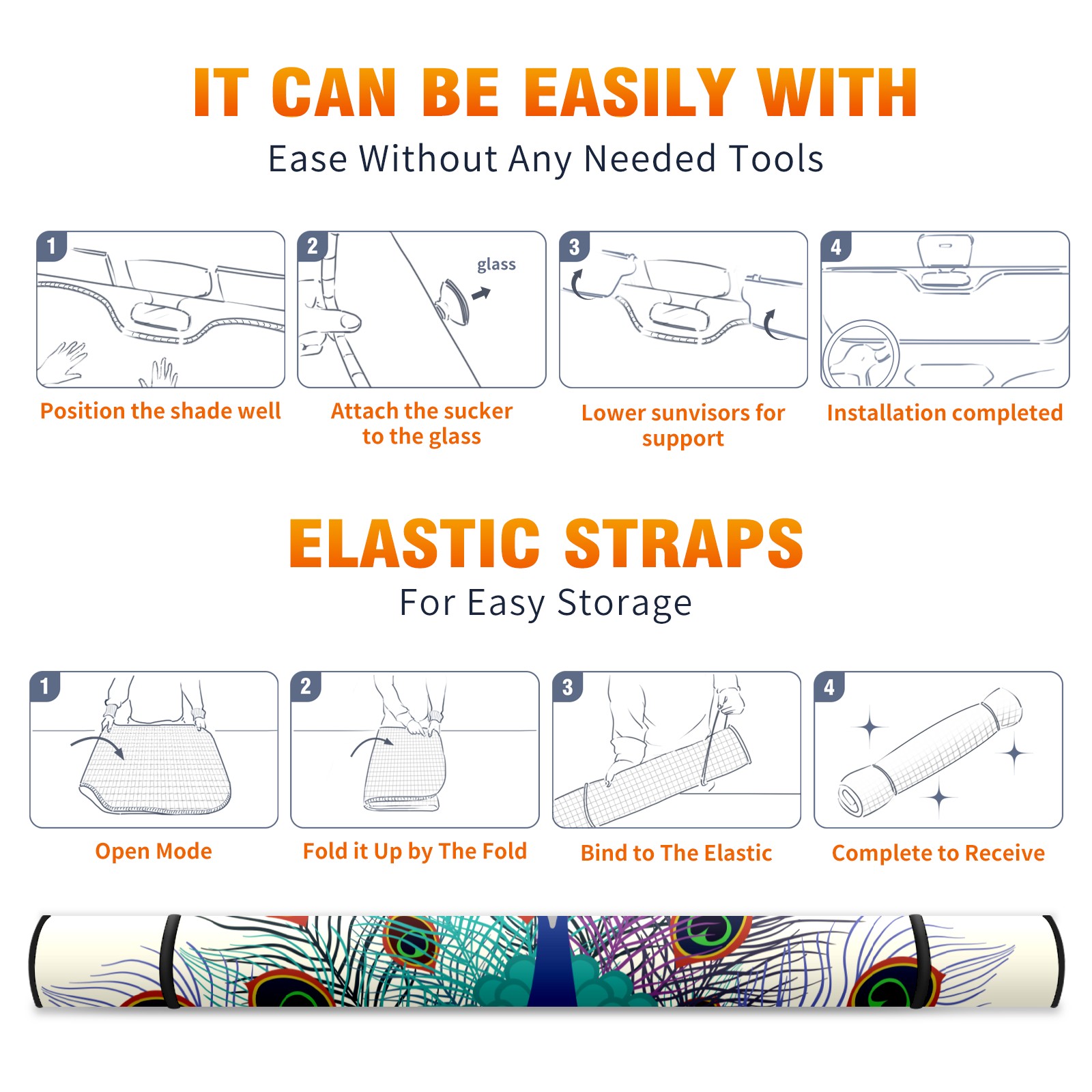 • <p><b>Foldable Premium Car Windshield Sunshade is your great solution to reduce your car’s interior temperature dramatically! This is definitely a must-have item for your summer travel!</b></p><p><b>【Precision Fit, Stylish Protection】</b></p><p>55"x30" (140x76cm) universal size with 3cm flexible margins fits curved windshields of most sedans/SUVs.</p><p><b>【Blocking Uv Rays &amp; Heat Insulation】</b></p><p>Our vehicle sunshade provides effective UV, sun, and summer heat protection, preventing leather fading and plastic cracking to keep your car interior pristine.</p><p><b>【Zero-Mark Installation &amp; Space-Saving】</b></p><p>Equipped with dual scratch-free silicone suction cups + adjustable straps: Medical-grade silicone cups hold firmly yet remove cleanly. Folds to A3 size (42x30cm x &lt;2cm thick), tucks discreetly into glove compartments or door pockets.&nbsp;</p>