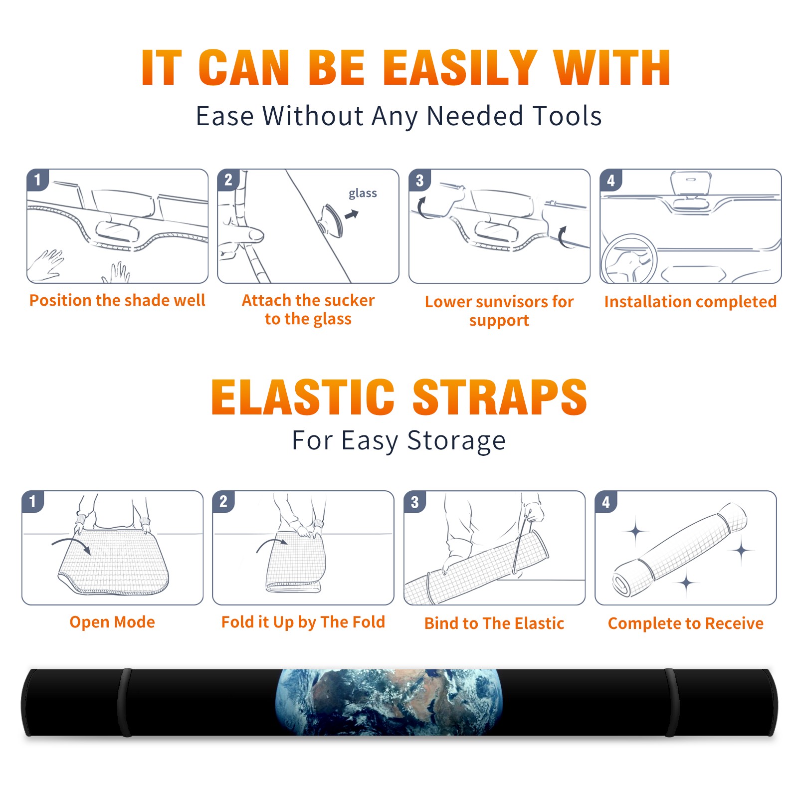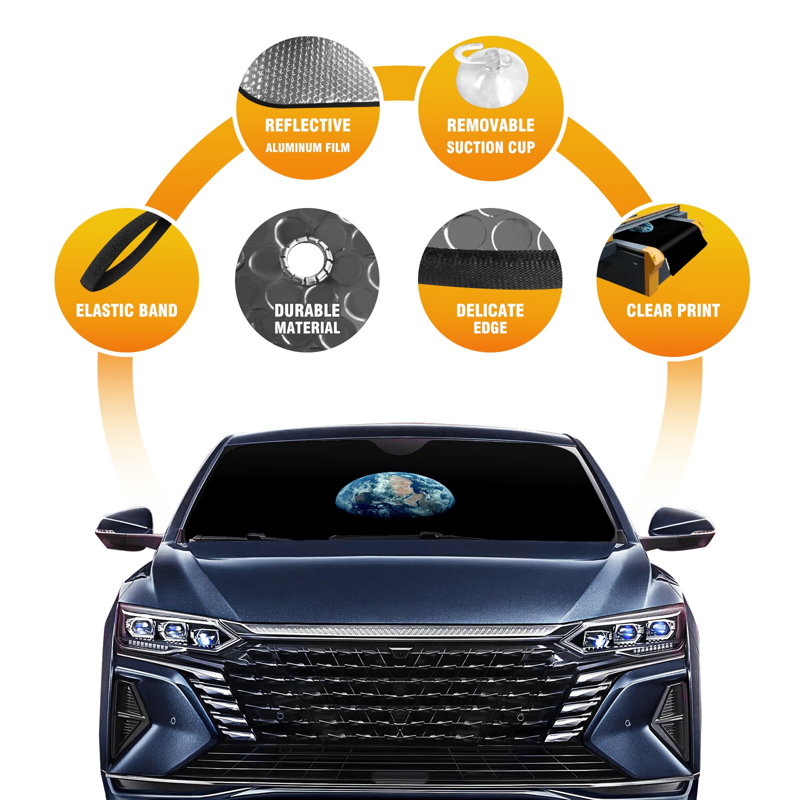 Earth Car Sun Shade UV Protection Foldable Sunshade for Windshield Heat Insulation Portable Sun Shield for Car Interior Protection Automotive Window Protector