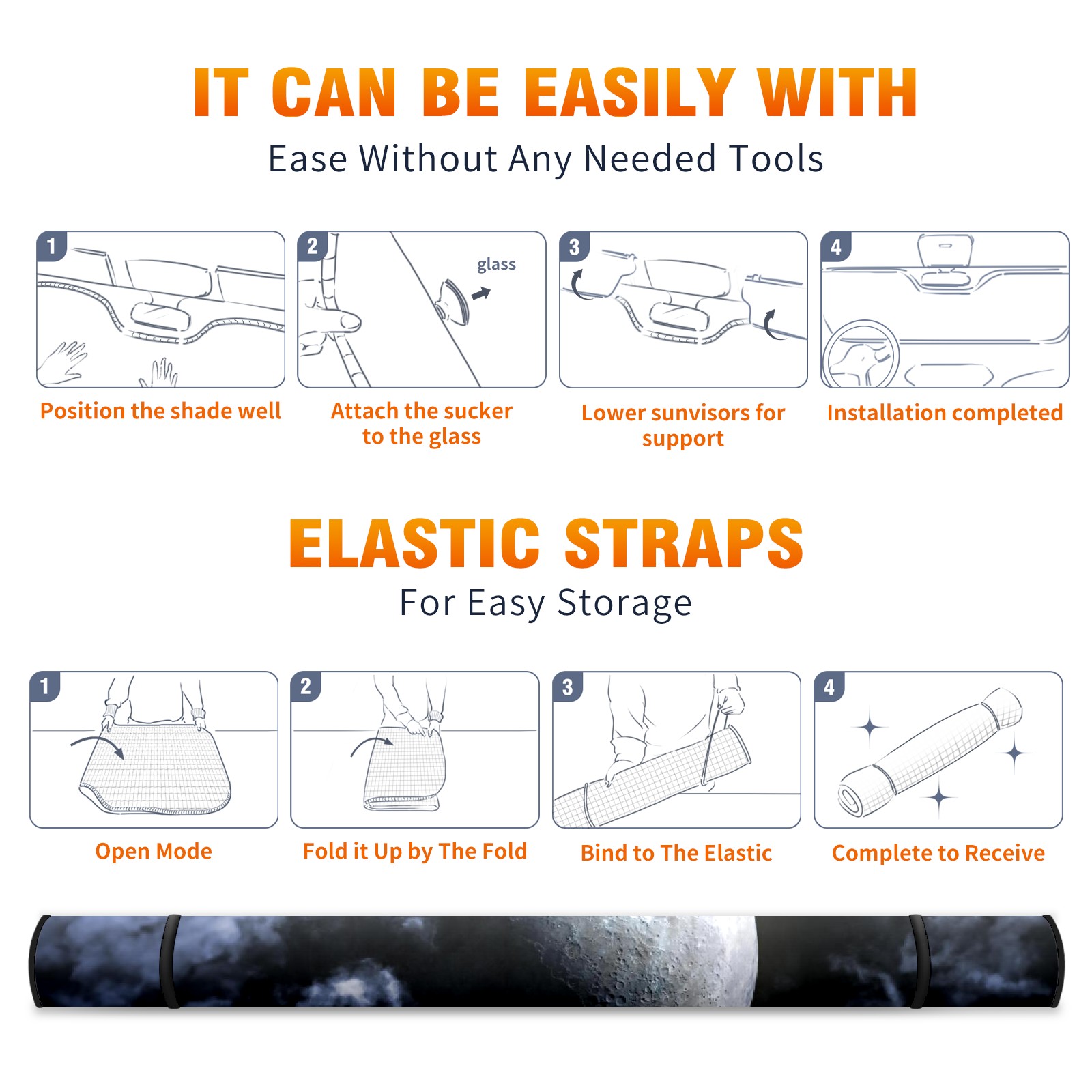 • <p><b>Foldable Premium Car Windshield Sunshade is your great solution to reduce your car’s interior temperature dramatically! This is definitely a must-have item for your summer travel!</b></p><p><b>【Precision Fit, Stylish Protection】</b></p><p>55"x30" (140x76cm) universal size with 3cm flexible margins fits curved windshields of most sedans/SUVs.</p><p><b>【Blocking Uv Rays &amp; Heat Insulation】</b></p><p>Our vehicle sunshade provides effective UV, sun, and summer heat protection, preventing leather fading and plastic cracking to keep your car interior pristine.</p><p><b>【Zero-Mark Installation &amp; Space-Saving】</b></p><p>Equipped with dual scratch-free silicone suction cups + adjustable straps: Medical-grade silicone cups hold firmly yet remove cleanly. Folds to A3 size (42x30cm x &lt;2cm thick), tucks discreetly into glove compartments or door pockets.&nbsp;</p>