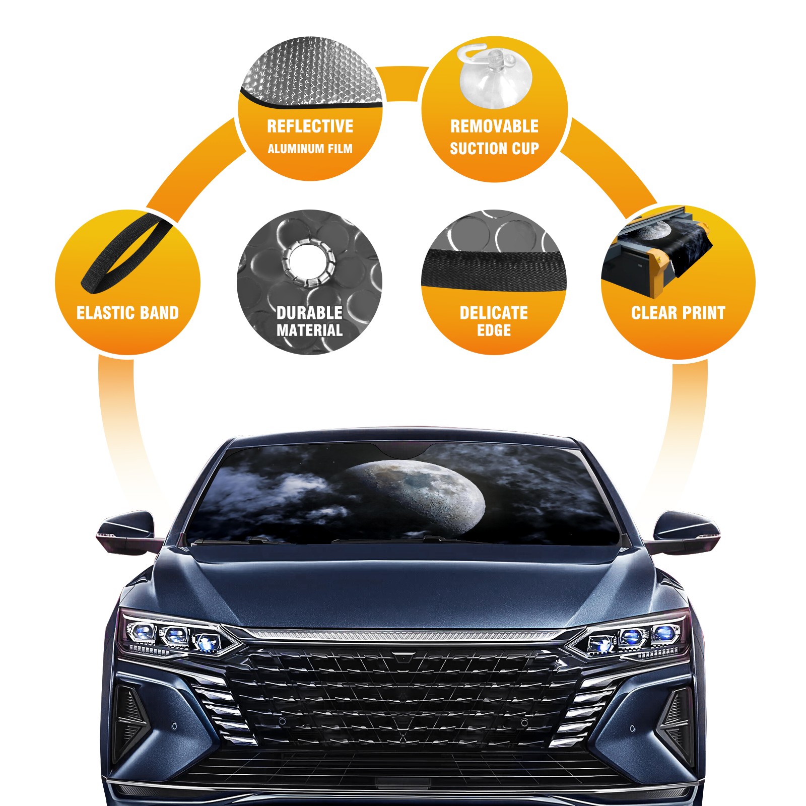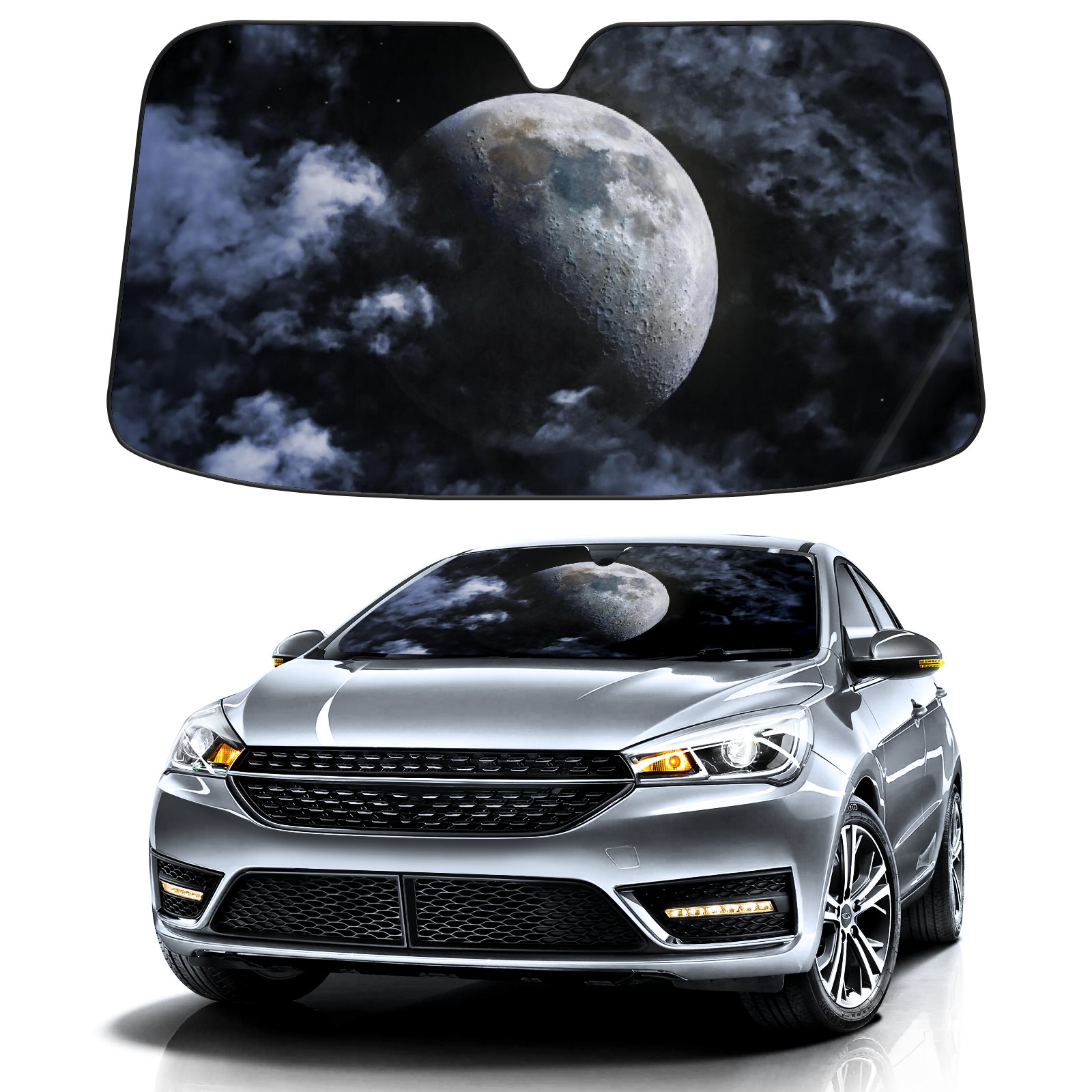 The Moon And Clouds Car Sun Shade UV Protection Foldable Sunshade for Windshield Heat Insulation Portable Sun Shield for Car Interior Protection Automotive Window Protector