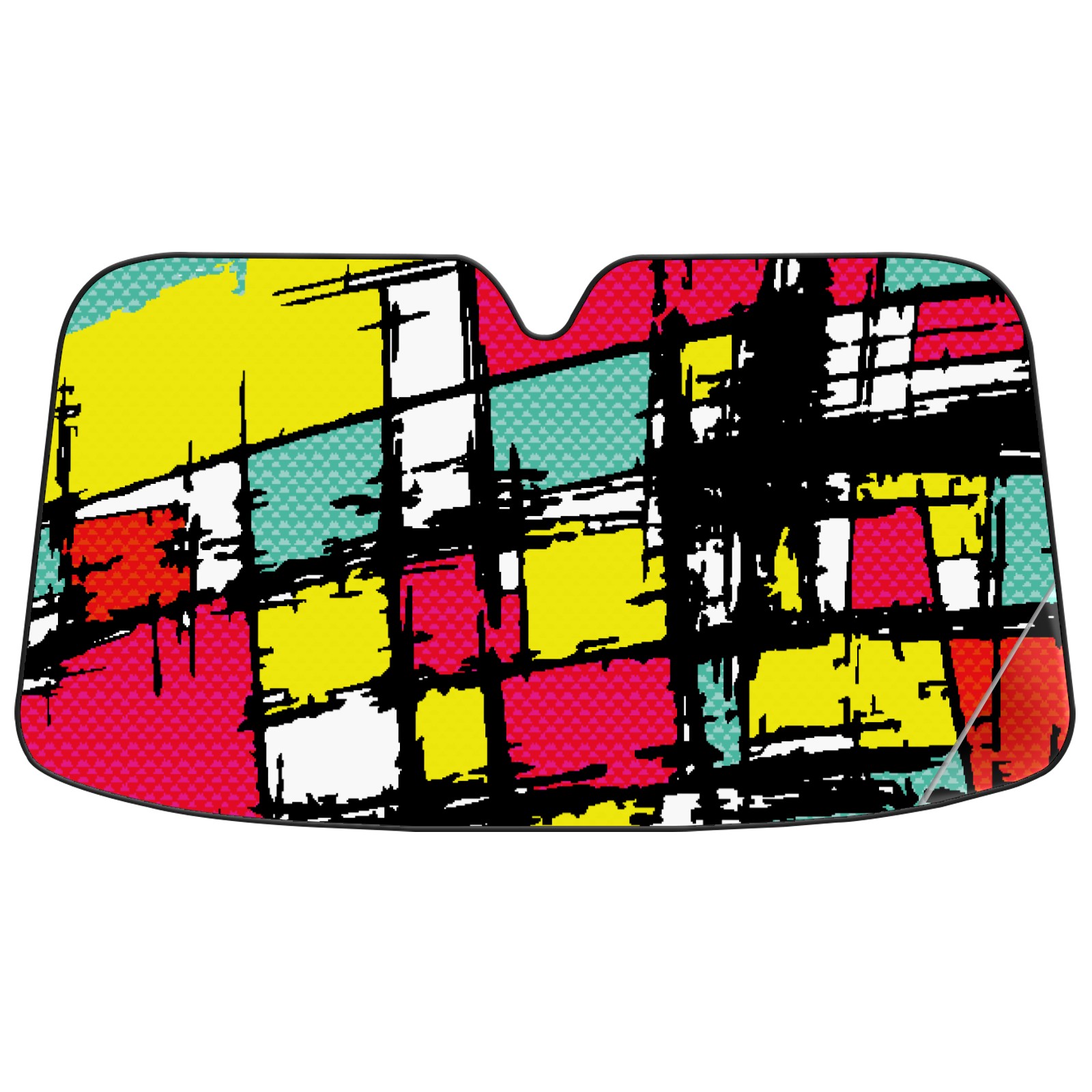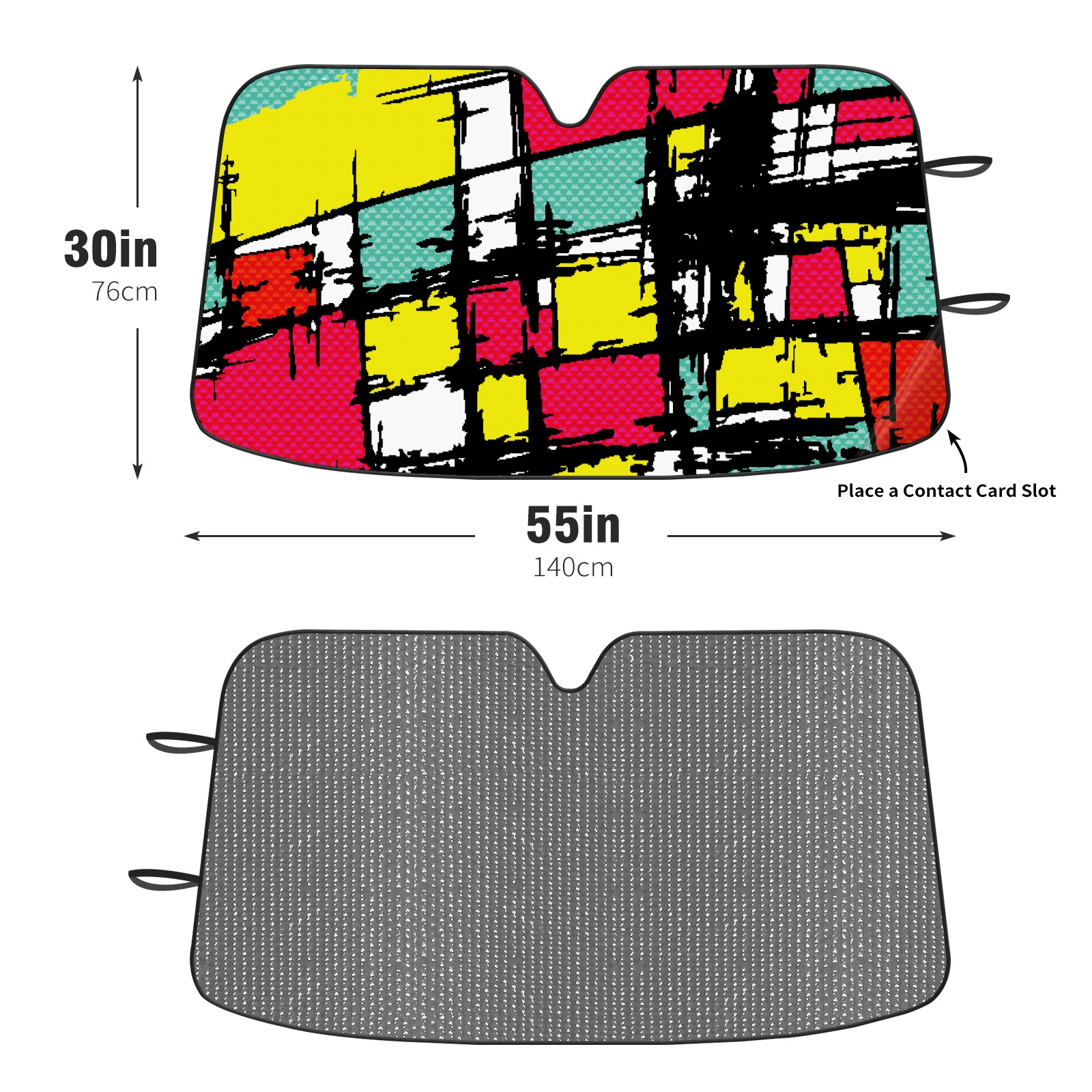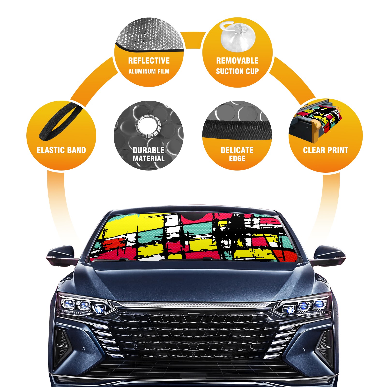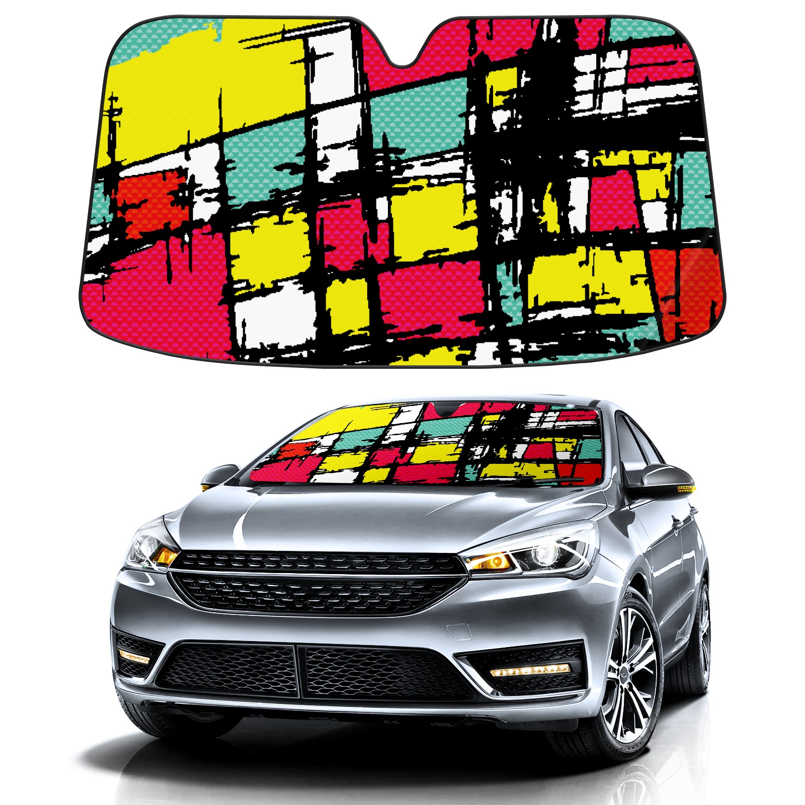 Abstract Doodle Art Painting Car Sun Shade UV Protection Foldable Sunshade for Windshield Heat Insulation Portable Sun Shield for Car Interior Protection Automotive Window Protector