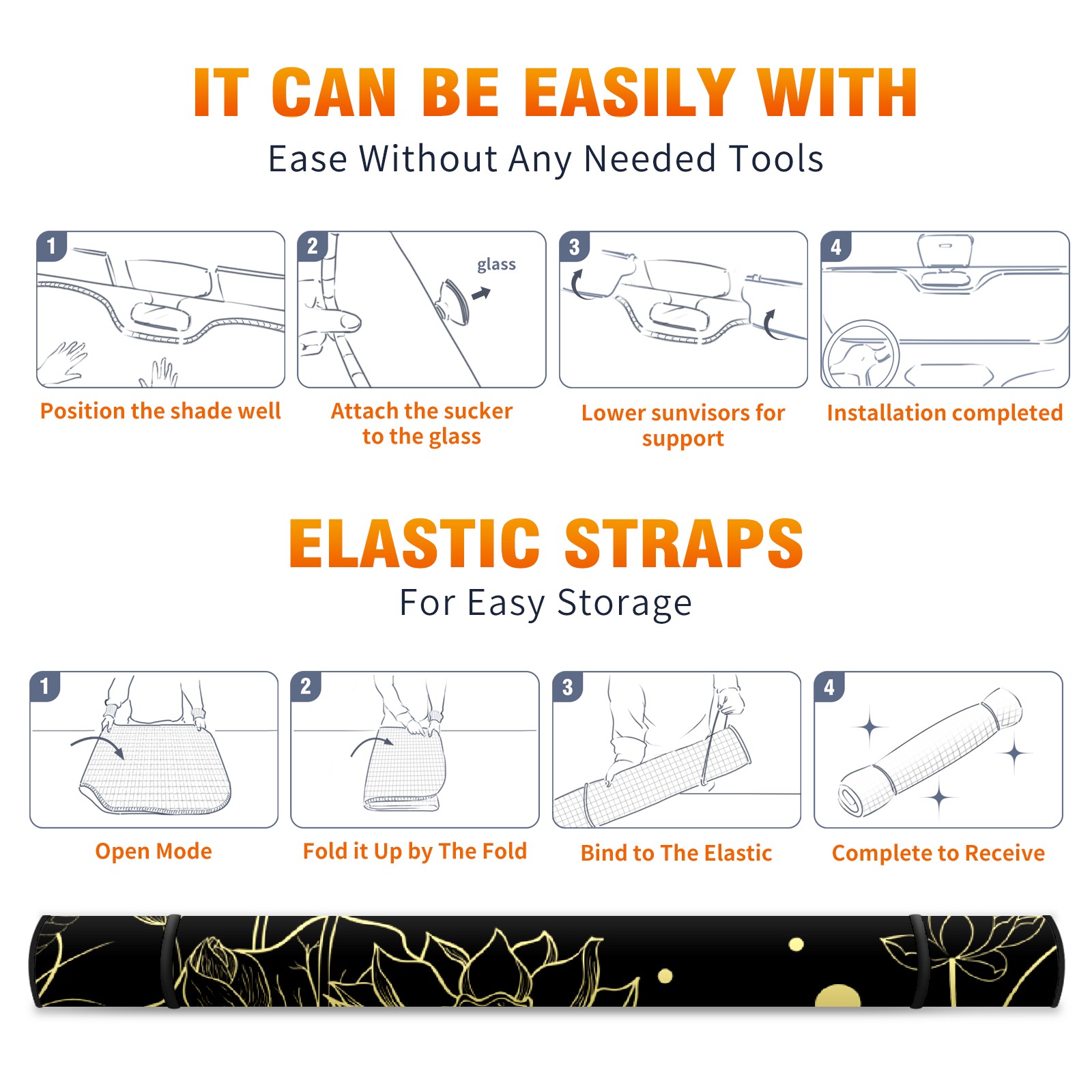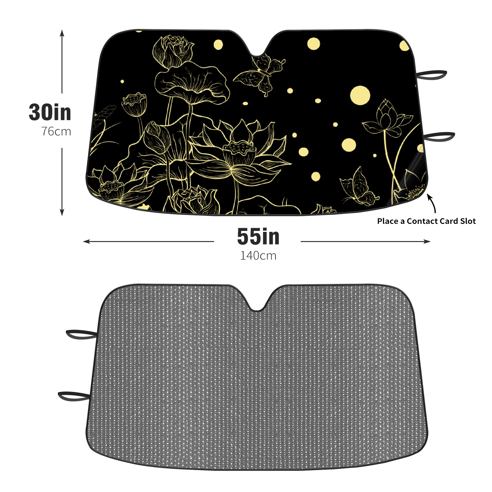 • <p><b>Foldable Premium Car Windshield Sunshade is your great solution to reduce your car’s interior temperature dramatically! This is definitely a must-have item for your summer travel!</b></p><p><b>【Precision Fit, Stylish Protection】</b></p><p>55"x30" (140x76cm) universal size with 3cm flexible margins fits curved windshields of most sedans/SUVs.</p><p><b>【Blocking Uv Rays &amp; Heat Insulation】</b></p><p>Our vehicle sunshade provides effective UV, sun, and summer heat protection, preventing leather fading and plastic cracking to keep your car interior pristine.</p><p><b>【Zero-Mark Installation &amp; Space-Saving】</b></p><p>Equipped with dual scratch-free silicone suction cups + adjustable straps: Medical-grade silicone cups hold firmly yet remove cleanly. Folds to A3 size (42x30cm x &lt;2cm thick), tucks discreetly into glove compartments or door pockets.&nbsp;</p>