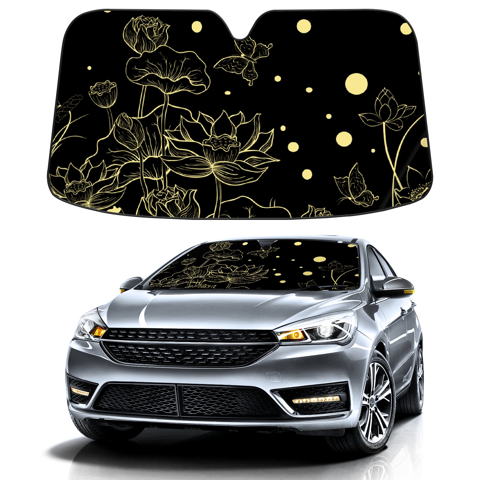Lotus Car Sun Shade UV Protection Foldable Sunshade for Windshield Heat Insulation Portable Sun Shield for Car Interior Protection Automotive Window Protector