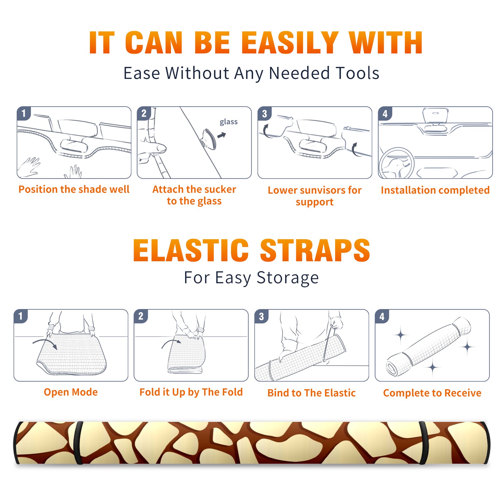 <p><b>Foldable Premium Car Windshield Sunshade is your great solution to reduce your car’s interior temperature dramatically! This is definitely a must-have item for your summer travel!</b></p><p><b>【Precision Fit, Stylish Protection】</b></p><p>55"x30" (140x76cm) universal size with 3cm flexible margins fits curved windshields of most sedans/SUVs.</p><p><b>【Blocking Uv Rays &amp; Heat Insulation】</b></p><p>Our vehicle sunshade provides effective UV, sun, and summer heat protection, preventing leather fading and plastic cracking to keep your car interior pristine.</p><p><b>【Zero-Mark Installation &amp; Space-Saving】</b></p><p>Equipped with dual scratch-free silicone suction cups + adjustable straps: Medical-grade silicone cups hold firmly yet remove cleanly. Folds to A3 size (42x30cm x &lt;2cm thick), tucks discreetly into glove compartments or door pockets.&nbsp;</p>