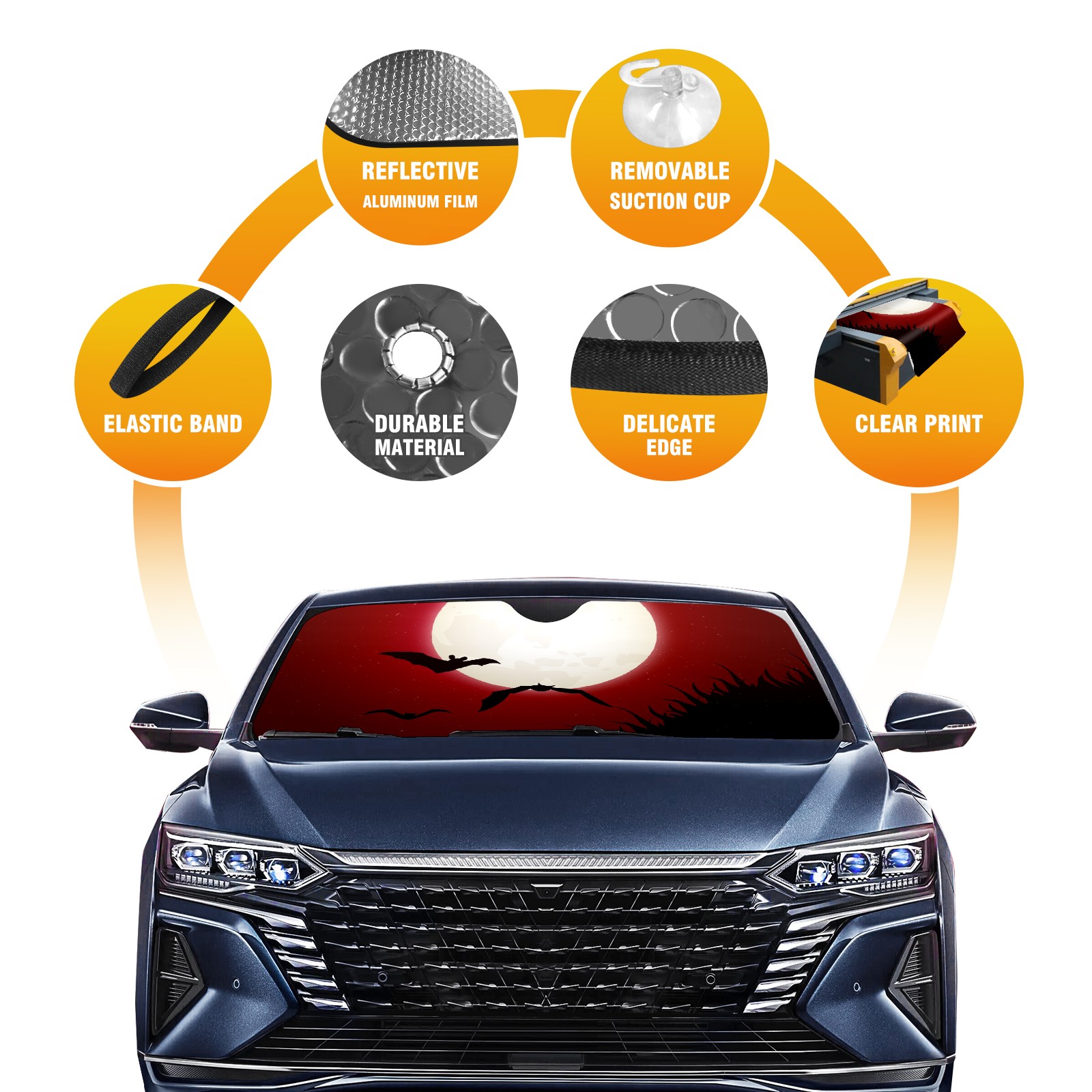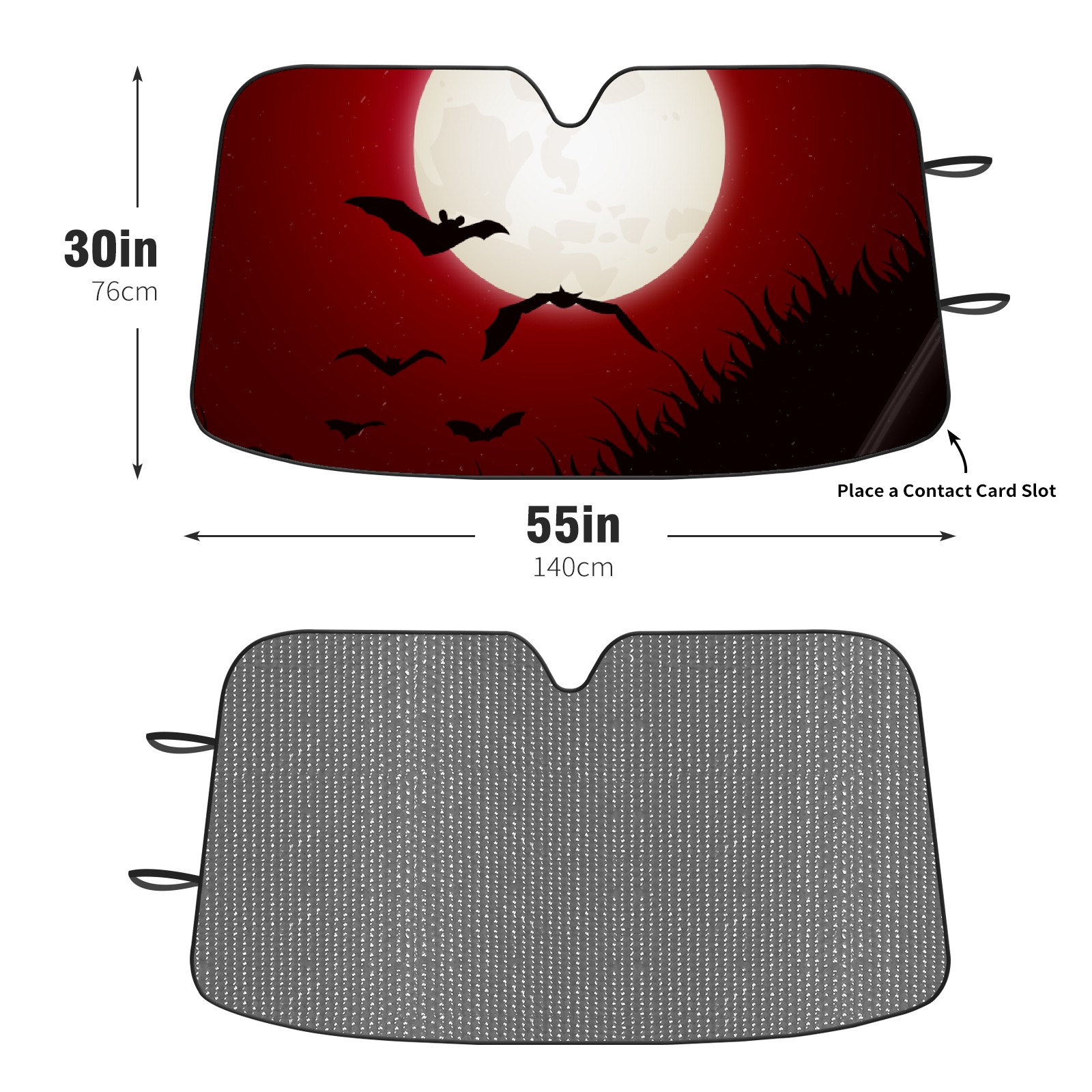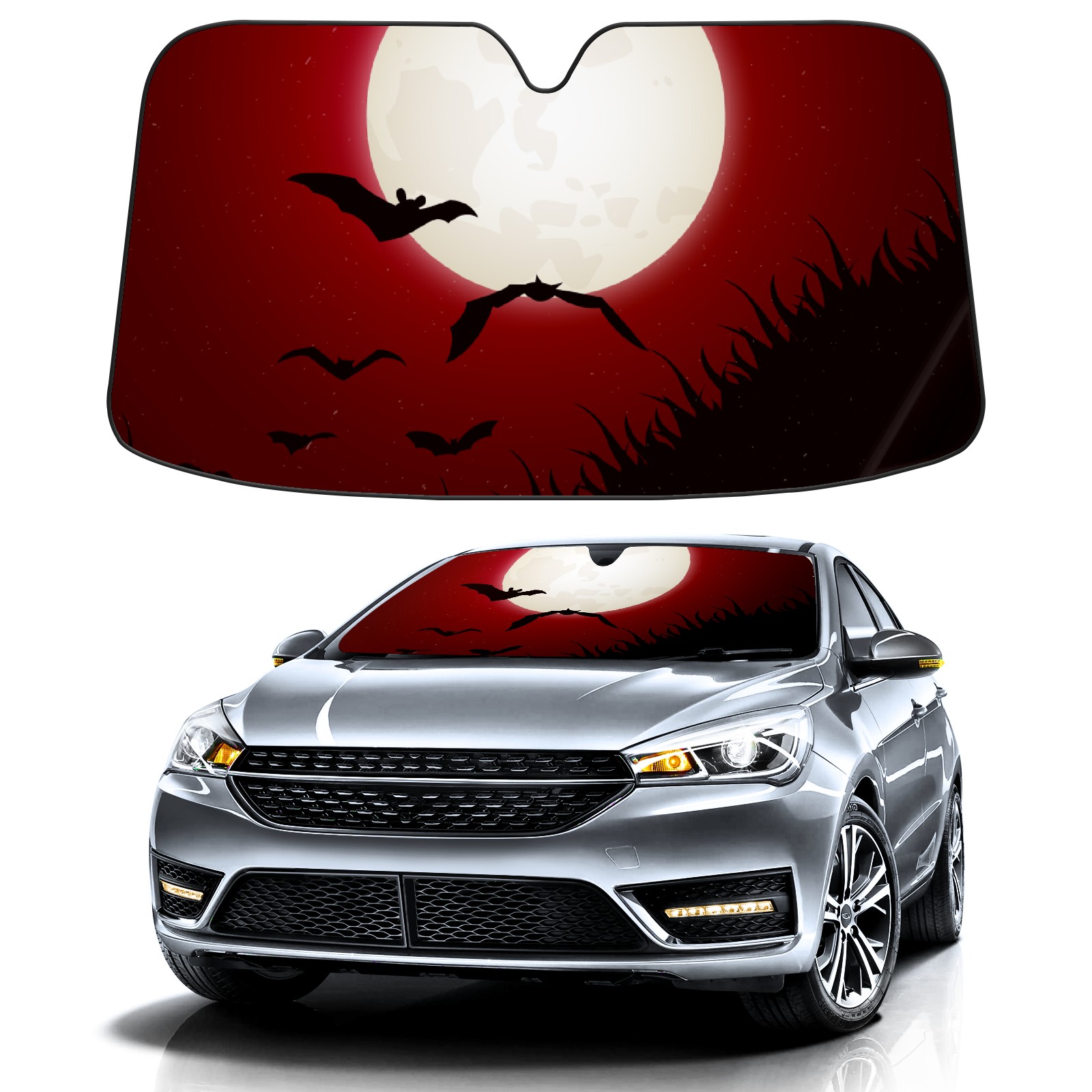 Halloween Moonlight Bat Car Sun Shade UV Protection Foldable Sunshade for Windshield Heat Insulation Portable Sun Shield for Car Interior Protection Automotive Window Protector