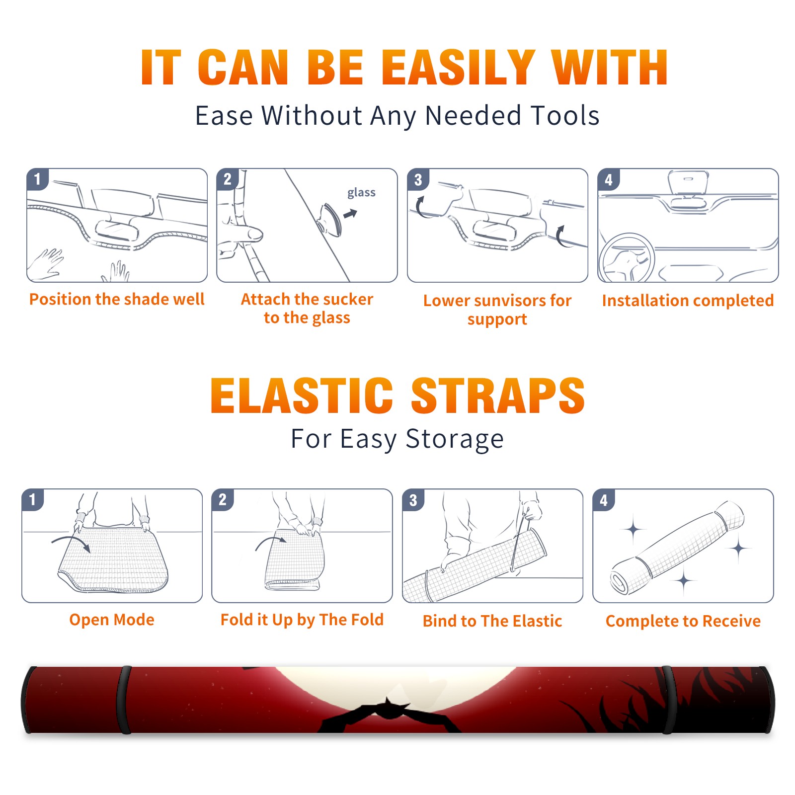 <p><b>Foldable Premium Car Windshield Sunshade is your great solution to reduce your car’s interior temperature dramatically! This is definitely a must-have item for your summer travel!</b></p><p><b>【Precision Fit, Stylish Protection】</b></p><p>55"x30" (140x76cm) universal size with 3cm flexible margins fits curved windshields of most sedans/SUVs.</p><p><b>【Blocking Uv Rays &amp; Heat Insulation】</b></p><p>Our vehicle sunshade provides effective UV, sun, and summer heat protection, preventing leather fading and plastic cracking to keep your car interior pristine.</p><p><b>【Zero-Mark Installation &amp; Space-Saving】</b></p><p>Equipped with dual scratch-free silicone suction cups + adjustable straps: Medical-grade silicone cups hold firmly yet remove cleanly. Folds to A3 size (42x30cm x &lt;2cm thick), tucks discreetly into glove compartments or door pockets.&nbsp;</p>