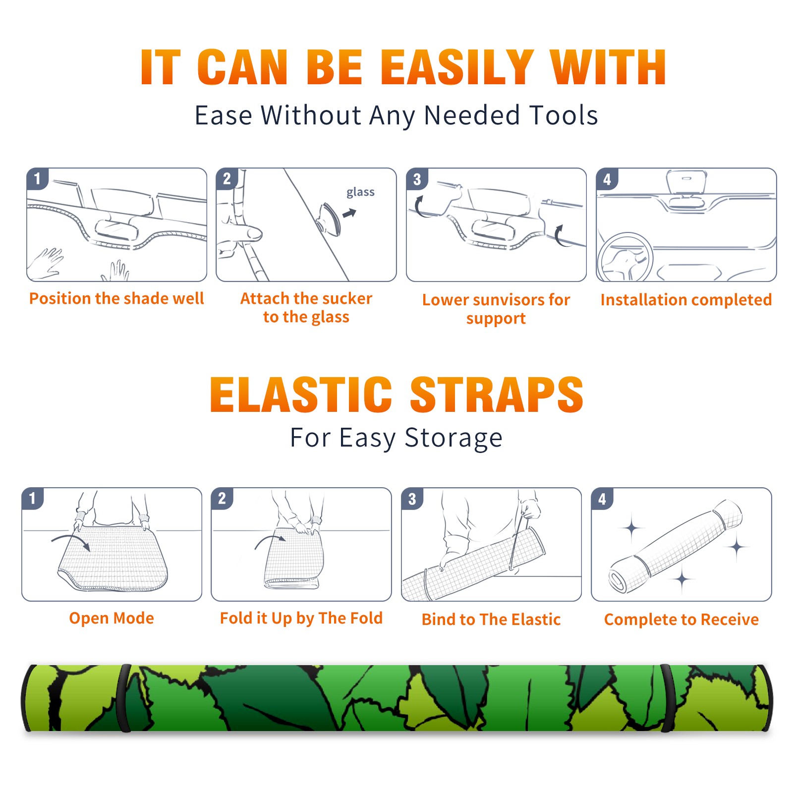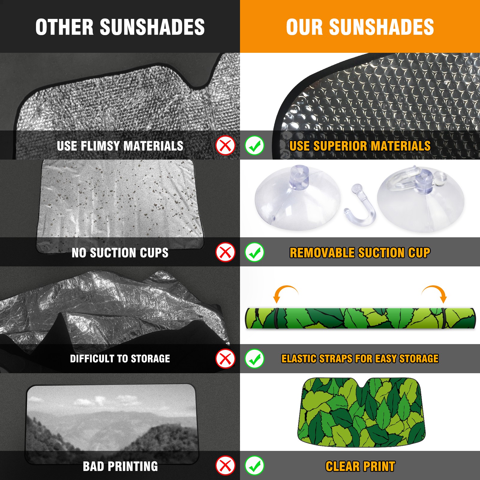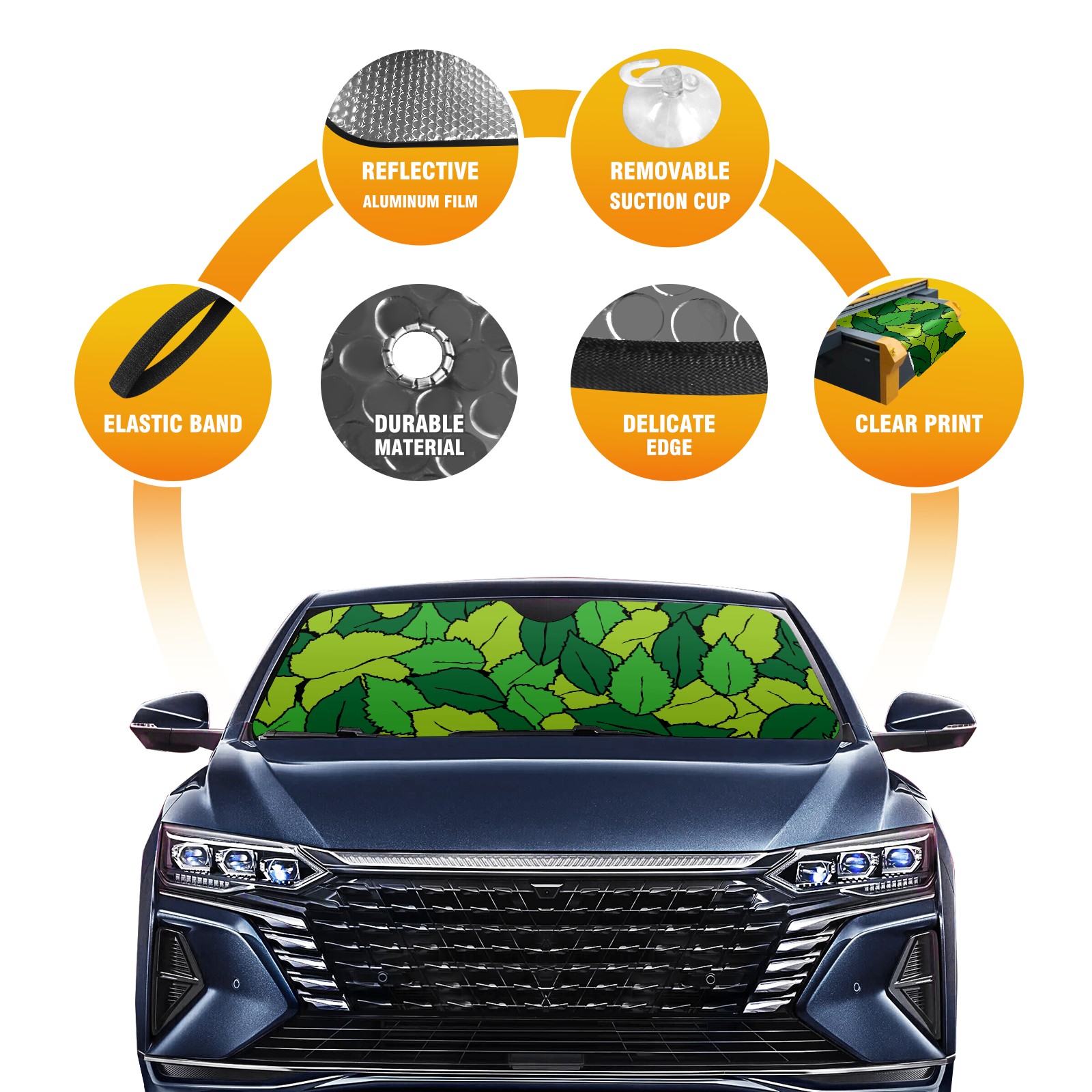• <p><b>Foldable Premium Car Windshield Sunshade is your great solution to reduce your car’s interior temperature dramatically! This is definitely a must-have item for your summer travel!</b></p><p><b>【Precision Fit, Stylish Protection】</b></p><p>55"x30" (140x76cm) universal size with 3cm flexible margins fits curved windshields of most sedans/SUVs.</p><p><b>【Blocking Uv Rays &amp; Heat Insulation】</b></p><p>Our vehicle sunshade provides effective UV, sun, and summer heat protection, preventing leather fading and plastic cracking to keep your car interior pristine.</p><p><b>【Zero-Mark Installation &amp; Space-Saving】</b></p><p>Equipped with dual scratch-free silicone suction cups + adjustable straps: Medical-grade silicone cups hold firmly yet remove cleanly. Folds to A3 size (42x30cm x &lt;2cm thick), tucks discreetly into glove compartments or door pockets.&nbsp;</p>