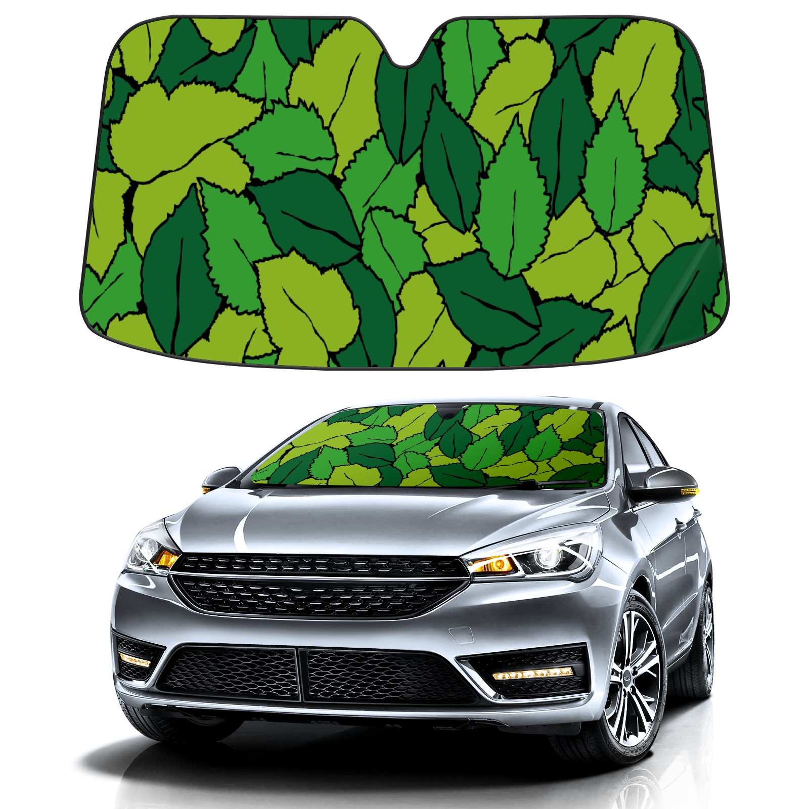 Spring Green Leaves Leaf Car Sun Shade UV Protection Foldable Sunshade for Windshield Heat Insulation Portable Sun Shield for Car Interior Protection Automotive Window Protector