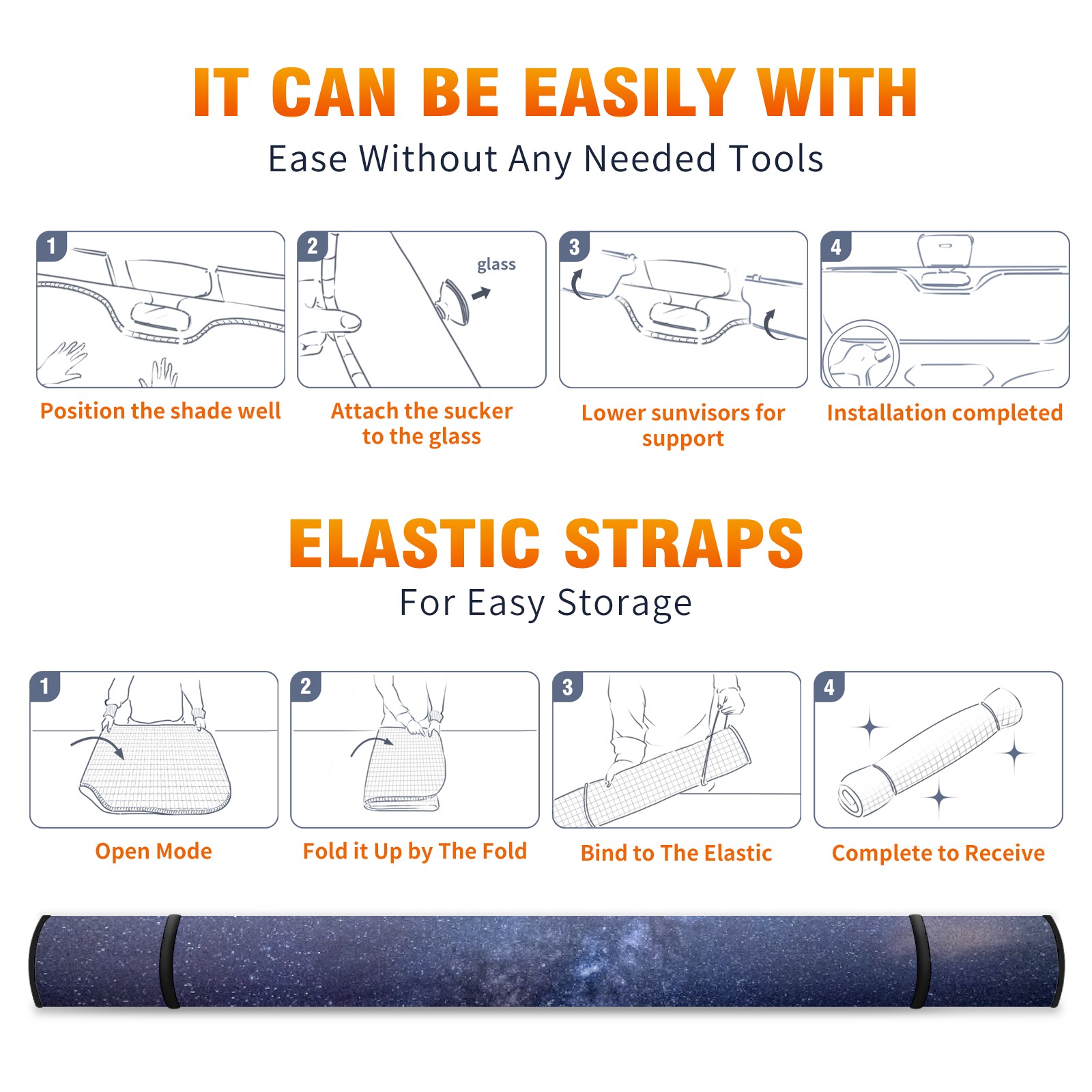 <p><b>Foldable Premium Car Windshield Sunshade is your great solution to reduce your car’s interior temperature dramatically! This is definitely a must-have item for your summer travel!</b></p><p><b>【Precision Fit, Stylish Protection】</b></p><p>55"x30" (140x76cm) universal size with 3cm flexible margins fits curved windshields of most sedans/SUVs.</p><p><b>【Blocking Uv Rays &amp; Heat Insulation】</b></p><p>Our vehicle sunshade provides effective UV, sun, and summer heat protection, preventing leather fading and plastic cracking to keep your car interior pristine.</p><p><b>【Zero-Mark Installation &amp; Space-Saving】</b></p><p>Equipped with dual scratch-free silicone suction cups + adjustable straps: Medical-grade silicone cups hold firmly yet remove cleanly. Folds to A3 size (42x30cm x &lt;2cm thick), tucks discreetly into glove compartments or door pockets.&nbsp;</p>