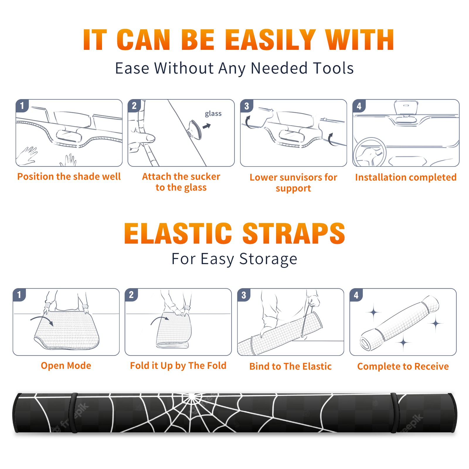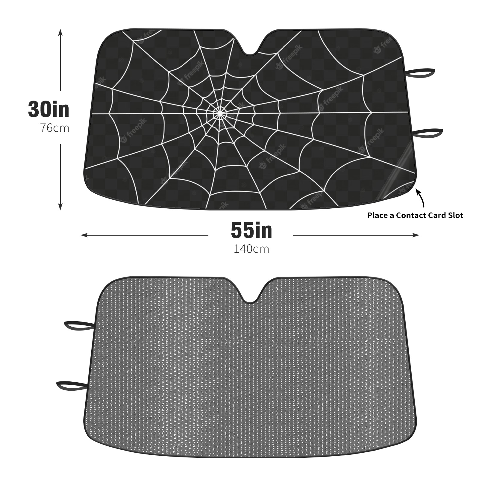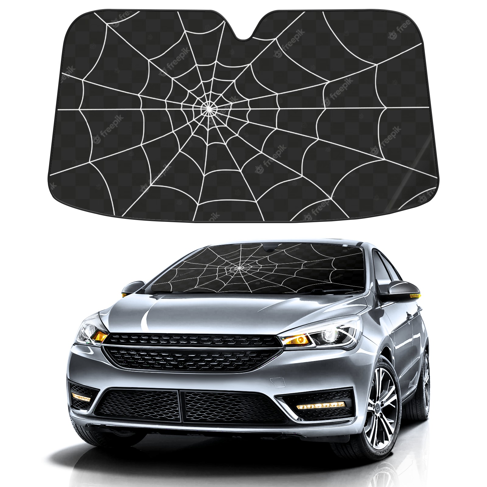 Black Spider Web Car Sun Shade UV Protection Foldable Sunshade for Windshield Heat Insulation Portable Sun Shield for Car Interior Protection Automotive Window Protector