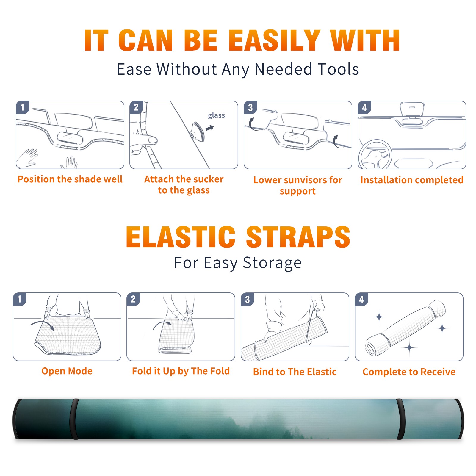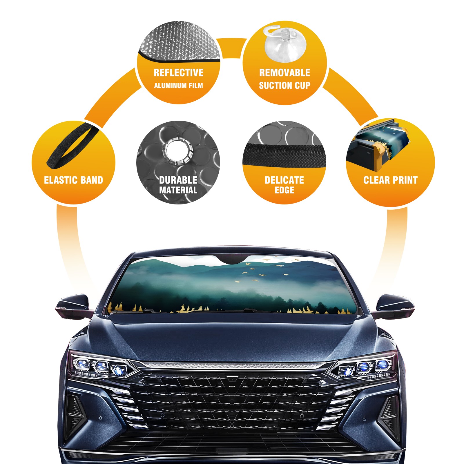 • <p><b>Foldable Premium Car Windshield Sunshade is your great solution to reduce your car’s interior temperature dramatically! This is definitely a must-have item for your summer travel!</b></p><p><b>【Precision Fit, Stylish Protection】</b></p><p>55"x30" (140x76cm) universal size with 3cm flexible margins fits curved windshields of most sedans/SUVs.</p><p><b>【Blocking Uv Rays &amp; Heat Insulation】</b></p><p>Our vehicle sunshade provides effective UV, sun, and summer heat protection, preventing leather fading and plastic cracking to keep your car interior pristine.</p><p><b>【Zero-Mark Installation &amp; Space-Saving】</b></p><p>Equipped with dual scratch-free silicone suction cups + adjustable straps: Medical-grade silicone cups hold firmly yet remove cleanly. Folds to A3 size (42x30cm x &lt;2cm thick), tucks discreetly into glove compartments or door pockets.&nbsp;</p>