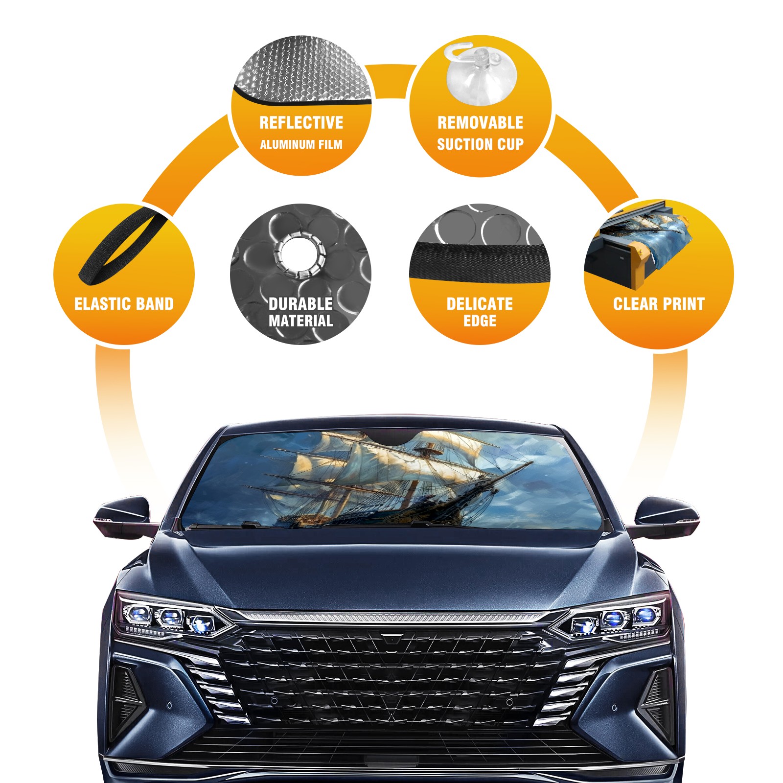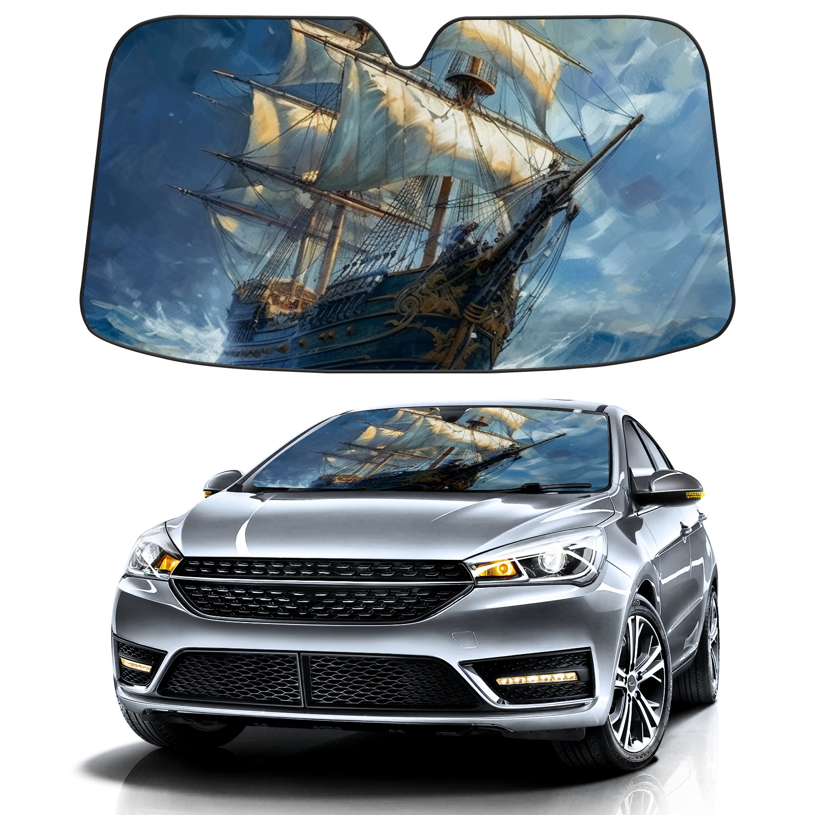 Ships Sailing At Sea Car Sun Shade UV Protection Foldable Sunshade for Windshield Heat Insulation Portable Sun Shield for Car Interior Protection Automotive Window Protector