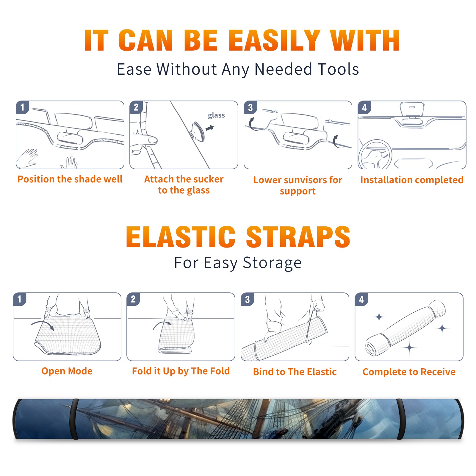 • <p><b>Foldable Premium Car Windshield Sunshade is your great solution to reduce your car’s interior temperature dramatically! This is definitely a must-have item for your summer travel!</b></p><p><b>【Precision Fit, Stylish Protection】</b></p><p>55"x30" (140x76cm) universal size with 3cm flexible margins fits curved windshields of most sedans/SUVs.</p><p><b>【Blocking Uv Rays &amp; Heat Insulation】</b></p><p>Our vehicle sunshade provides effective UV, sun, and summer heat protection, preventing leather fading and plastic cracking to keep your car interior pristine.</p><p><b>【Zero-Mark Installation &amp; Space-Saving】</b></p><p>Equipped with dual scratch-free silicone suction cups + adjustable straps: Medical-grade silicone cups hold firmly yet remove cleanly. Folds to A3 size (42x30cm x &lt;2cm thick), tucks discreetly into glove compartments or door pockets.&nbsp;</p>