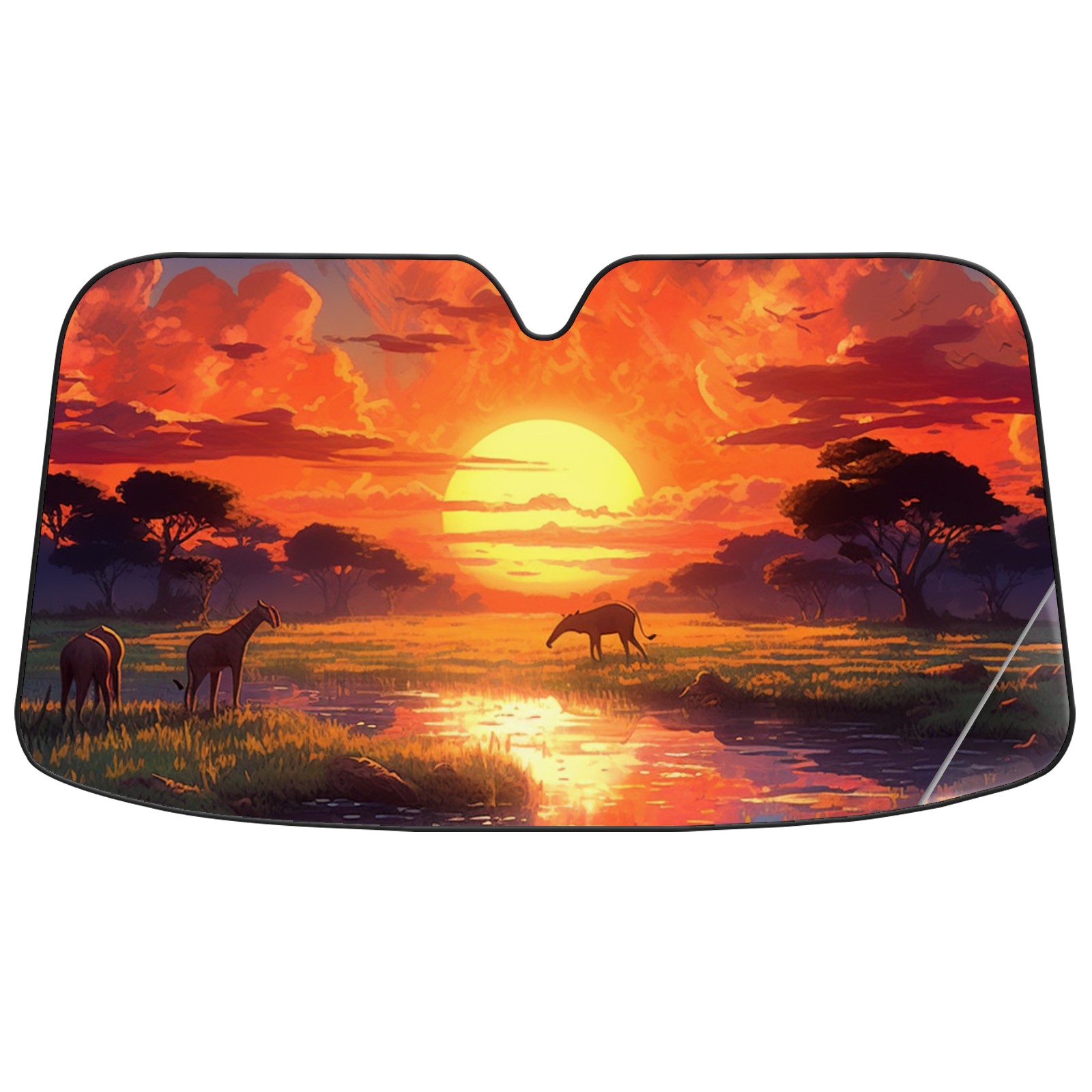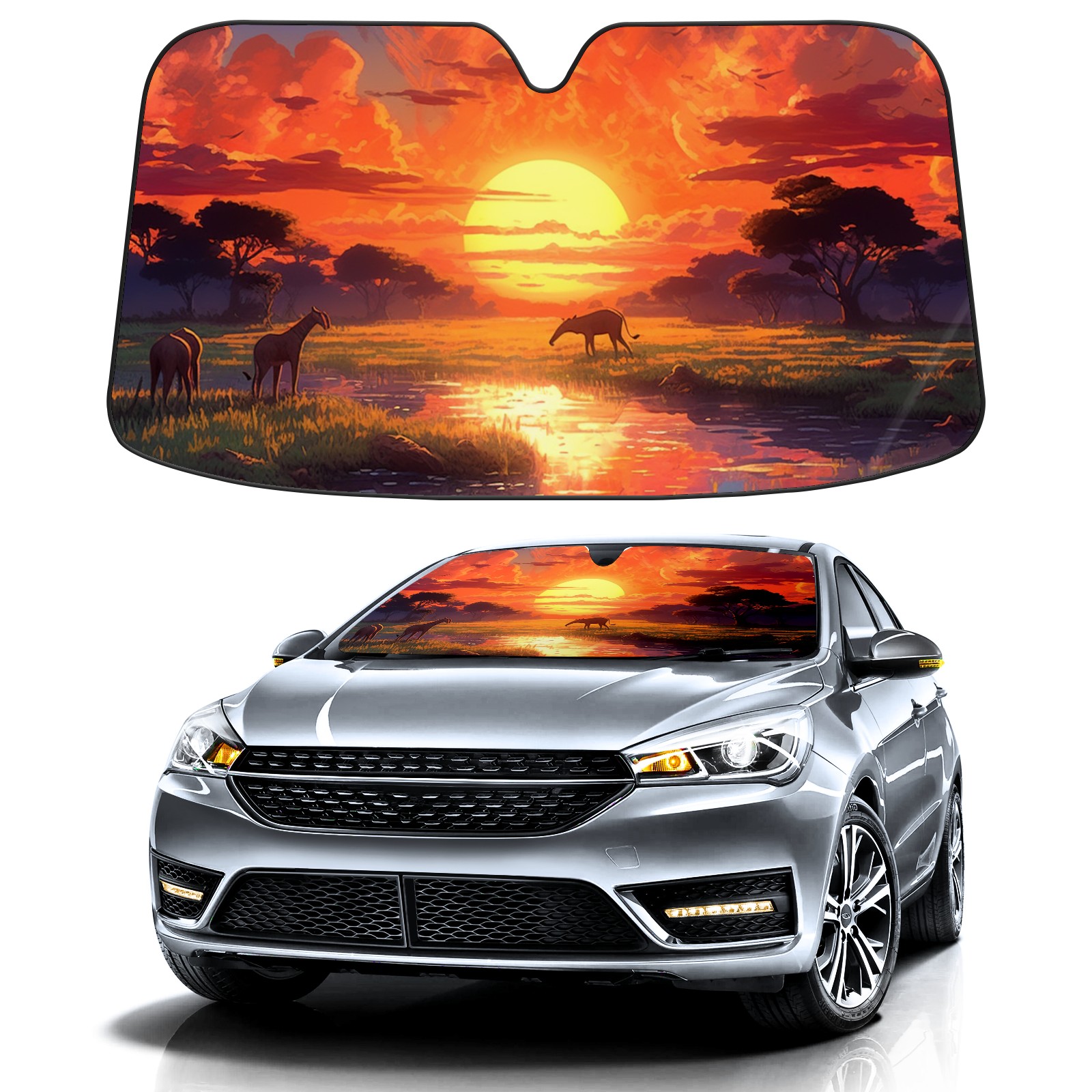 The Grassland Under The Sunset Car Sun Shade UV Protection Foldable Sunshade for Windshield Heat Insulation Portable Sun Shield for Car Interior Protection Automotive Window Protector