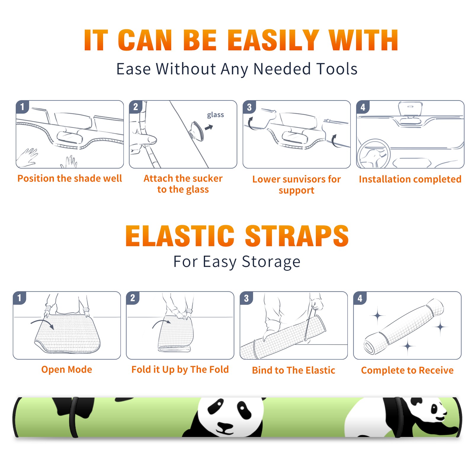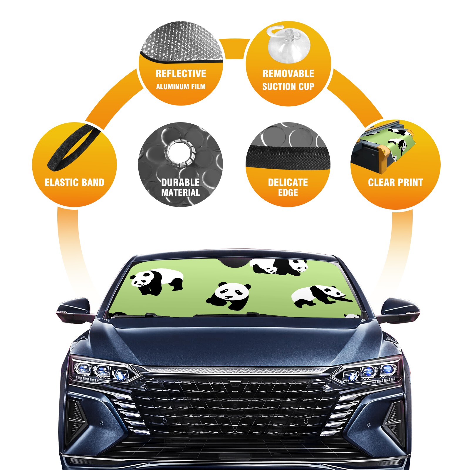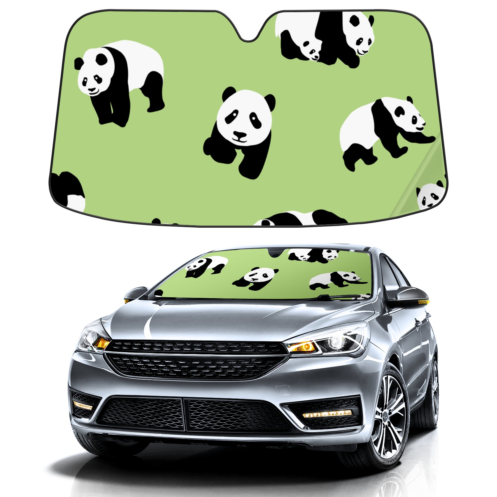 Cartoon Pandas Car Sun Shade UV Protection Foldable Sunshade for Windshield Heat Insulation Portable Sun Shield for Car Interior Protection Automotive Window Protector