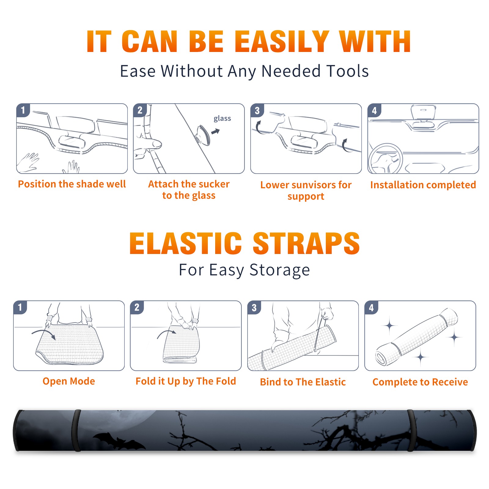 <p><b>Foldable Premium Car Windshield Sunshade is your great solution to reduce your car’s interior temperature dramatically! This is definitely a must-have item for your summer travel!</b></p><p><b>【Precision Fit, Stylish Protection】</b></p><p>55"x30" (140x76cm) universal size with 3cm flexible margins fits curved windshields of most sedans/SUVs.</p><p><b>【Blocking Uv Rays &amp; Heat Insulation】</b></p><p>Our vehicle sunshade provides effective UV, sun, and summer heat protection, preventing leather fading and plastic cracking to keep your car interior pristine.</p><p><b>【Zero-Mark Installation &amp; Space-Saving】</b></p><p>Equipped with dual scratch-free silicone suction cups + adjustable straps: Medical-grade silicone cups hold firmly yet remove cleanly. Folds to A3 size (42x30cm x &lt;2cm thick), tucks discreetly into glove compartments or door pockets.&nbsp;</p>