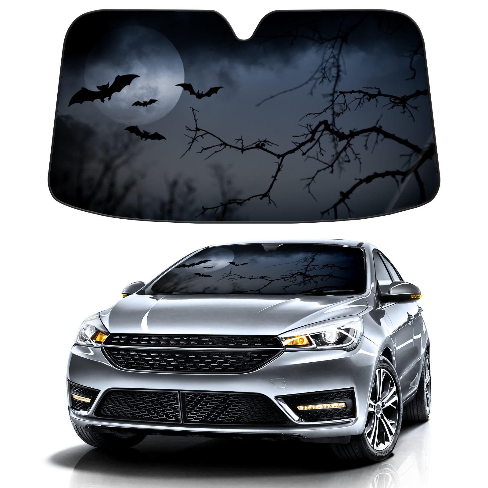 Halloween Trees Bats Car Sun Shade UV Protection Foldable Sunshade for Windshield Heat Insulation Portable Sun Shield for Car Interior Protection Automotive Window Protector