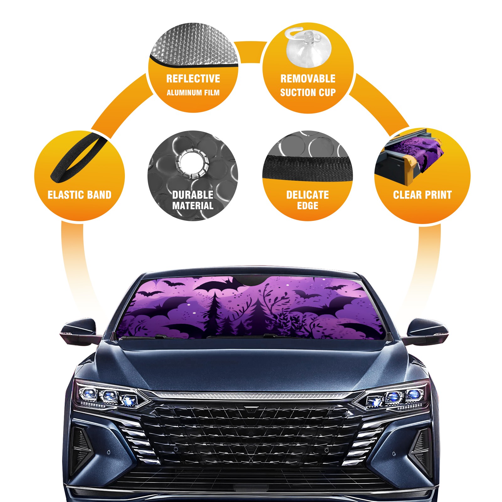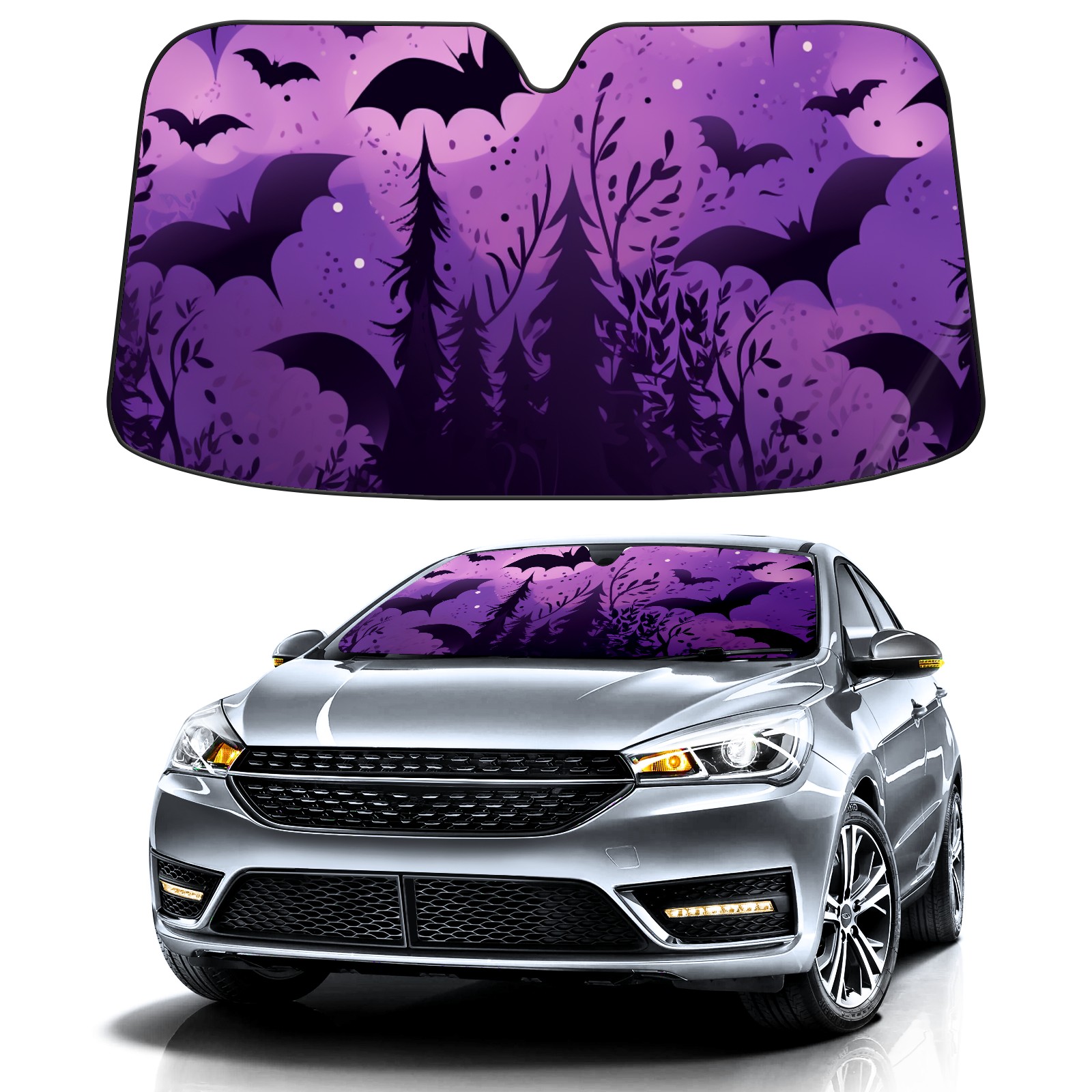 Purple Castle Bat Car Sun Shade UV Protection Foldable Sunshade for Windshield Heat Insulation Portable Sun Shield for Car Interior Protection Automotive Window Protector