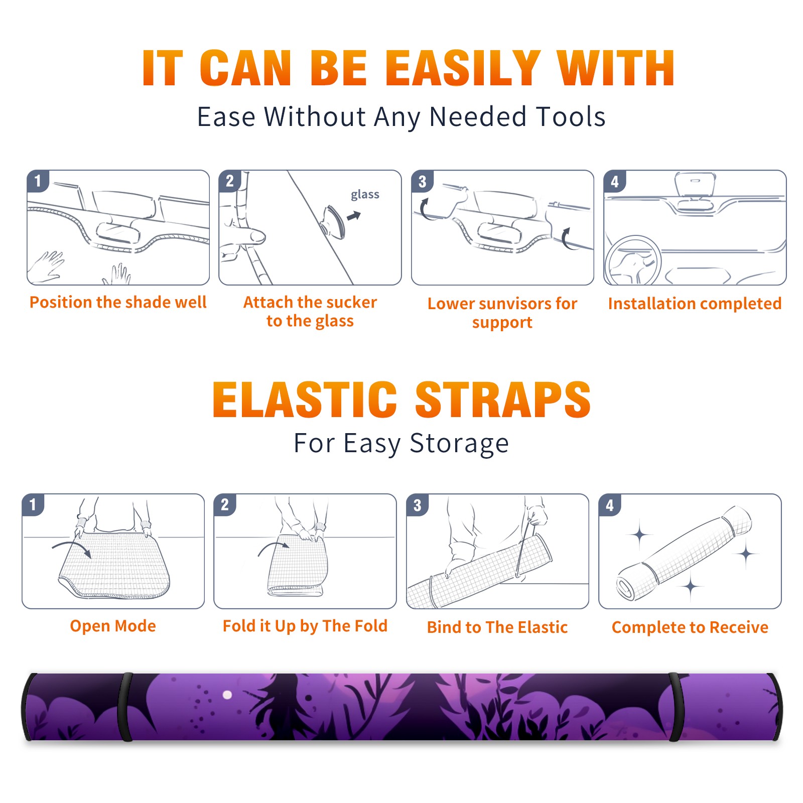 • <p><b>Foldable Premium Car Windshield Sunshade is your great solution to reduce your car’s interior temperature dramatically! This is definitely a must-have item for your summer travel!</b></p><p><b>【Precision Fit, Stylish Protection】</b></p><p>55"x30" (140x76cm) universal size with 3cm flexible margins fits curved windshields of most sedans/SUVs.</p><p><b>【Blocking Uv Rays &amp; Heat Insulation】</b></p><p>Our vehicle sunshade provides effective UV, sun, and summer heat protection, preventing leather fading and plastic cracking to keep your car interior pristine.</p><p><b>【Zero-Mark Installation &amp; Space-Saving】</b></p><p>Equipped with dual scratch-free silicone suction cups + adjustable straps: Medical-grade silicone cups hold firmly yet remove cleanly. Folds to A3 size (42x30cm x &lt;2cm thick), tucks discreetly into glove compartments or door pockets.&nbsp;</p>