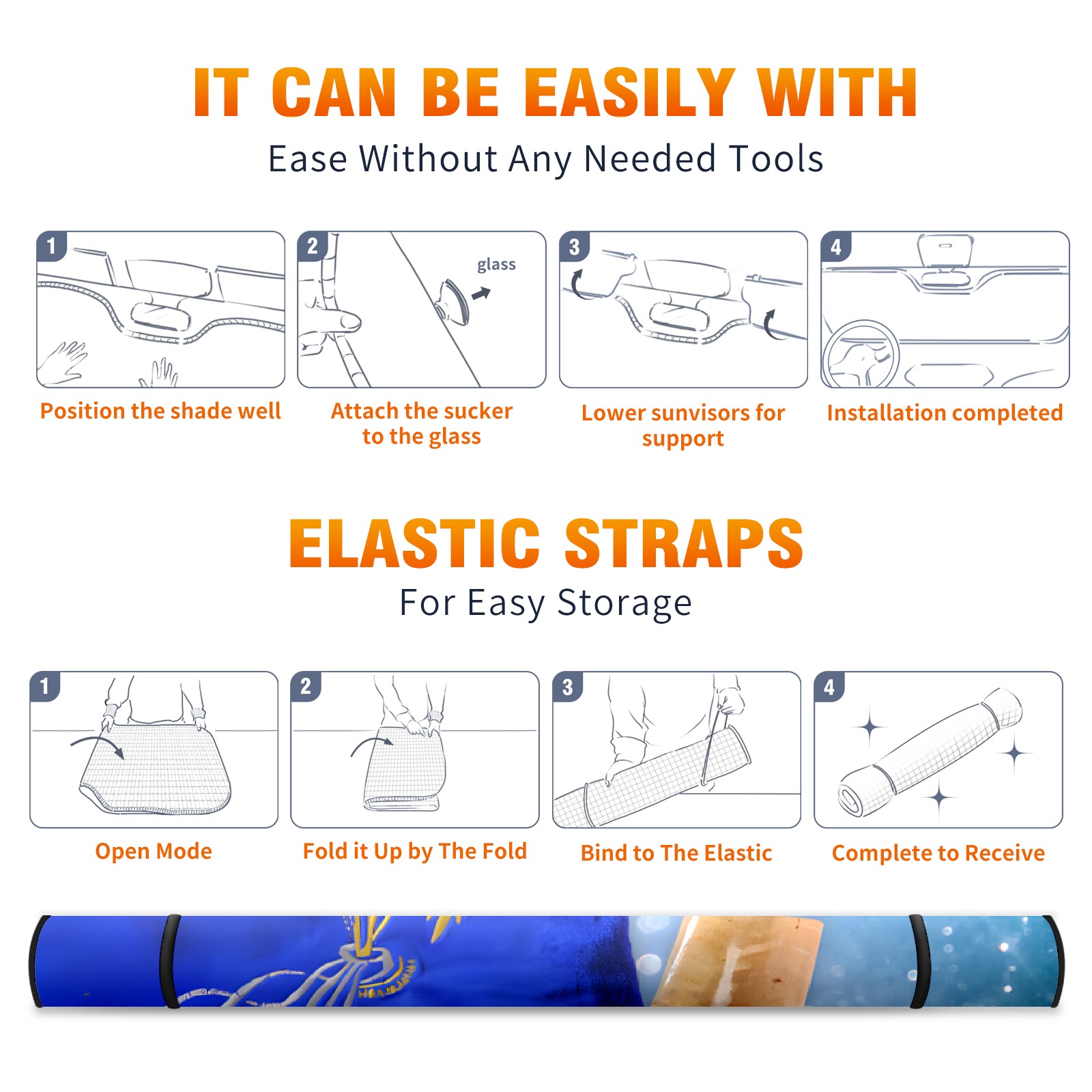 <p><b>Foldable Premium Car Windshield Sunshade is your great solution to reduce your car’s interior temperature dramatically! This is definitely a must-have item for your summer travel!</b></p><p><b>【Precision Fit, Stylish Protection】</b></p><p>55"x30" (140x76cm) universal size with 3cm flexible margins fits curved windshields of most sedans/SUVs.</p><p><b>【Blocking Uv Rays &amp; Heat Insulation】</b></p><p>Our vehicle sunshade provides effective UV, sun, and summer heat protection, preventing leather fading and plastic cracking to keep your car interior pristine.</p><p><b>【Zero-Mark Installation &amp; Space-Saving】</b></p><p>Equipped with dual scratch-free silicone suction cups + adjustable straps: Medical-grade silicone cups hold firmly yet remove cleanly. Folds to A3 size (42x30cm x &lt;2cm thick), tucks discreetly into glove compartments or door pockets.&nbsp;</p>