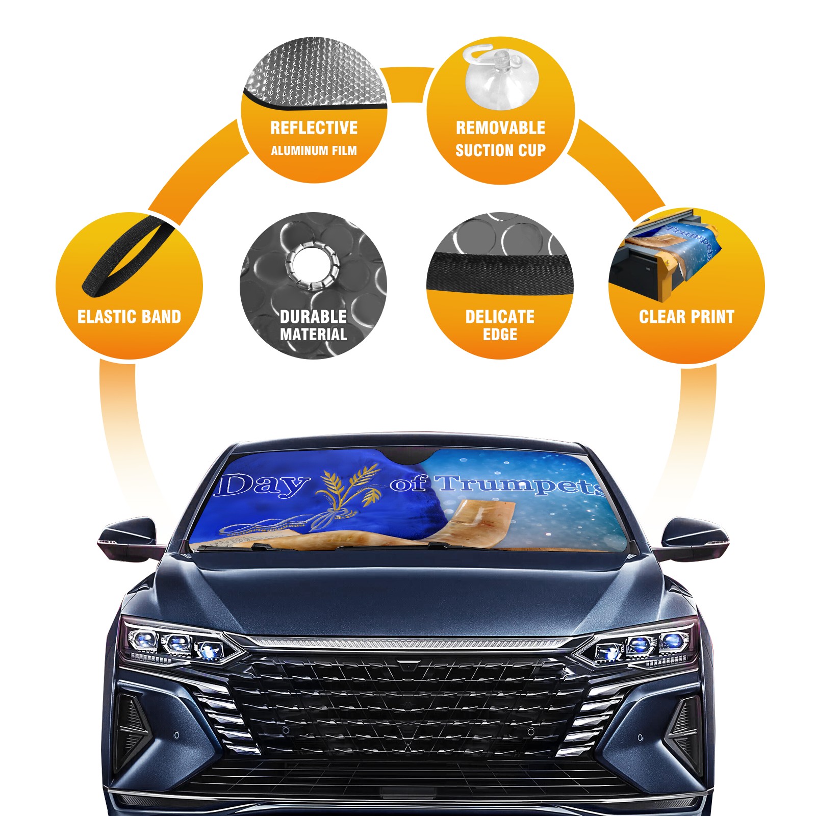 Yom Teruah Car Sun Shade UV Protection Foldable Sunshade for Windshield Heat Insulation Portable Sun Shield for Car Interior Protection Automotive Window Protector