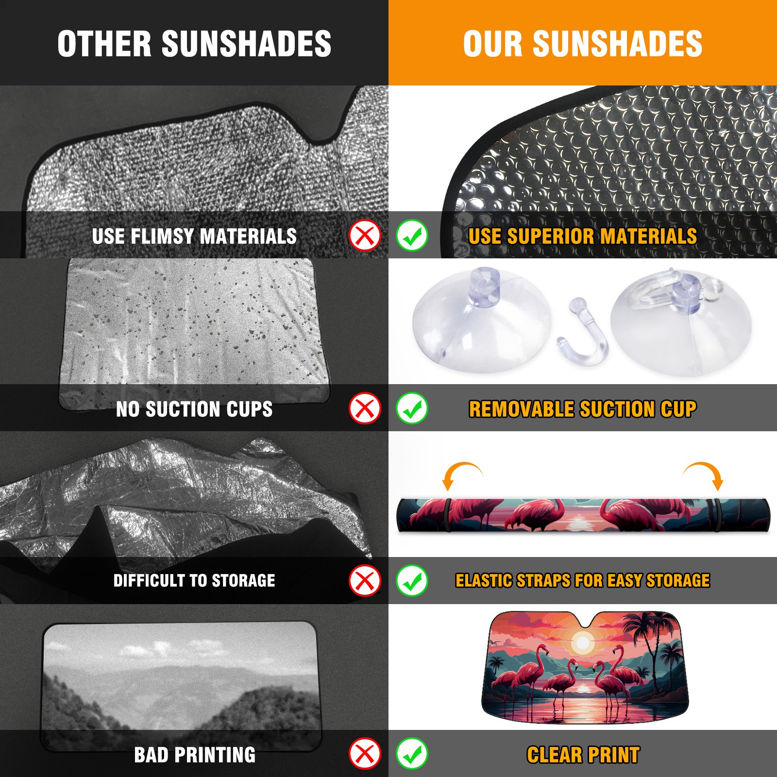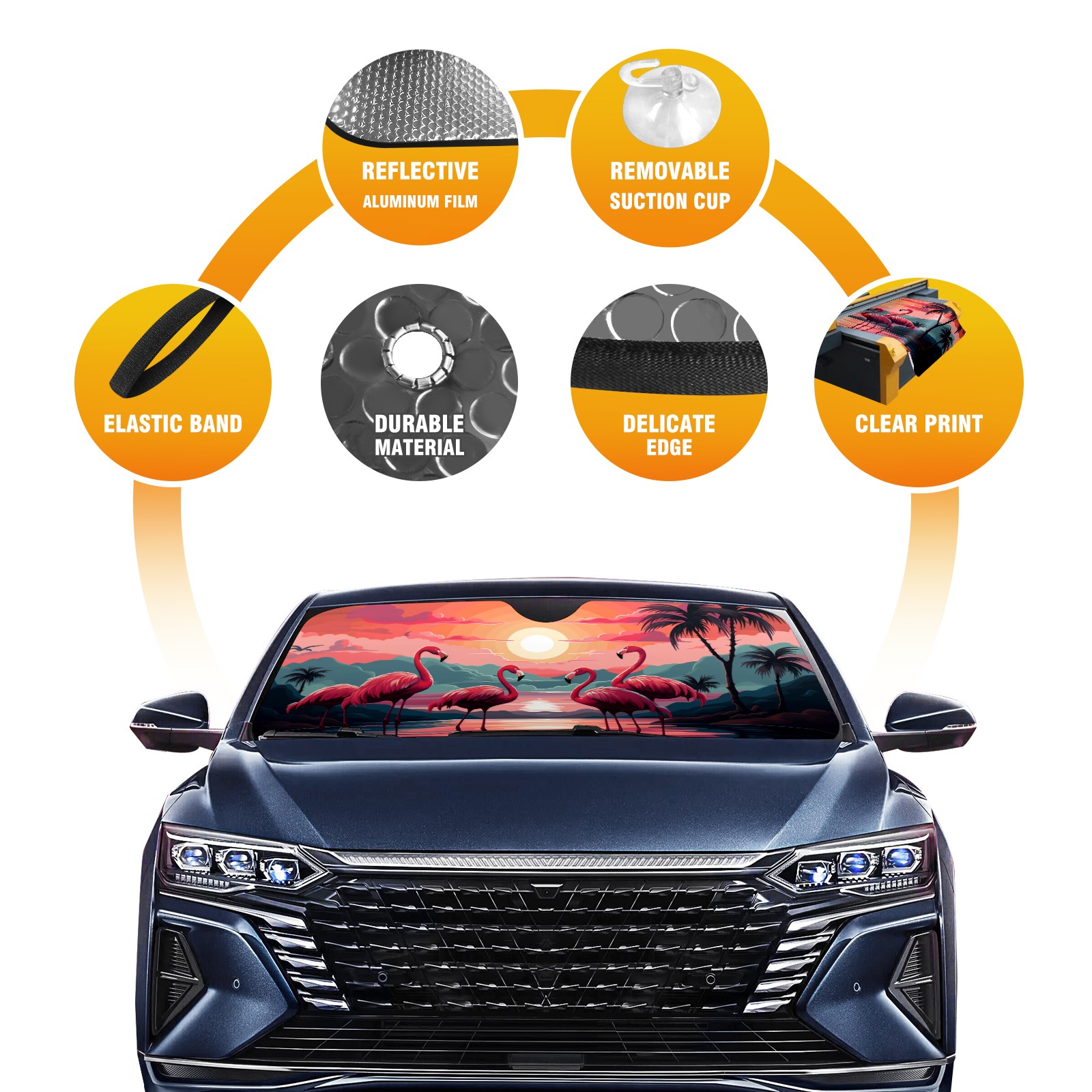 <p><b>Foldable Premium Car Windshield Sunshade is your great solution to reduce your car’s interior temperature dramatically! This is definitely a must-have item for your summer travel!</b></p><p><b>【Precision Fit, Stylish Protection】</b></p><p>55"x30" (140x76cm) universal size with 3cm flexible margins fits curved windshields of most sedans/SUVs.</p><p><b>【Blocking Uv Rays & Heat Insulation】</b></p><p>Our vehicle sunshade provides effective UV, sun, and summer heat protection, preventing leather fading and plastic cracking to keep your car interior pristine.</p><p><b>【Zero-Mark Installation & Space-Saving】</b></p><p>Equipped with dual scratch-free silicone suction cups + adjustable straps: Medical-grade silicone cups hold firmly yet remove cleanly. Folds to A3 size (42x30cm x <2cm thick), tucks discreetly into glove compartments or door pockets. </p>