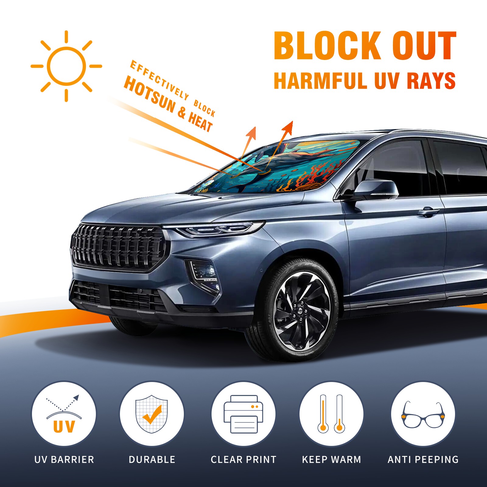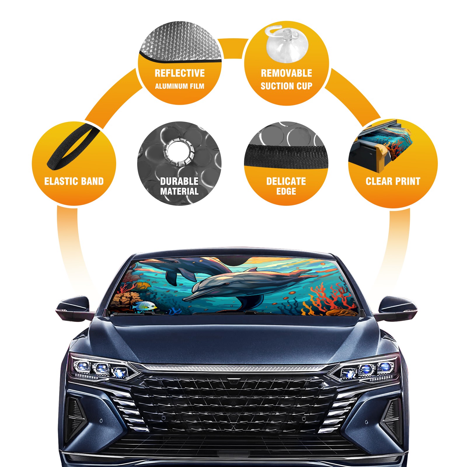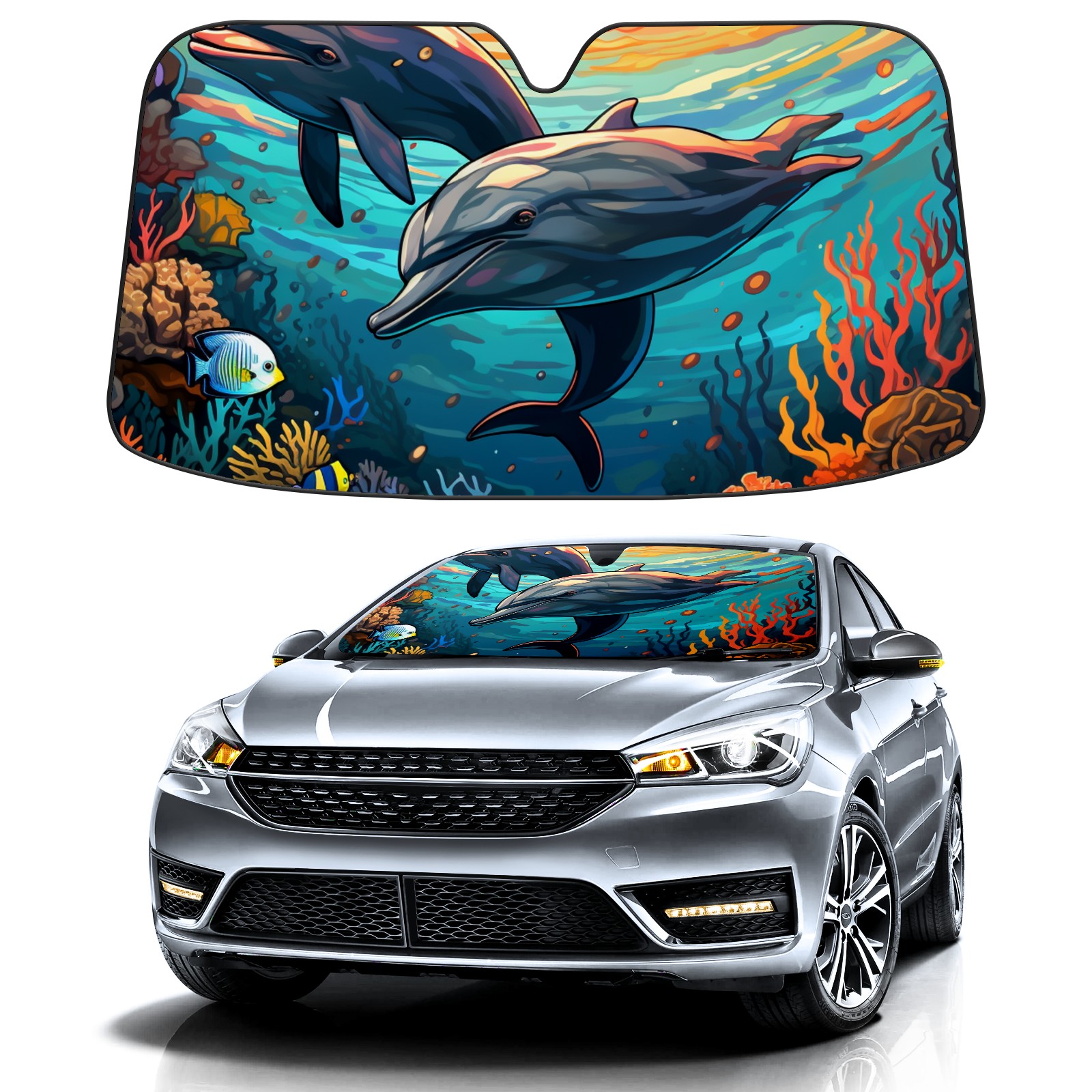 Dolphins Car Sun Shade UV Protection Foldable Sunshade for Windshield Heat Insulation Portable Sun Shield for Car Interior Protection Automotive Window Protector