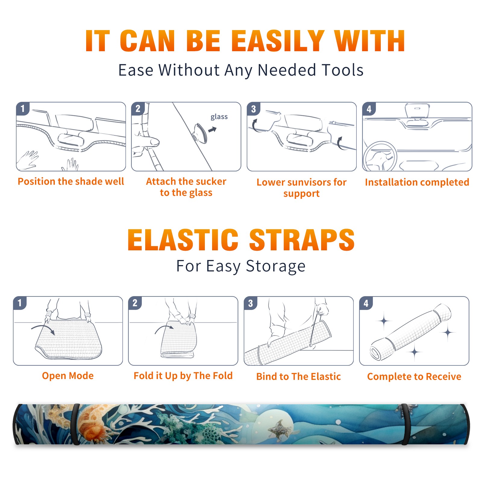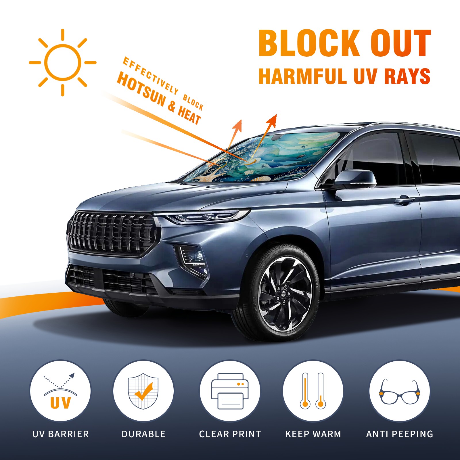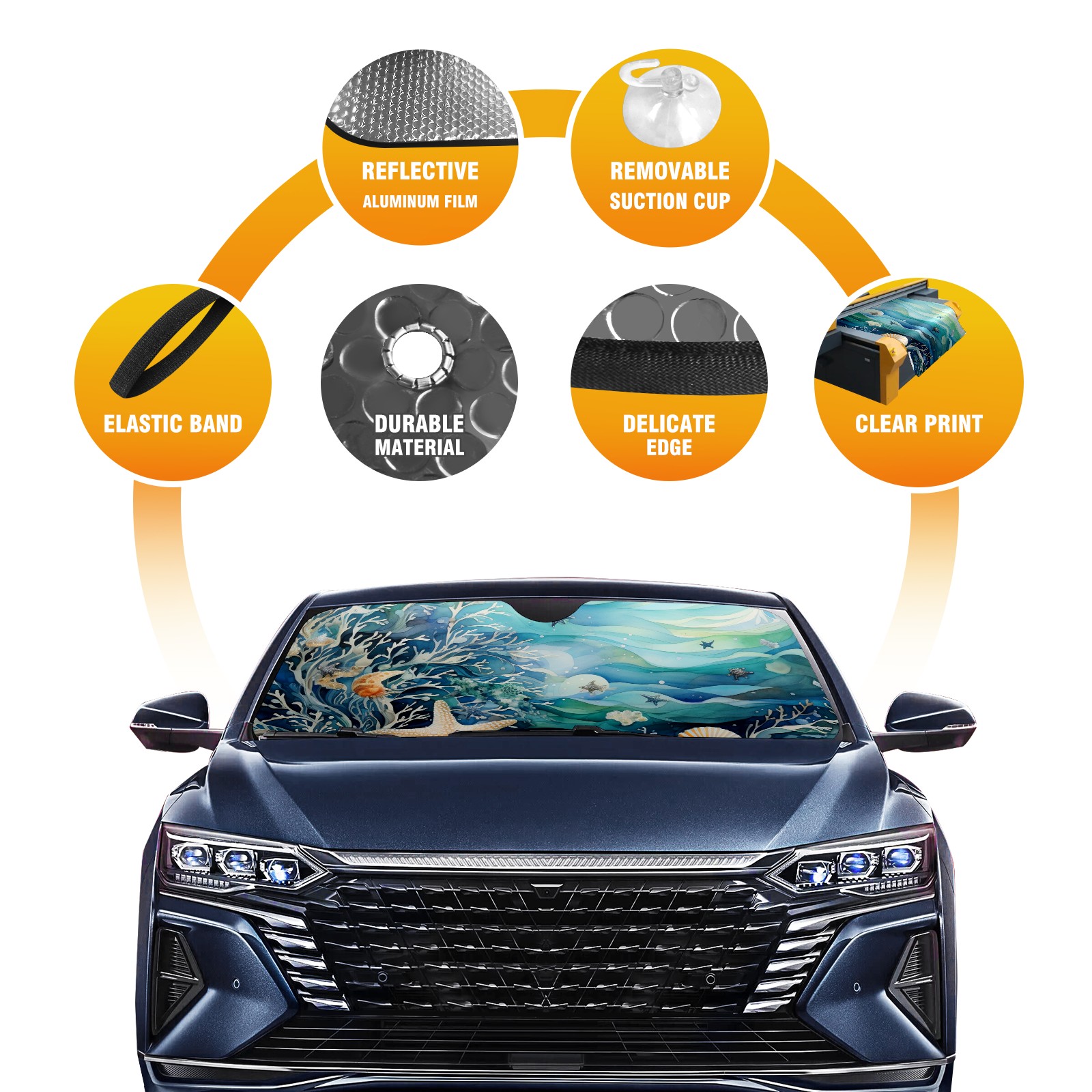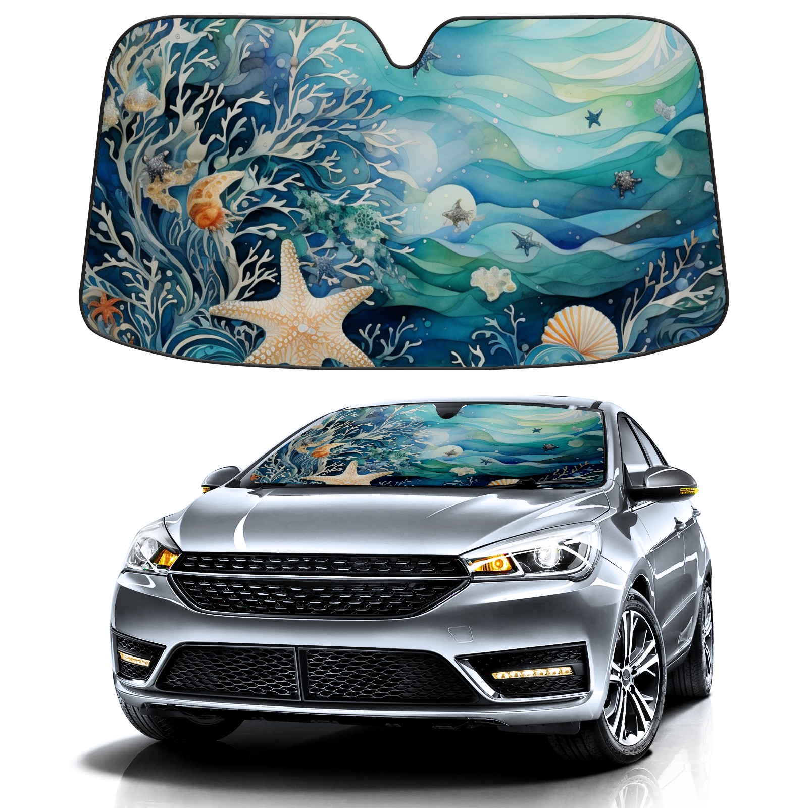 Oceans Car Sun Shade UV Protection Foldable Sunshade for Windshield Heat Insulation Portable Sun Shield for Car Interior Protection Automotive Window Protector
