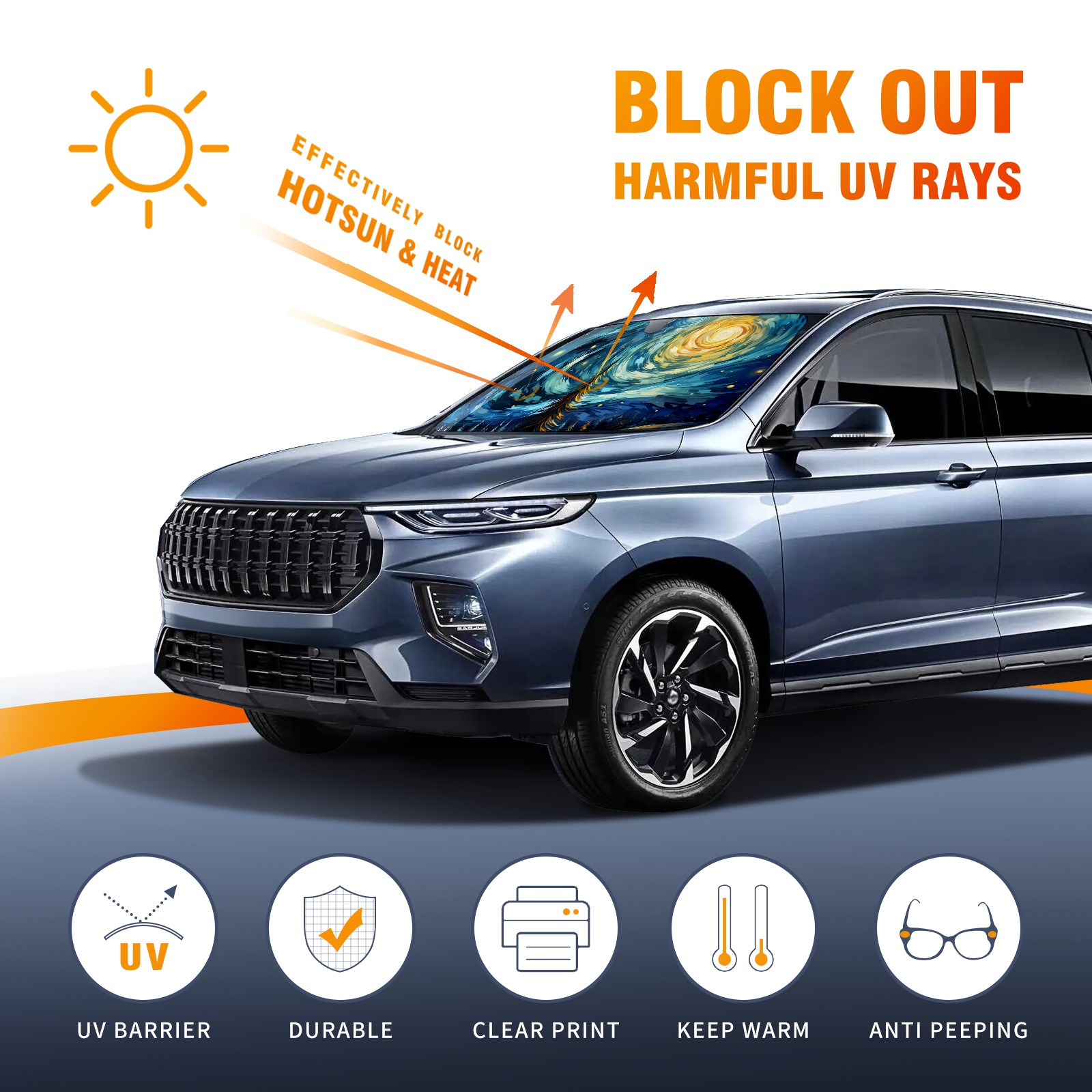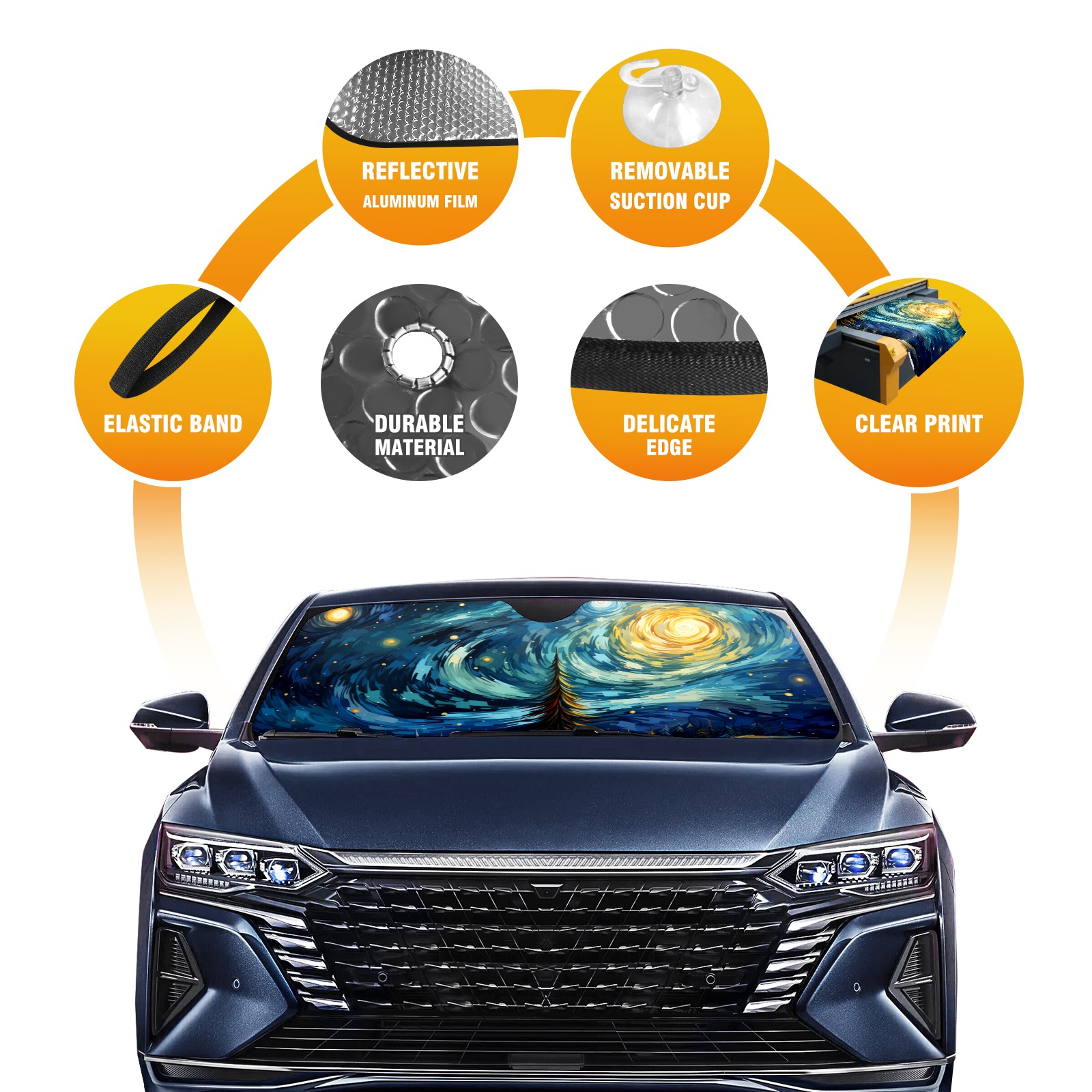 • <p><b>Foldable Premium Car Windshield Sunshade is your great solution to reduce your car’s interior temperature dramatically! This is definitely a must-have item for your summer travel!</b></p><p><b>【Precision Fit, Stylish Protection】</b></p><p>55"x30" (140x76cm) universal size with 3cm flexible margins fits curved windshields of most sedans/SUVs.</p><p><b>【Blocking Uv Rays &amp; Heat Insulation】</b></p><p>Our vehicle sunshade provides effective UV, sun, and summer heat protection, preventing leather fading and plastic cracking to keep your car interior pristine.</p><p><b>【Zero-Mark Installation &amp; Space-Saving】</b></p><p>Equipped with dual scratch-free silicone suction cups + adjustable straps: Medical-grade silicone cups hold firmly yet remove cleanly. Folds to A3 size (42x30cm x &lt;2cm thick), tucks discreetly into glove compartments or door pockets.&nbsp;</p>