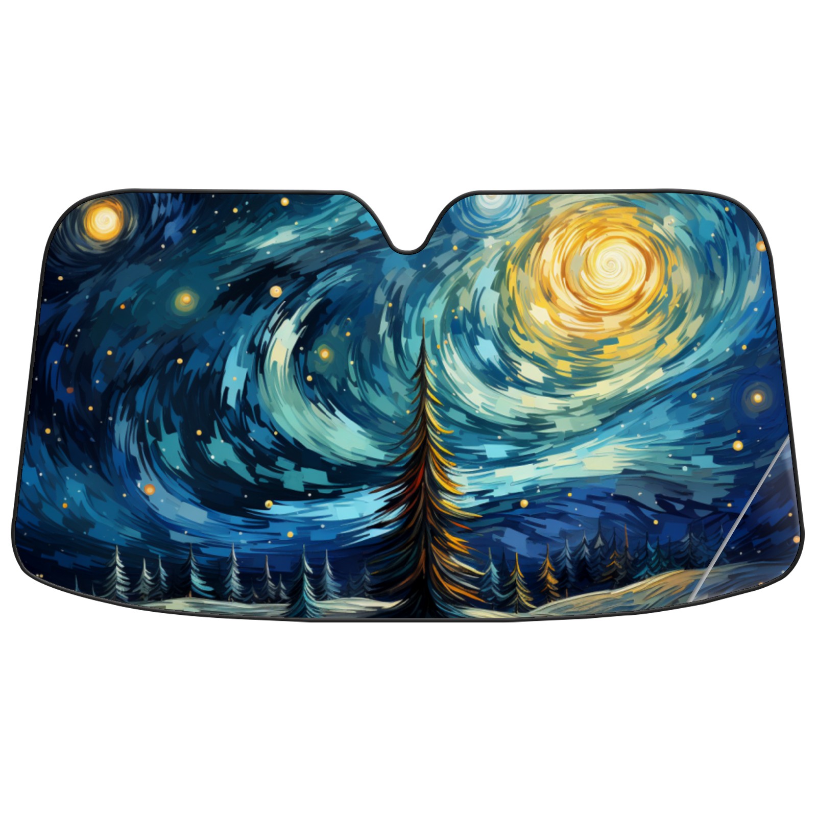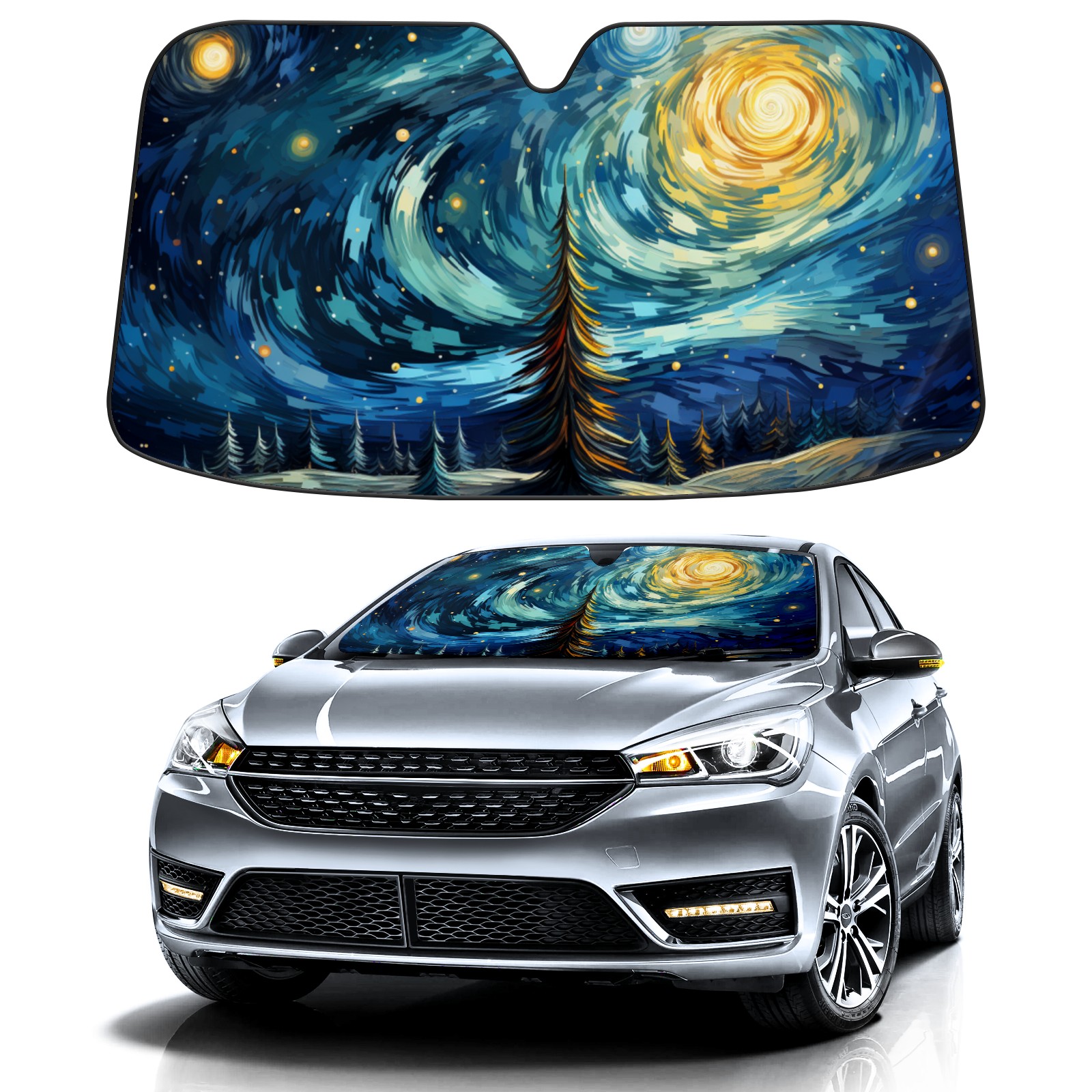 Christmas Tree Oil Paint 15 Car Sun Shade UV Protection Foldable Sunshade for Windshield Heat Insulation Portable Sun Shield for Car Interior Protection Automotive Window Protector