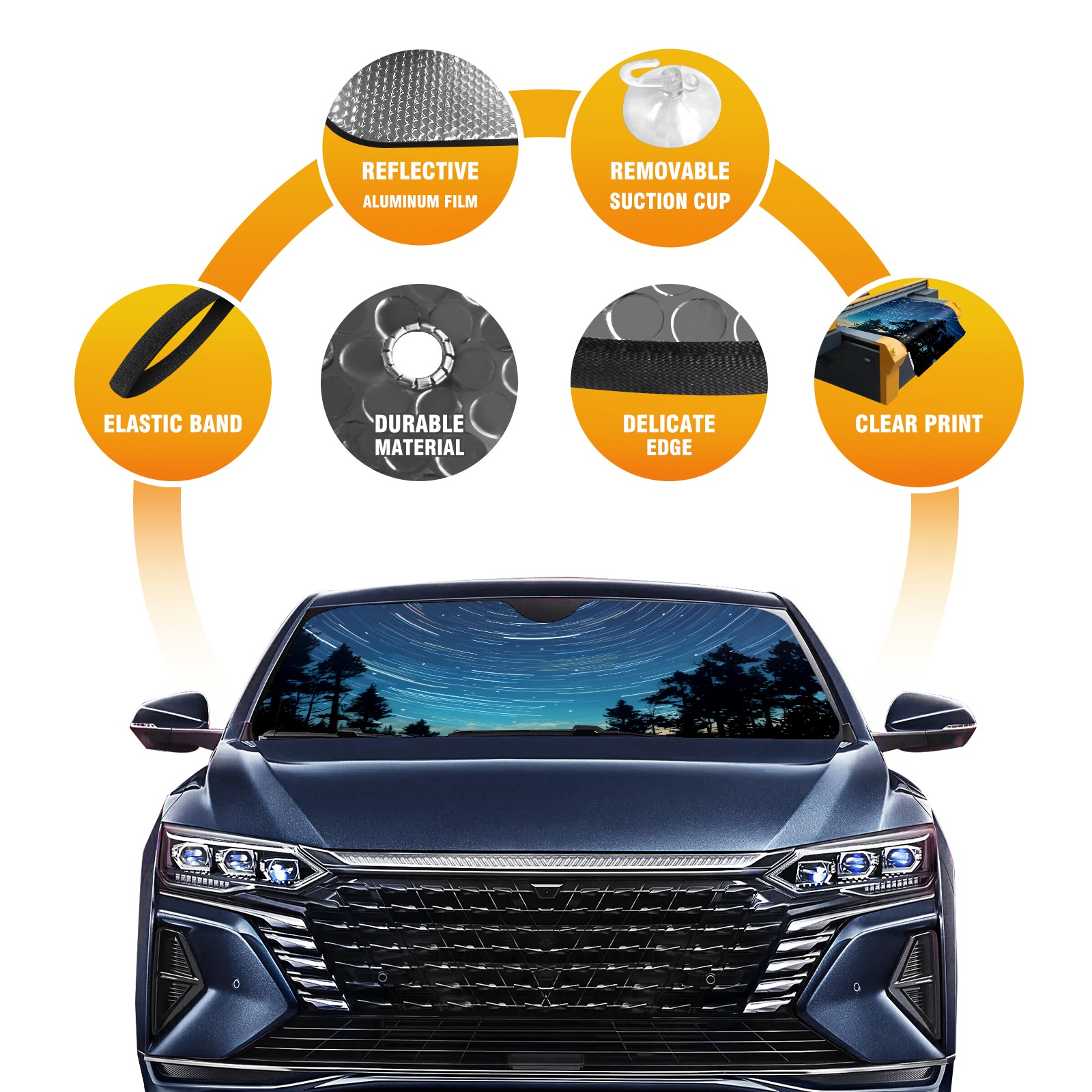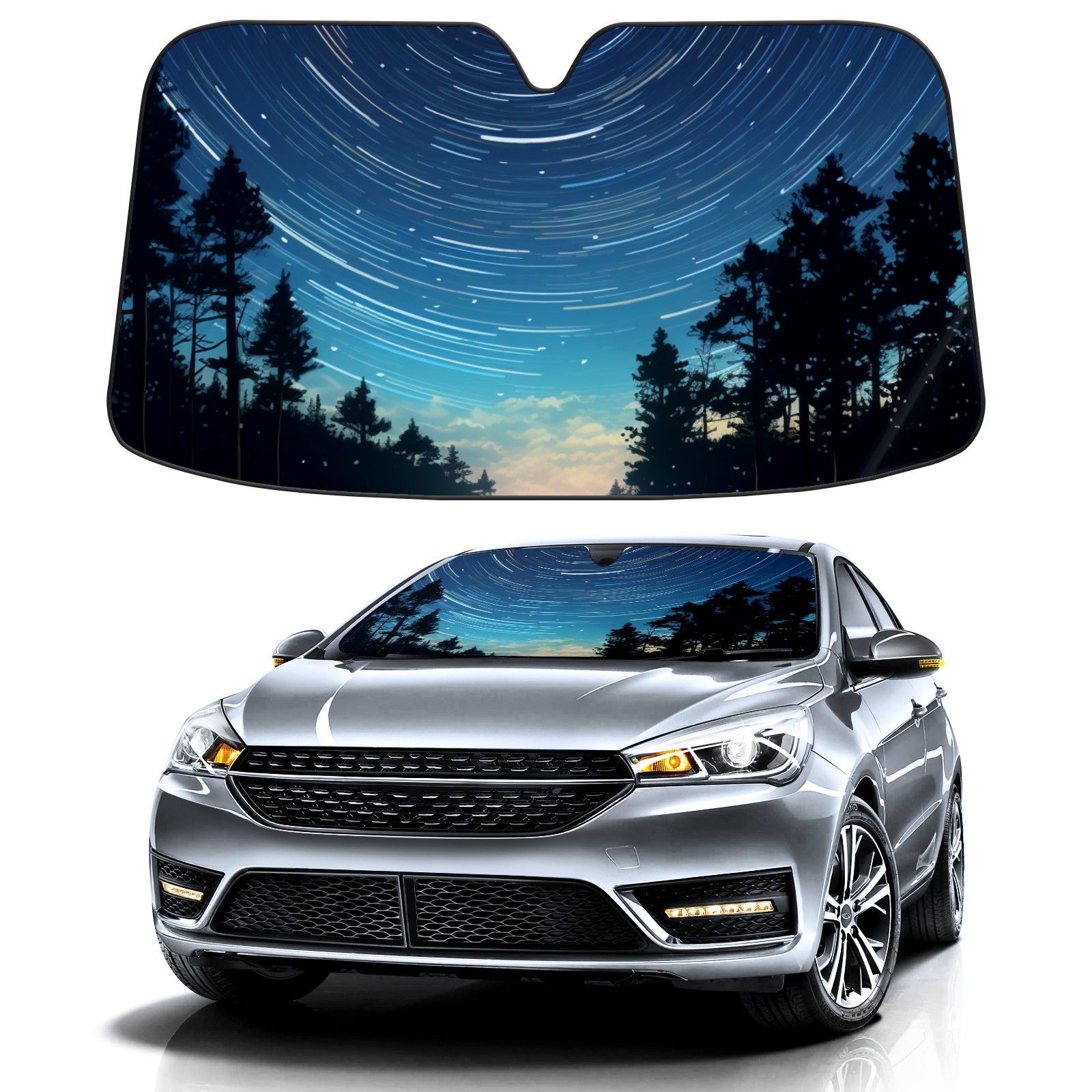 Star Trails Car Sun Shade UV Protection Foldable Sunshade for Windshield Heat Insulation Portable Sun Shield for Car Interior Protection Automotive Window Protector