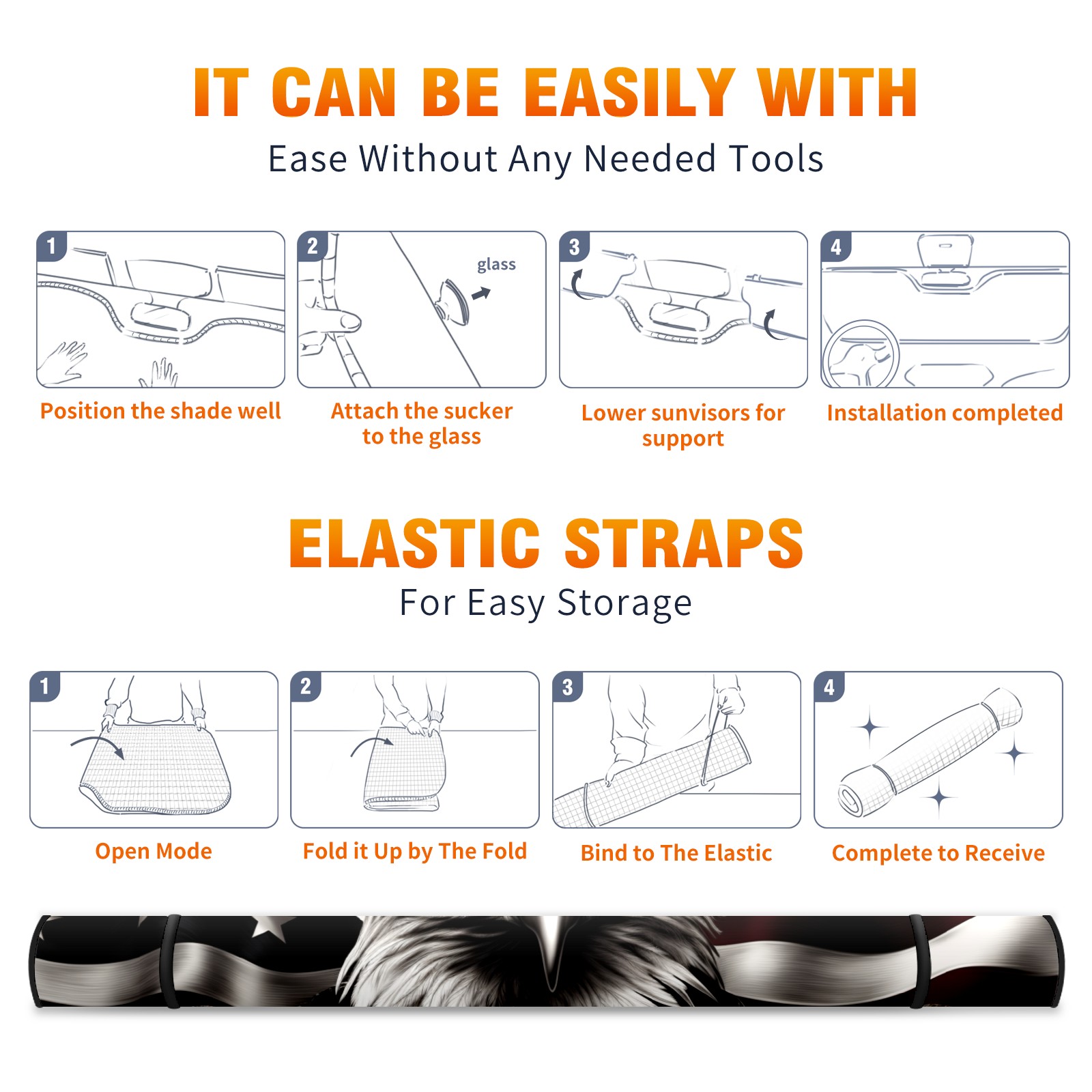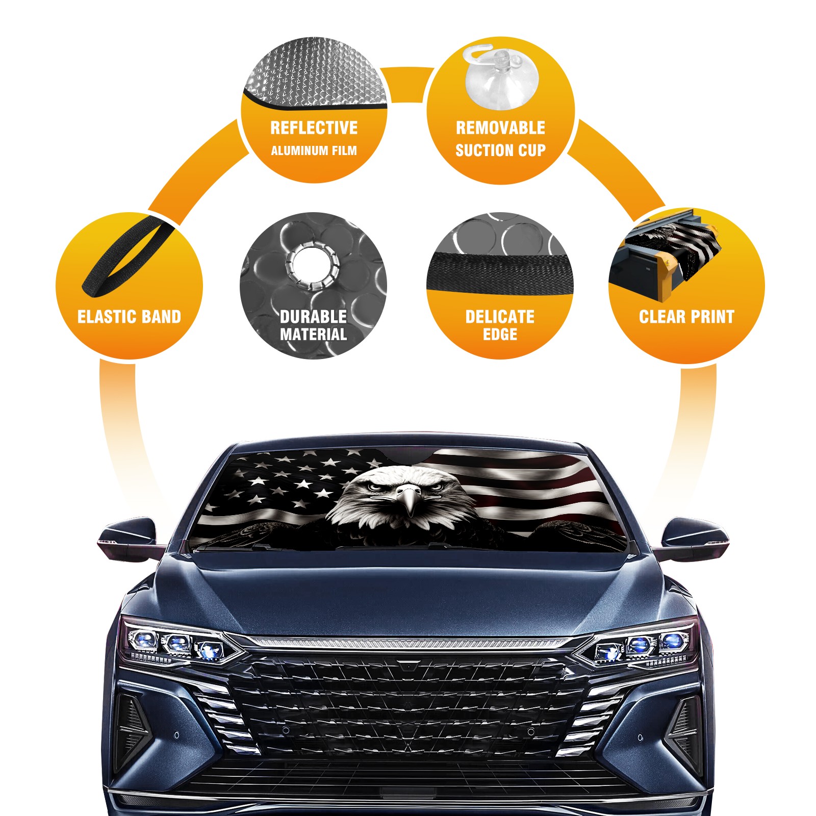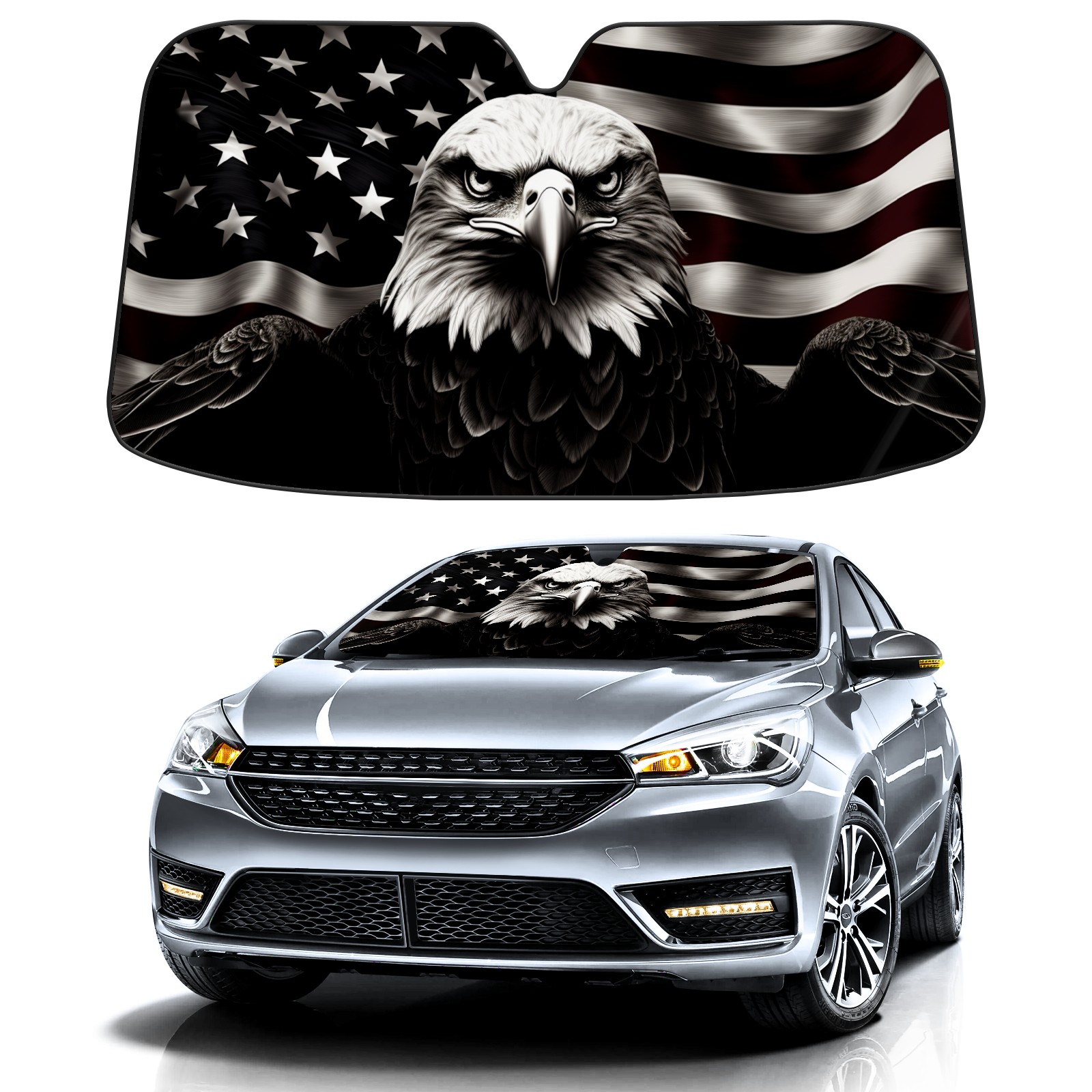 American Flag Eagle Car Sun Shade UV Protection Foldable Sunshade for Windshield Heat Insulation Portable Sun Shield for Car Interior Protection Automotive Window Protector